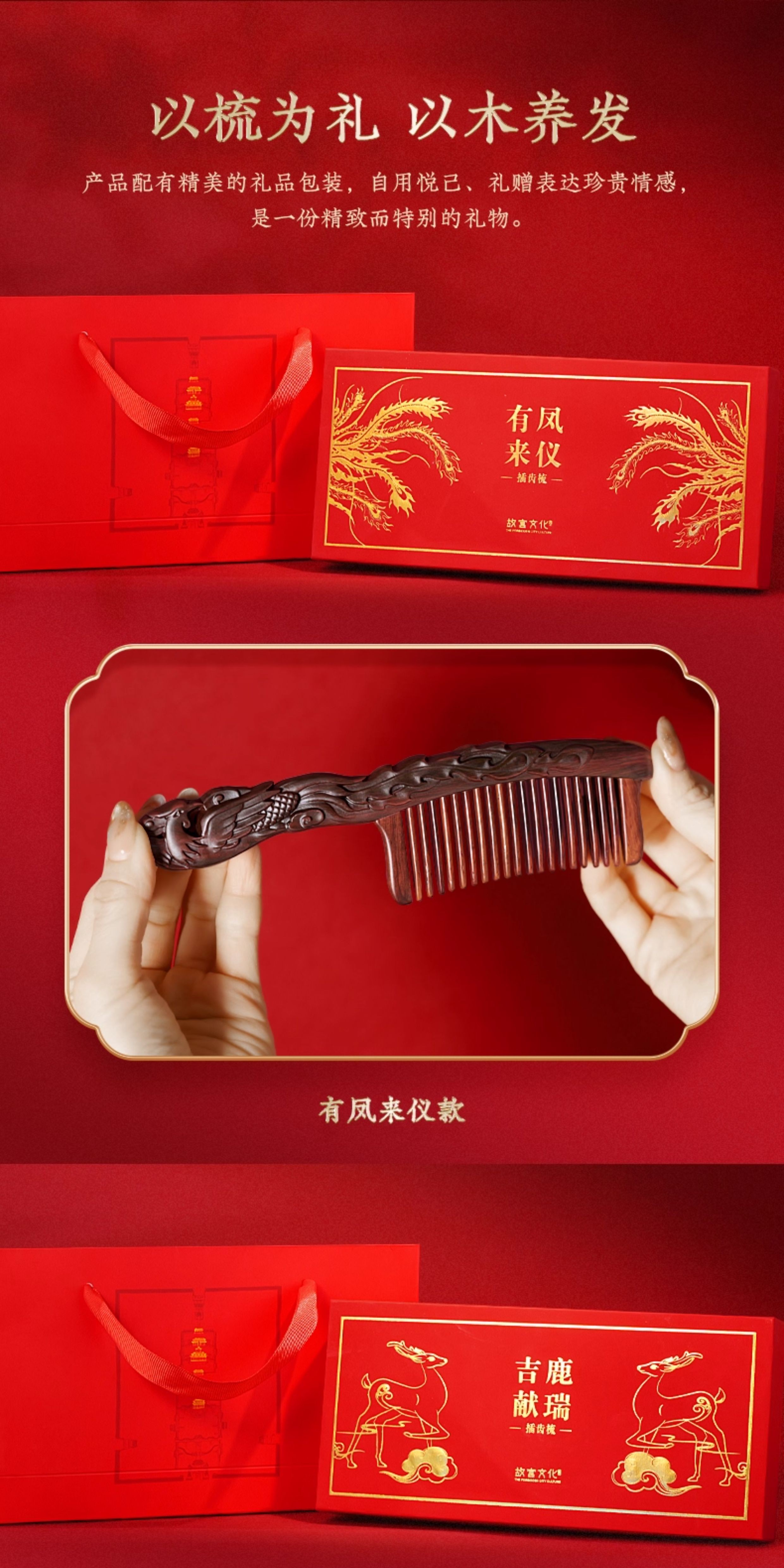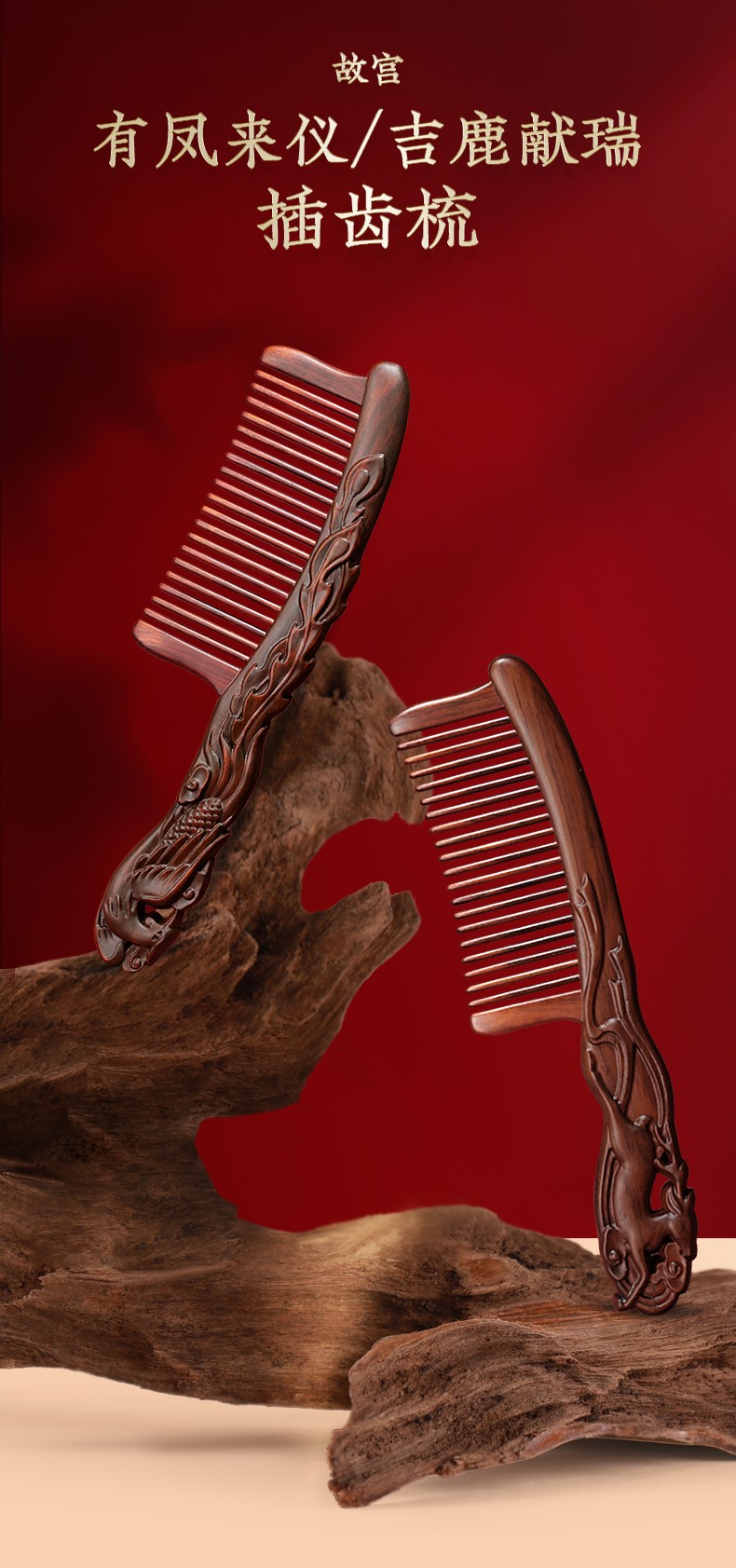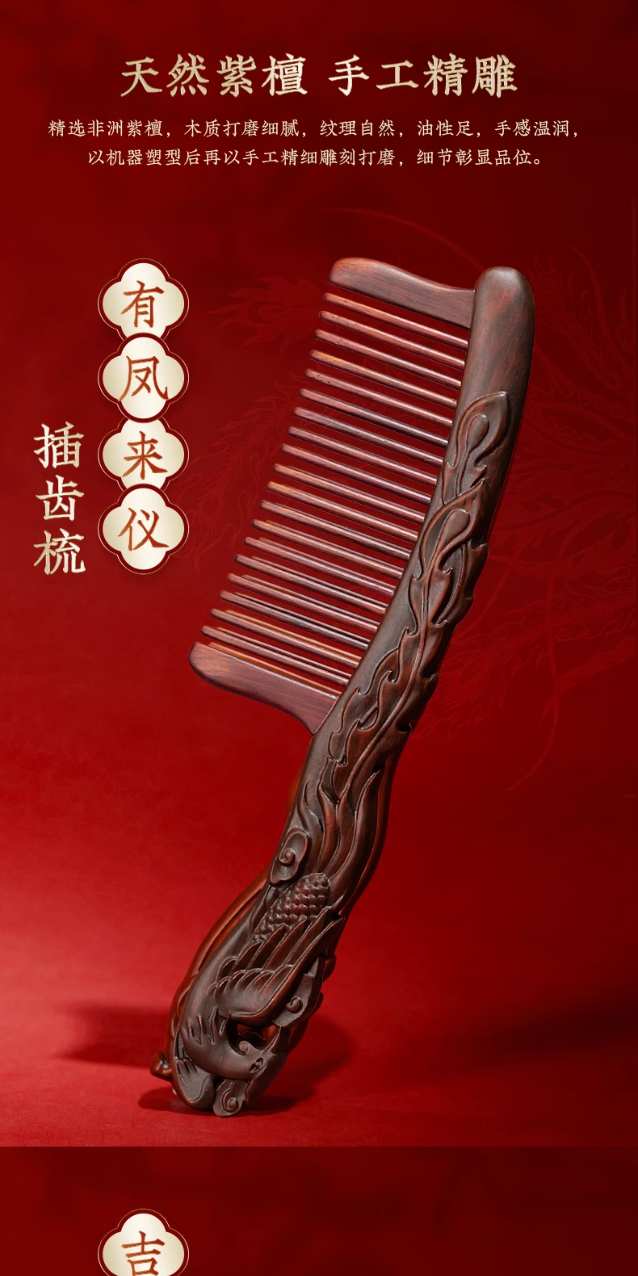 有凤来仪吉鹿献瑞插齿梳