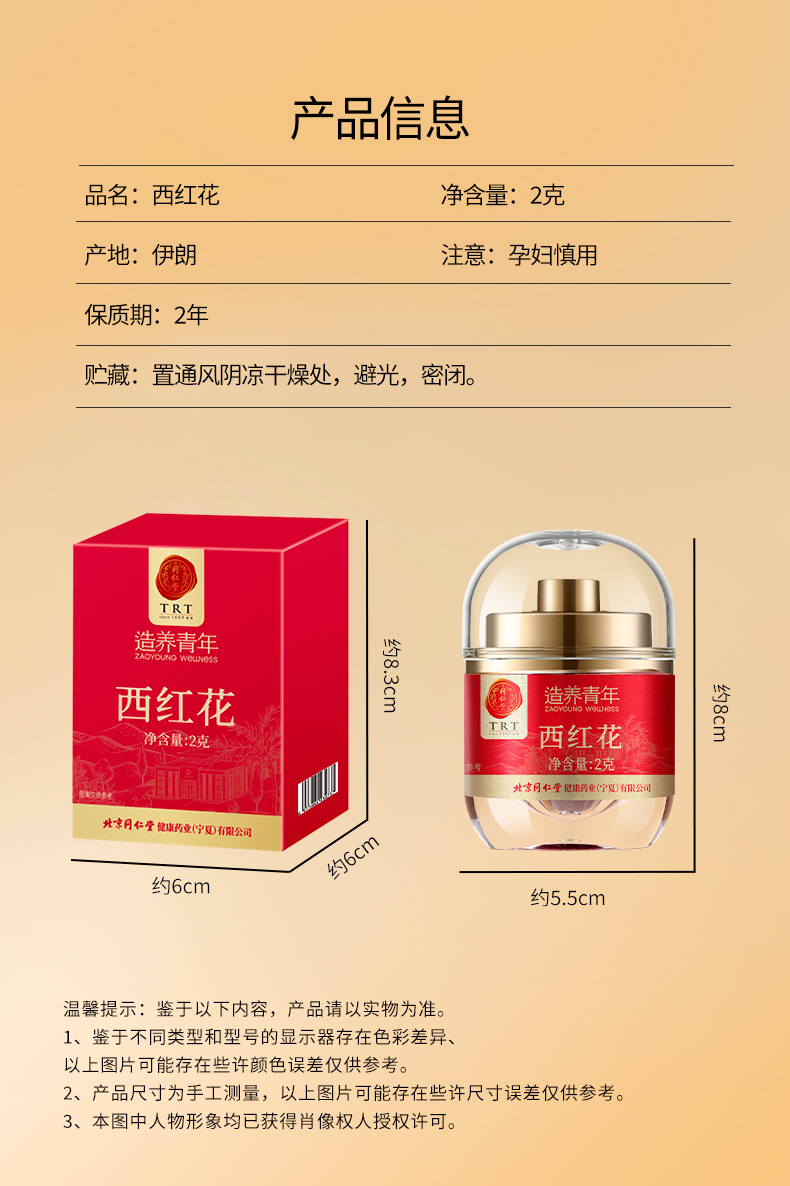 【正宗同仁堂品牌】北京同仁堂 伊朗西红花 藏红花2g 当季现摘 花柱鲜红完整 花香浓郁 冲泡养生SY