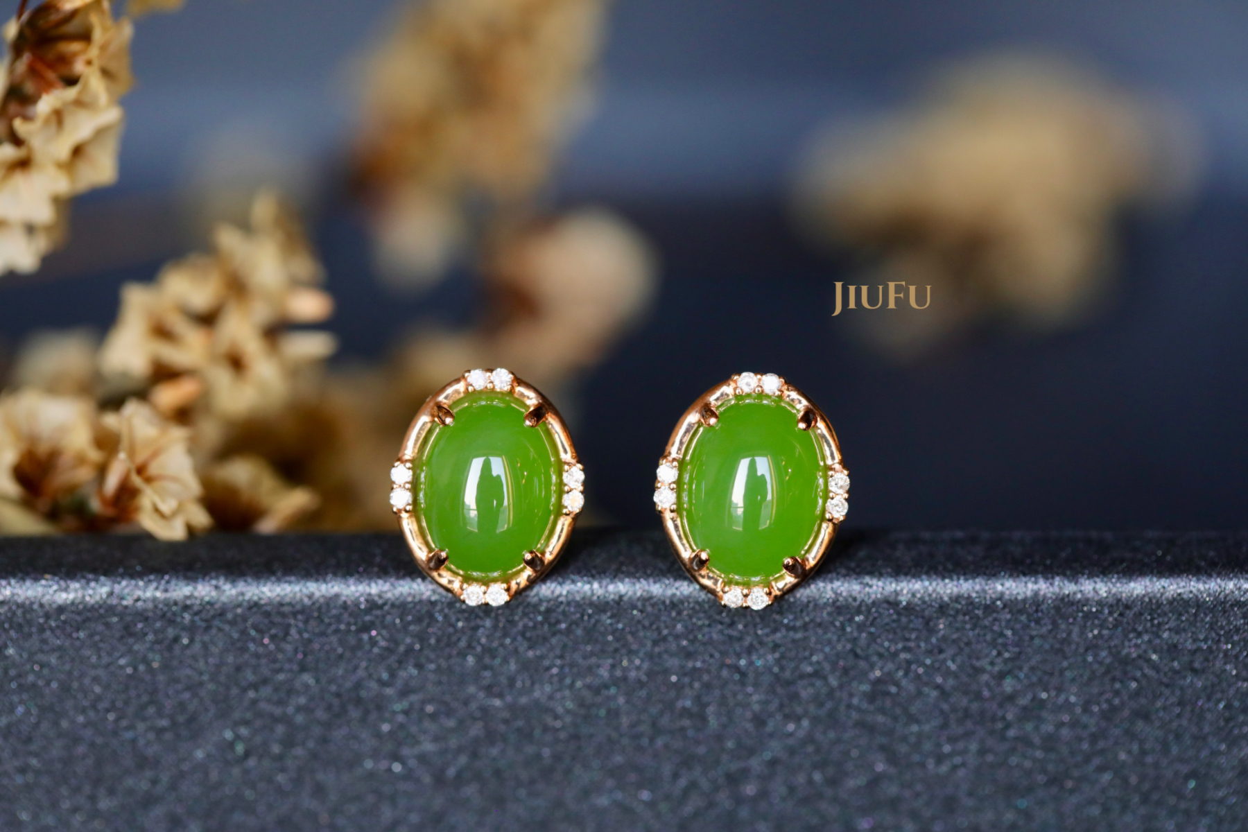 玉石尺寸:蛋面7*9mm/苹果绿 配镶:钻石