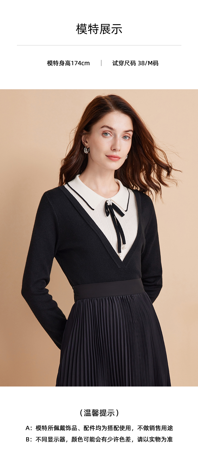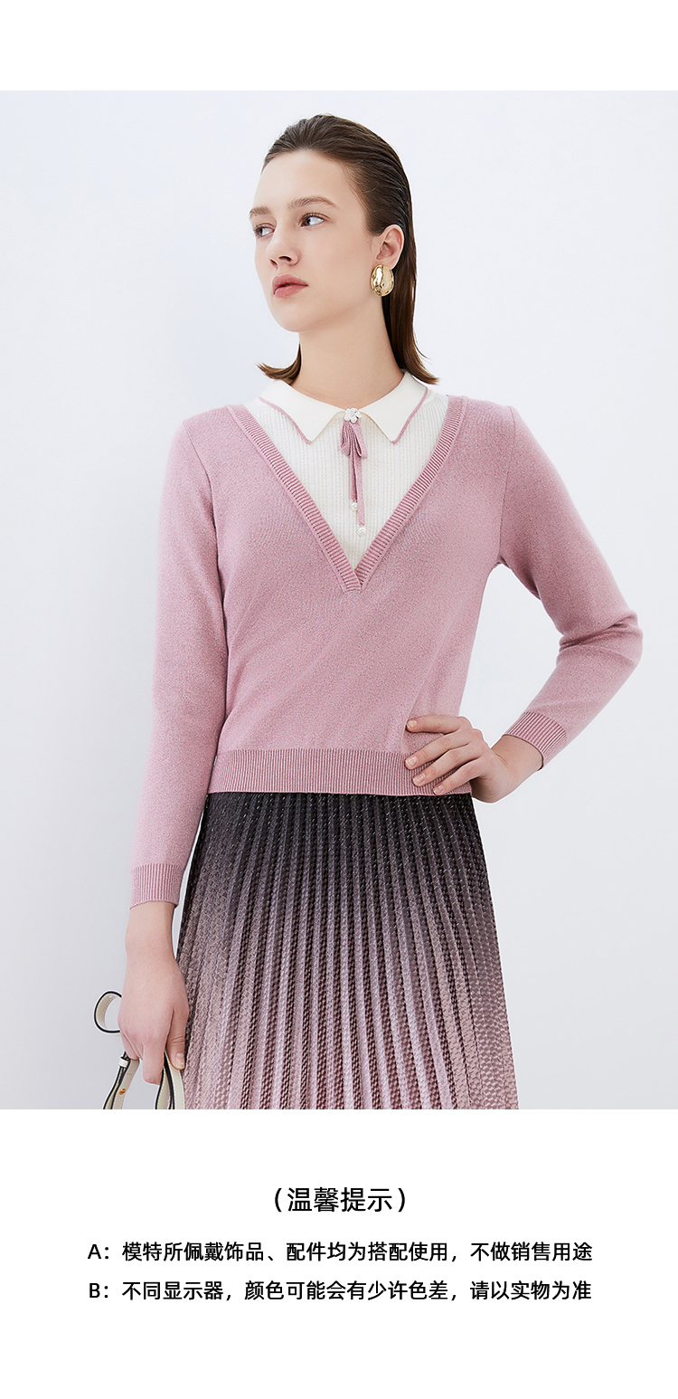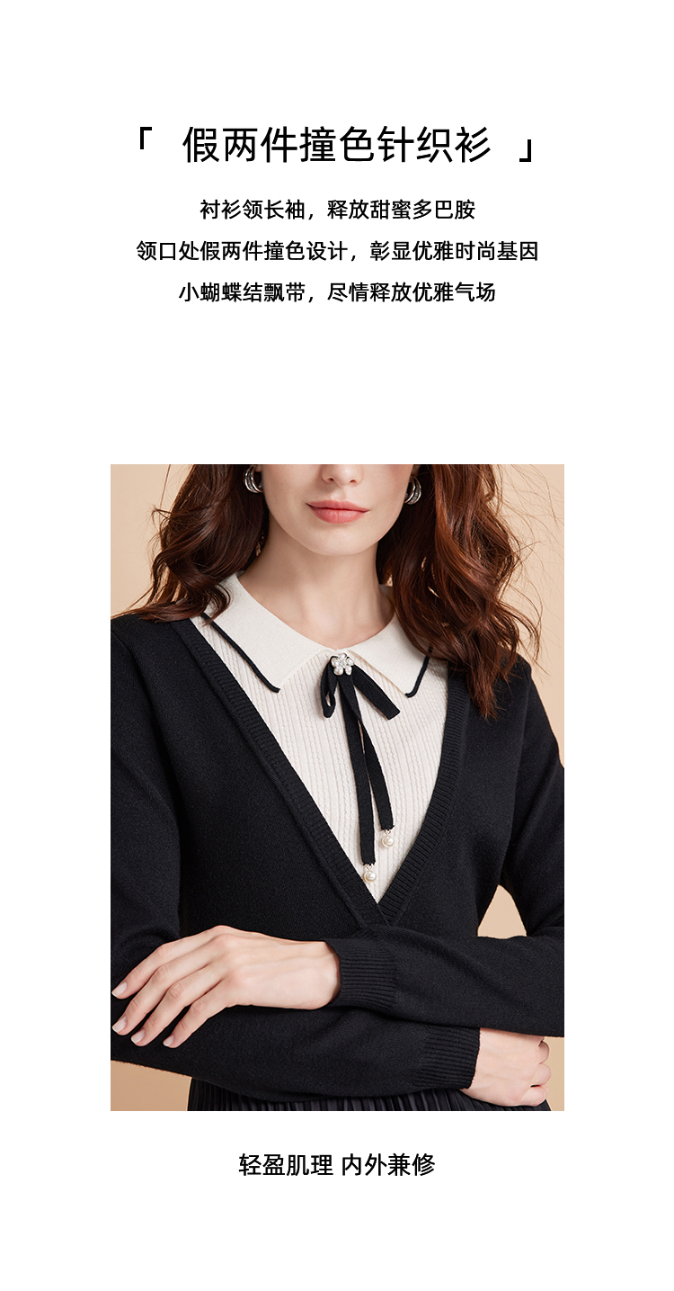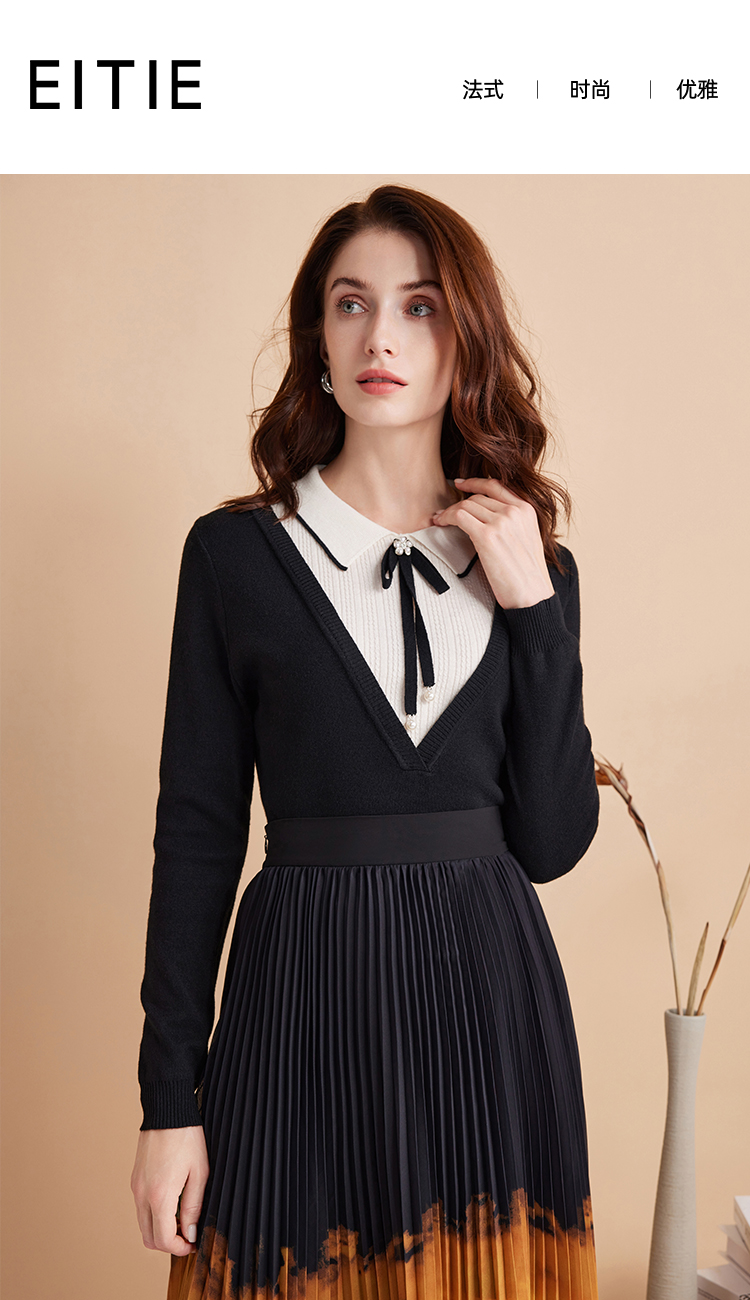 EITIE爱特爱冬新款时尚通勤假两件保暖舒适针织衫7601301