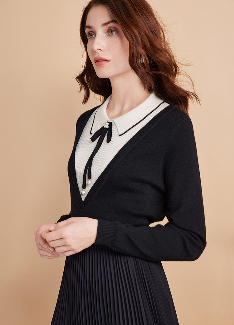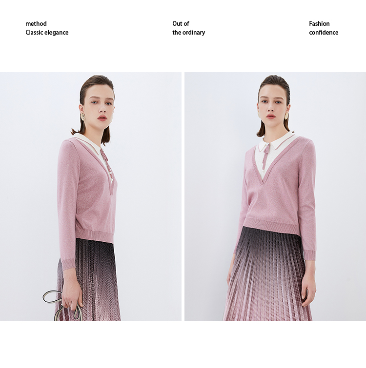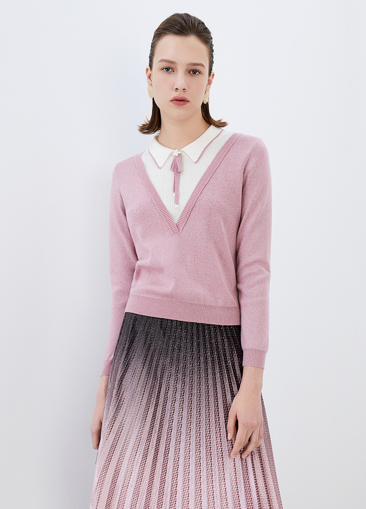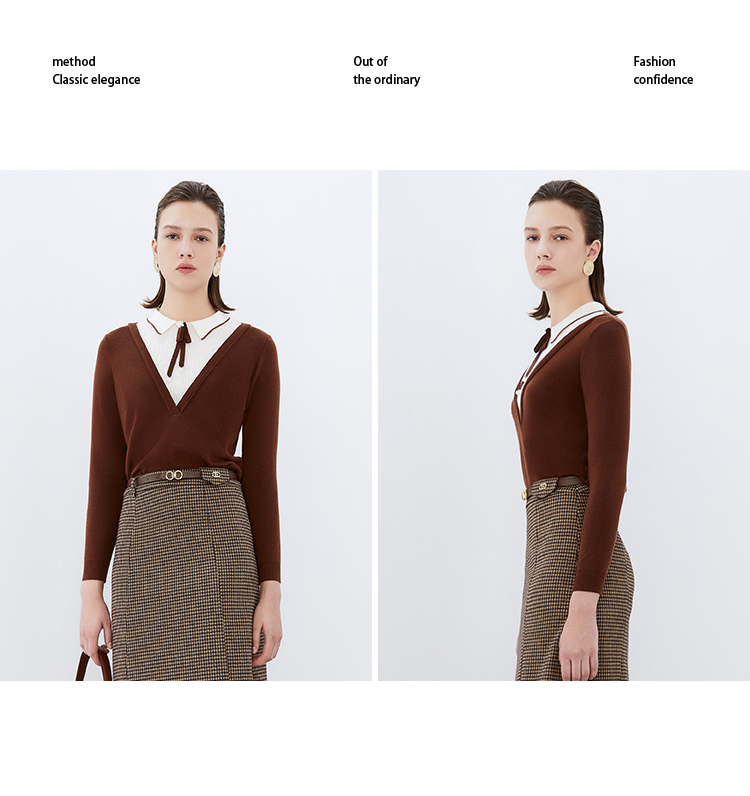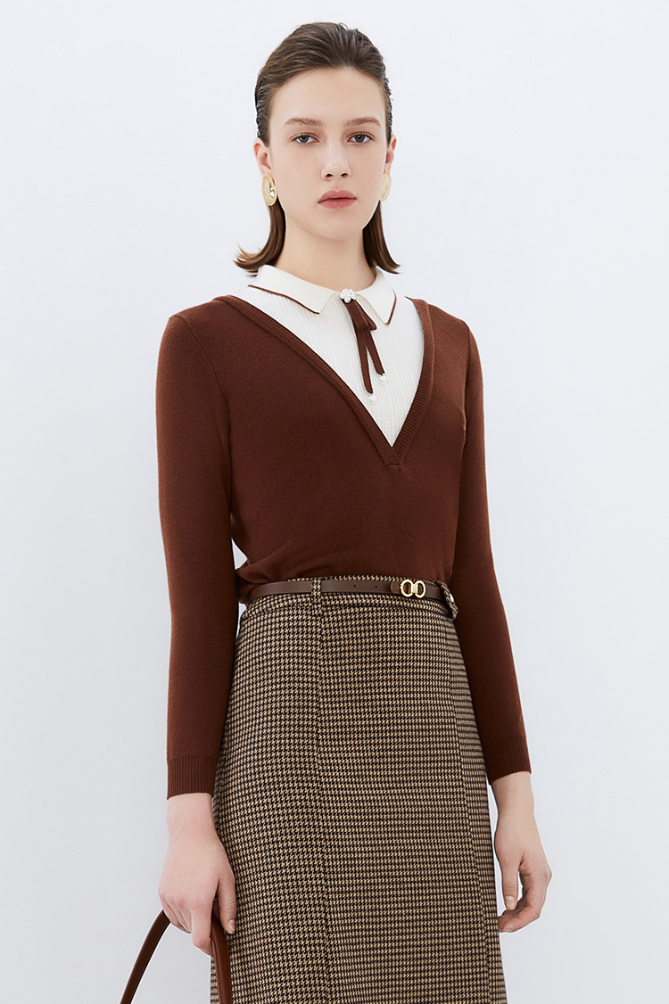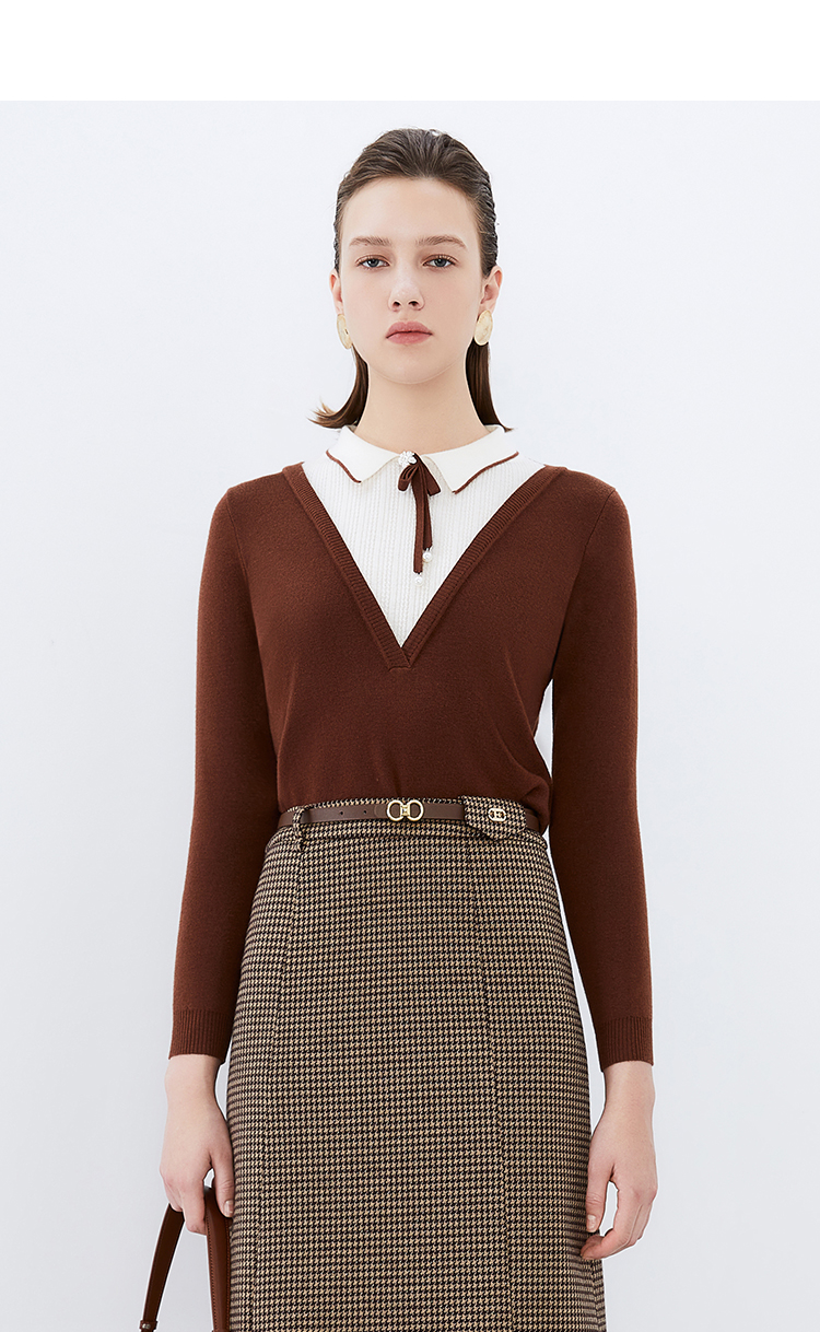 EITIE爱特爱冬新款时尚通勤假两件保暖舒适针织衫7601301
