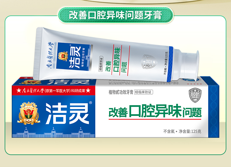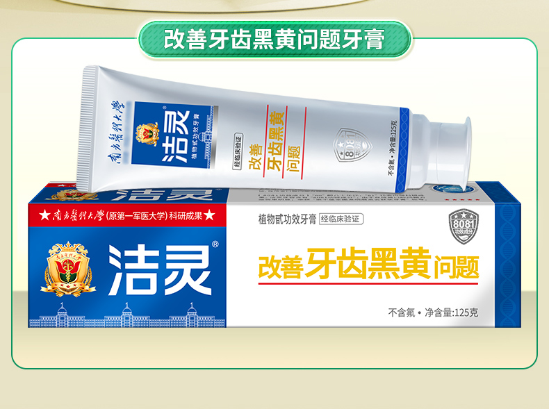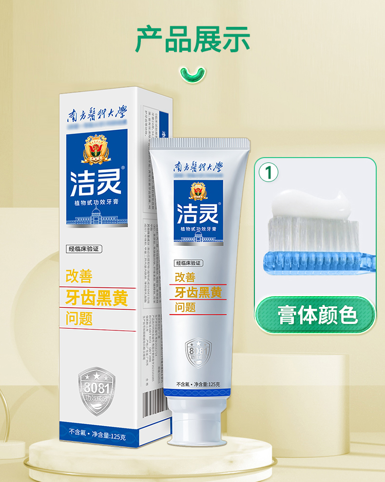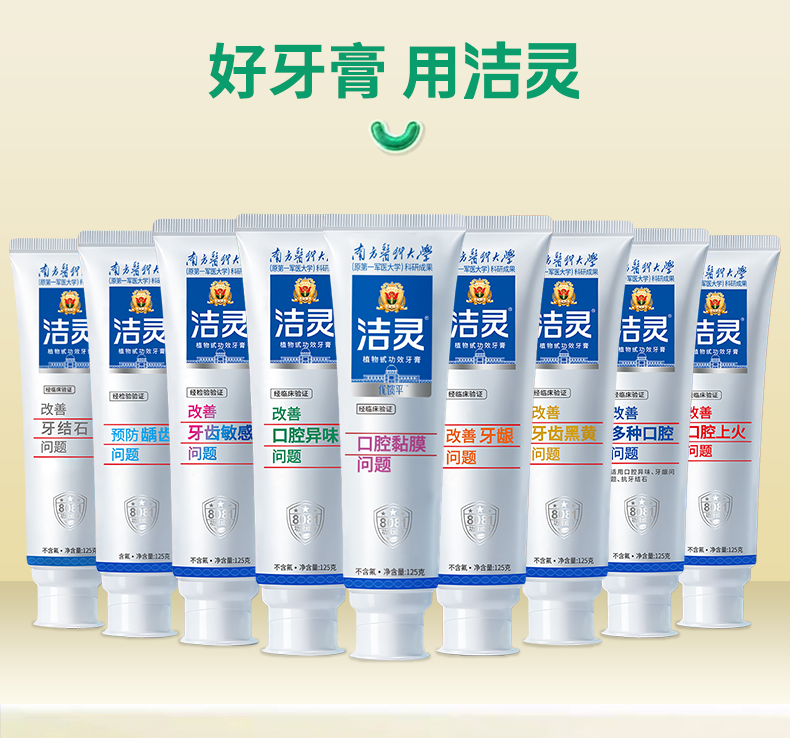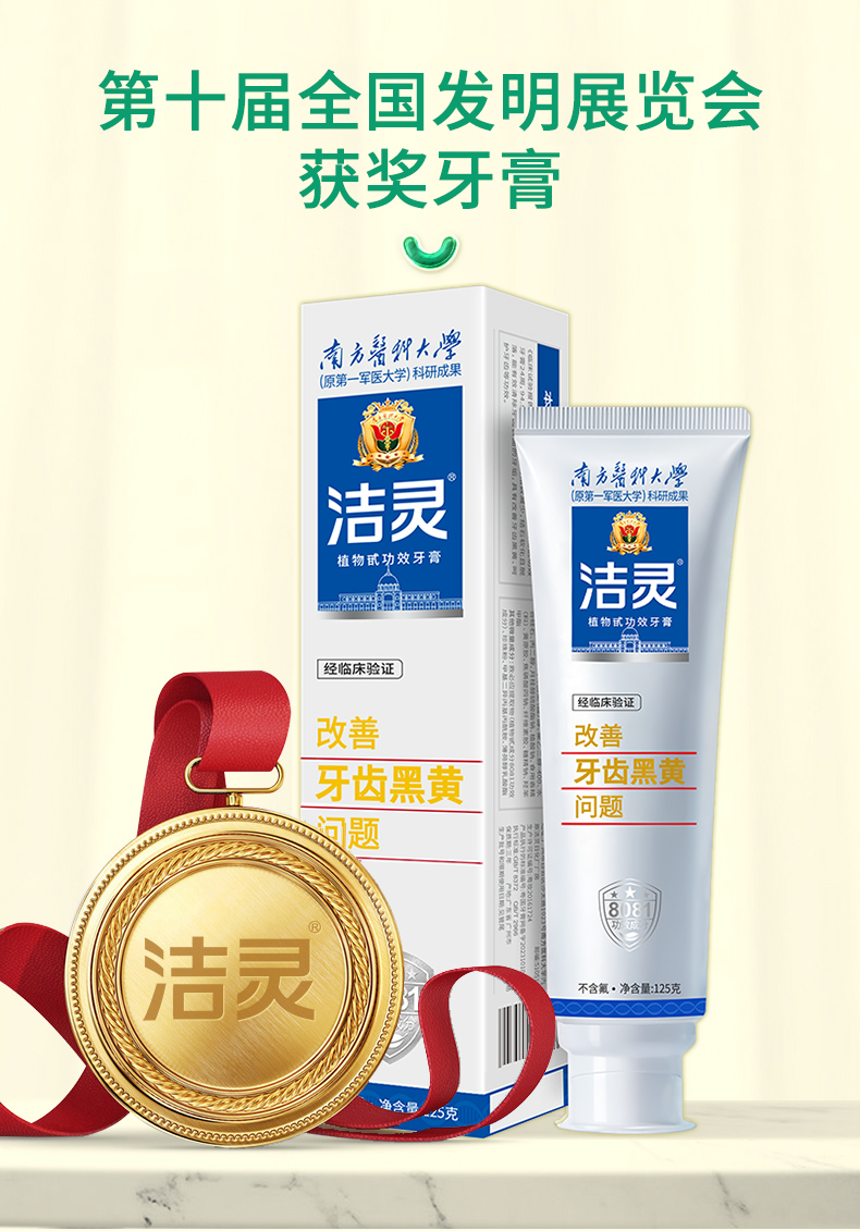 - 洁灵牙膏,由南方医科大学研制,牙膏的核心8081功效成分效果出众,在第十届全国发明展览会成为获奖牙膏。