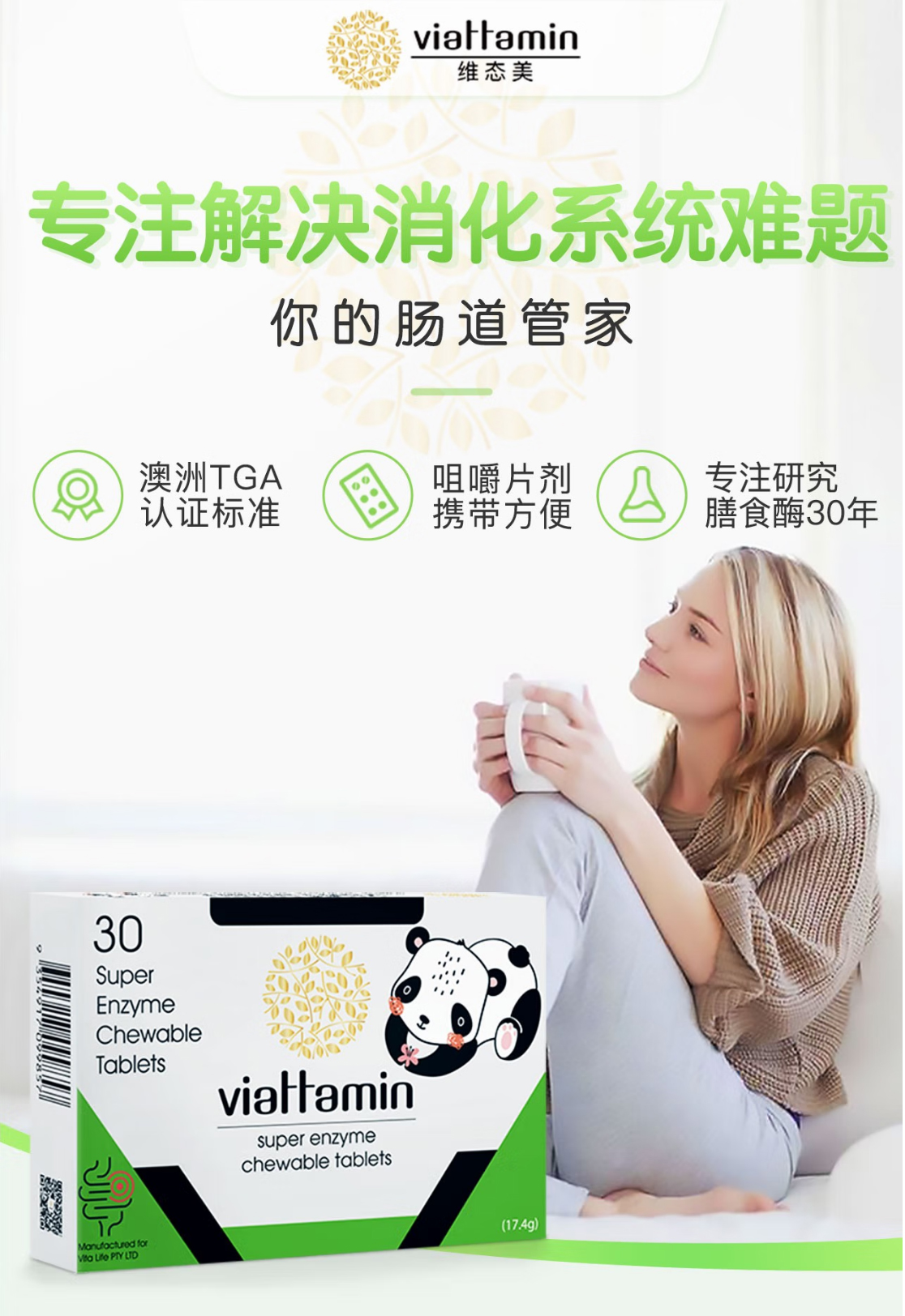 澳洲进口viattamin维态美综合消化酶咀嚼片益生菌儿童片剂30片