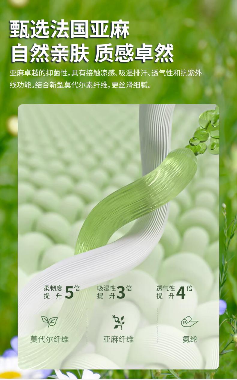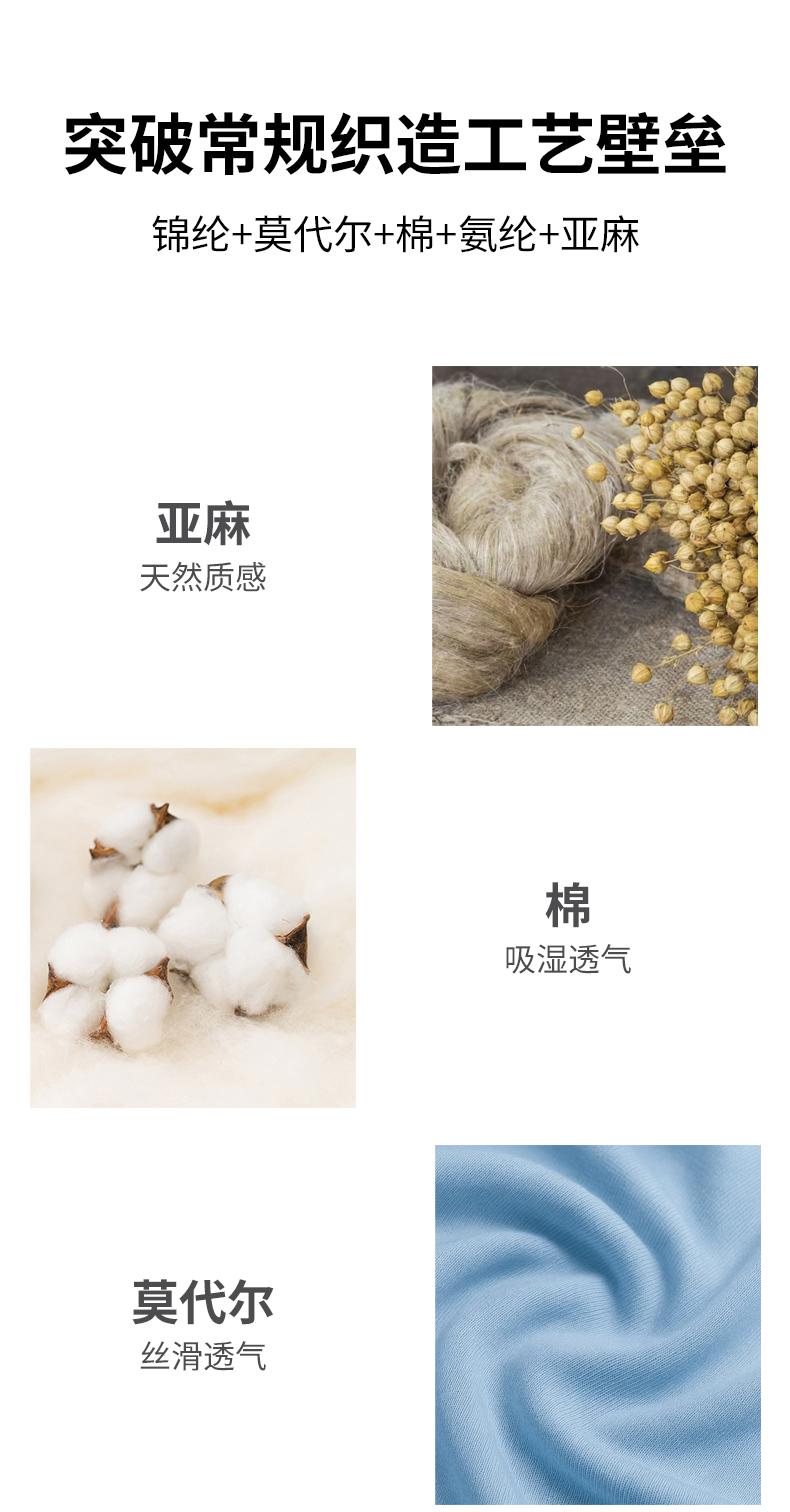 面料:33.1%锦纶 31.6%莫代尔 28%棉 5.2%氨纶 2.1%亚麻