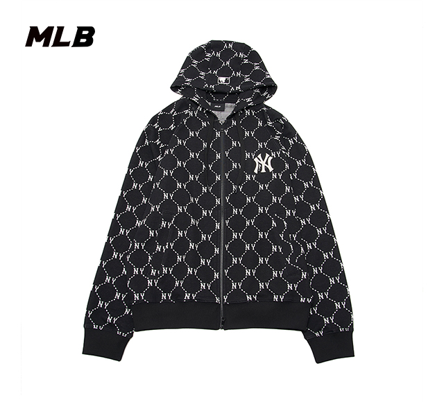 MLB男女同款满印老花连帽拉链卫衣外套3ATRM0341【无货退款介意勿拍】