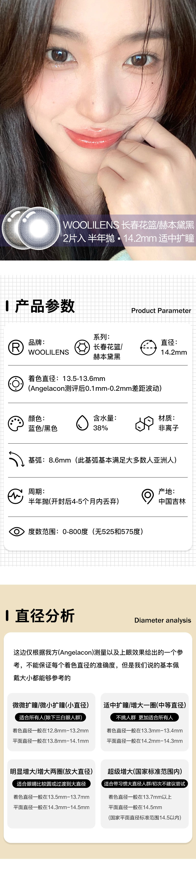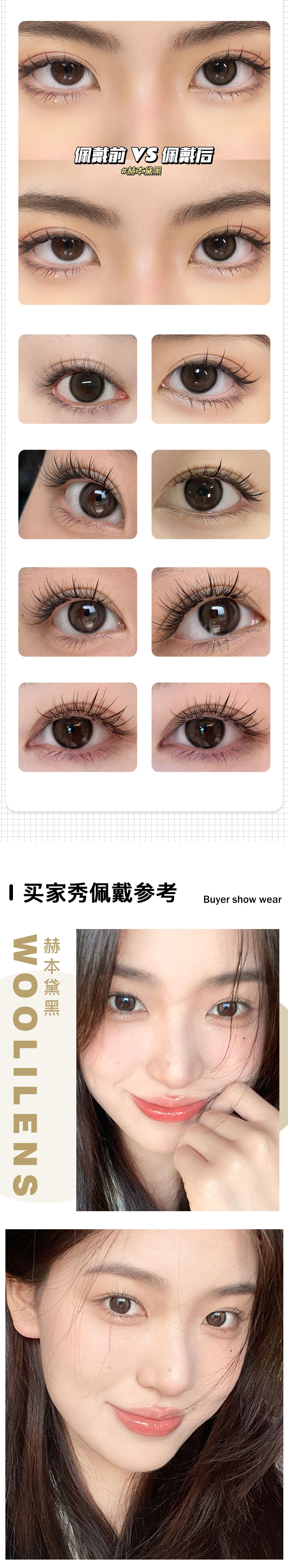 WOOLILENS | 赫本黛黑 | 半年抛美瞳 | 2片入 | 14.2mm | 适中扩瞳