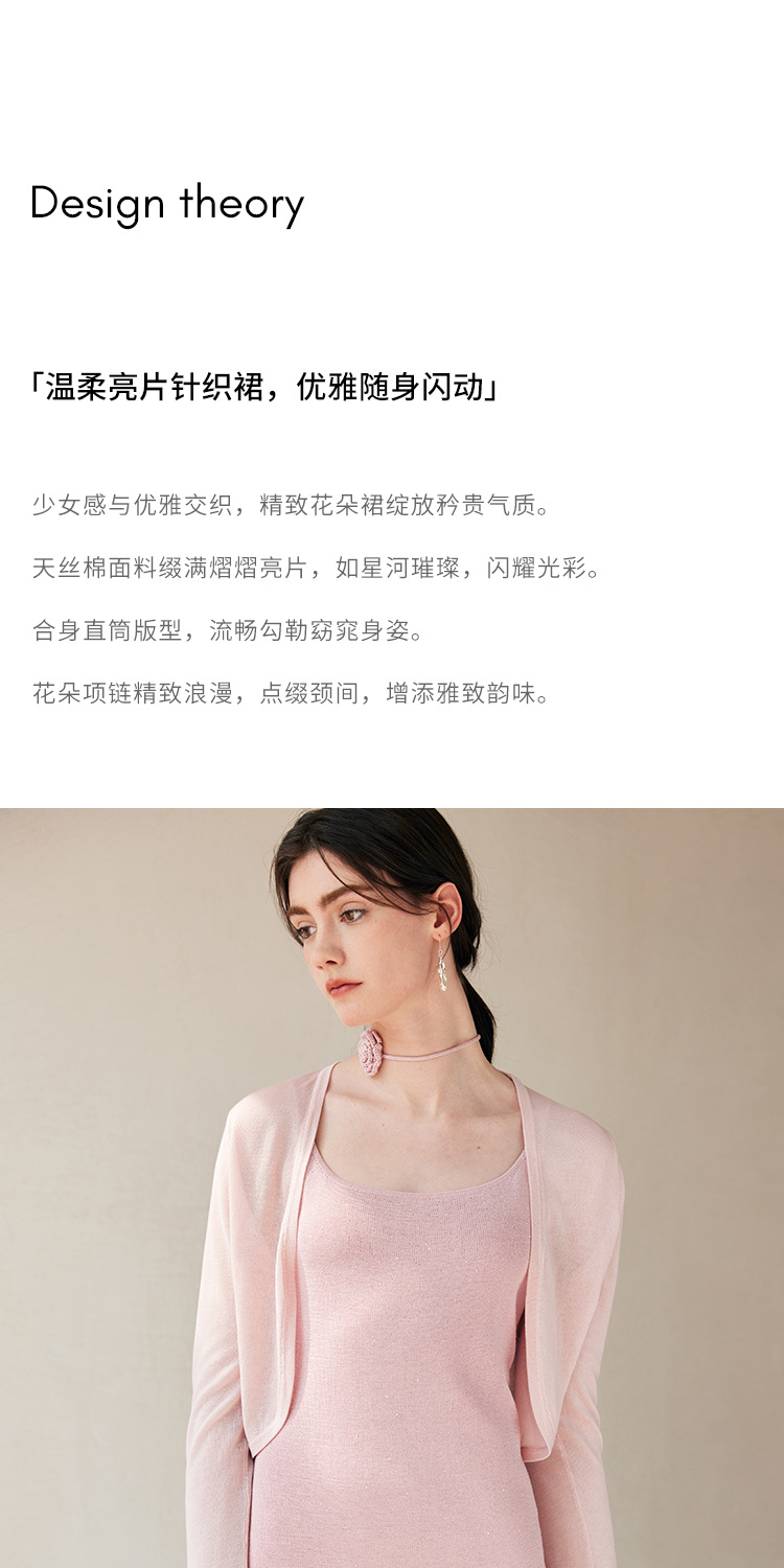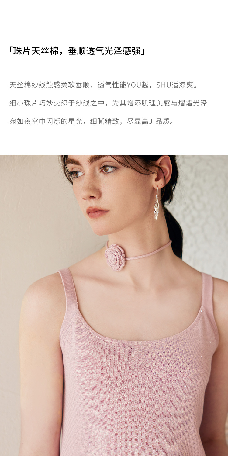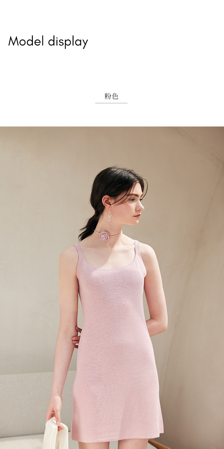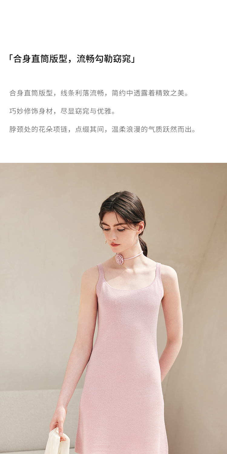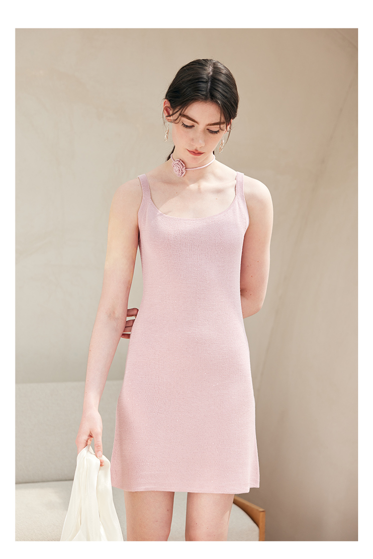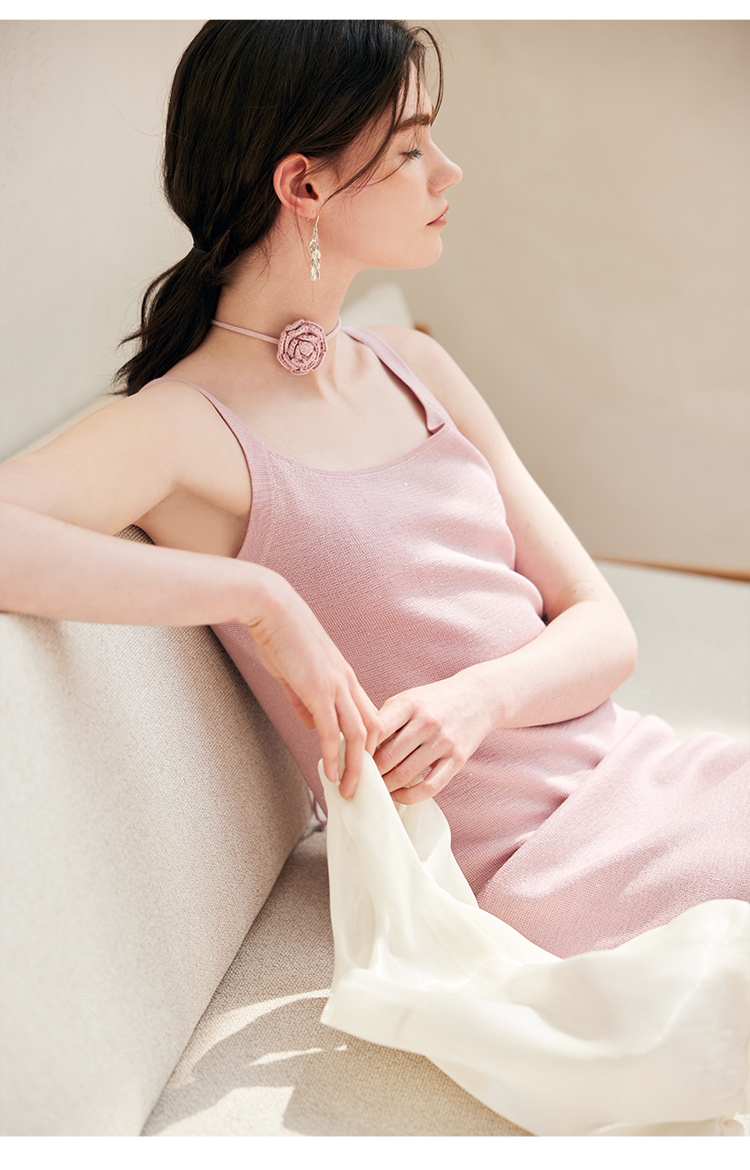 HeyDress细闪亮片针织吊带裙女夏季法式收腰花朵绑带浪漫连衣裙子