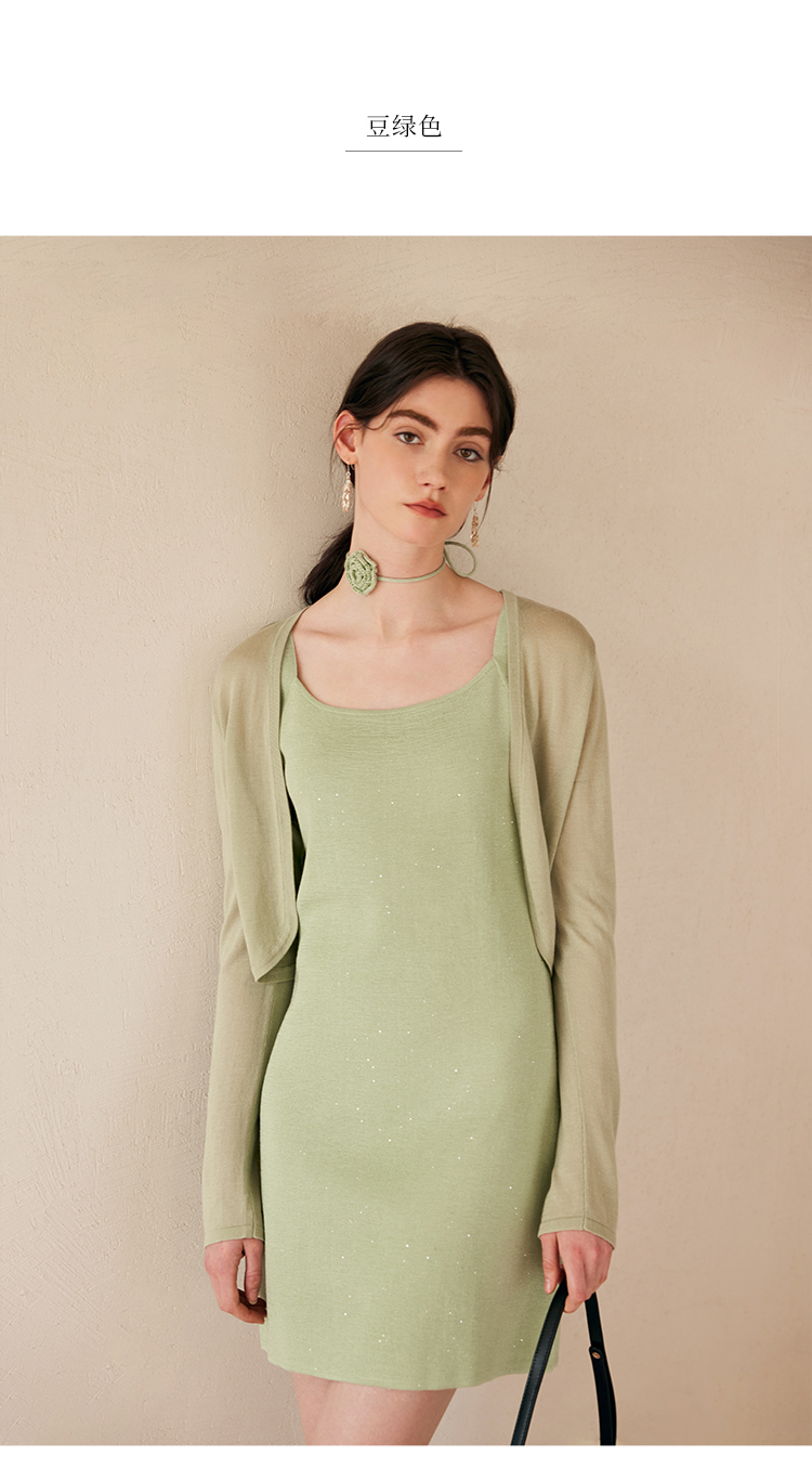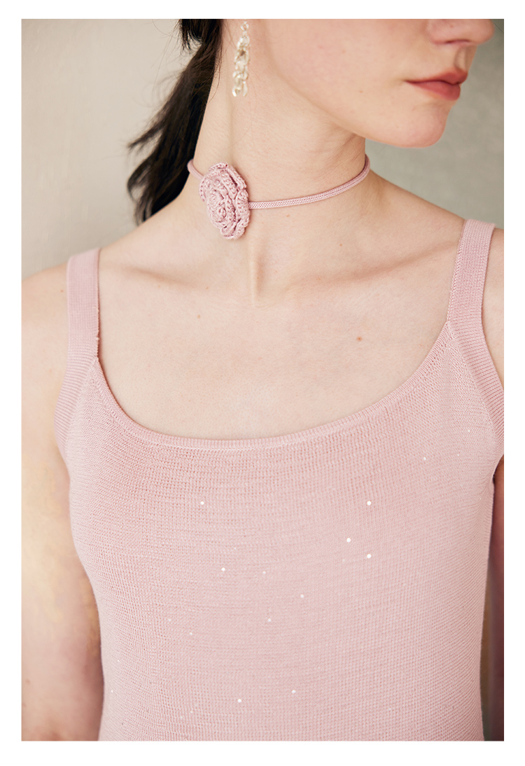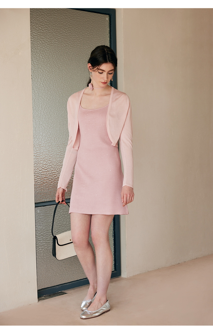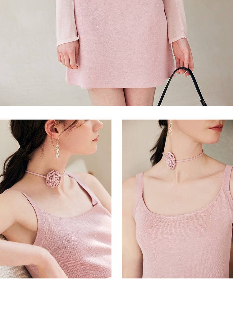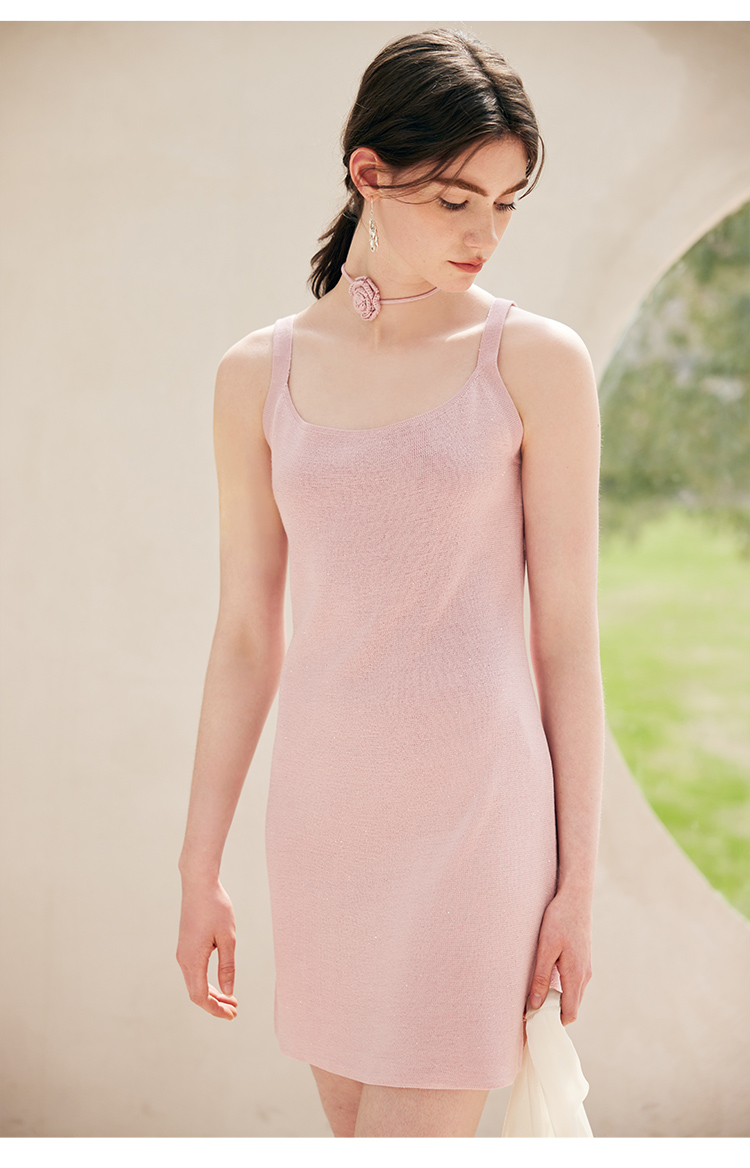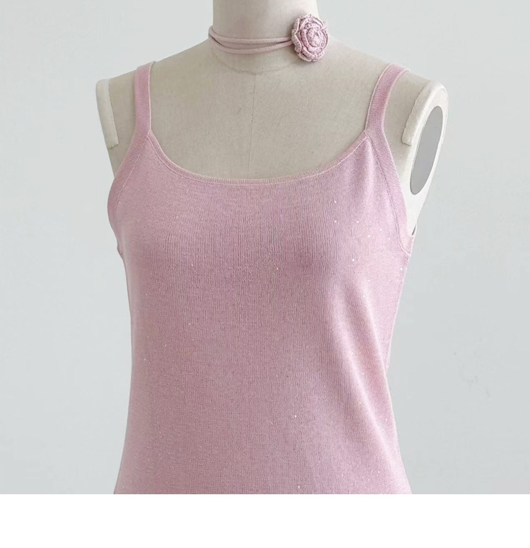 HeyDress细闪亮片针织吊带裙女夏季法式收腰花朵绑带浪漫连衣裙子