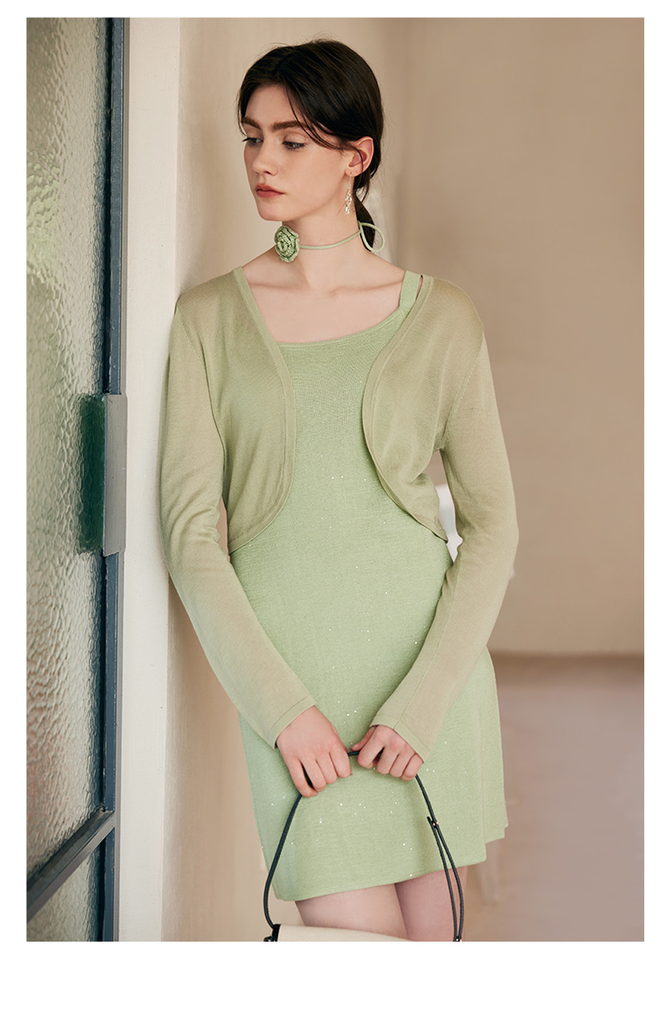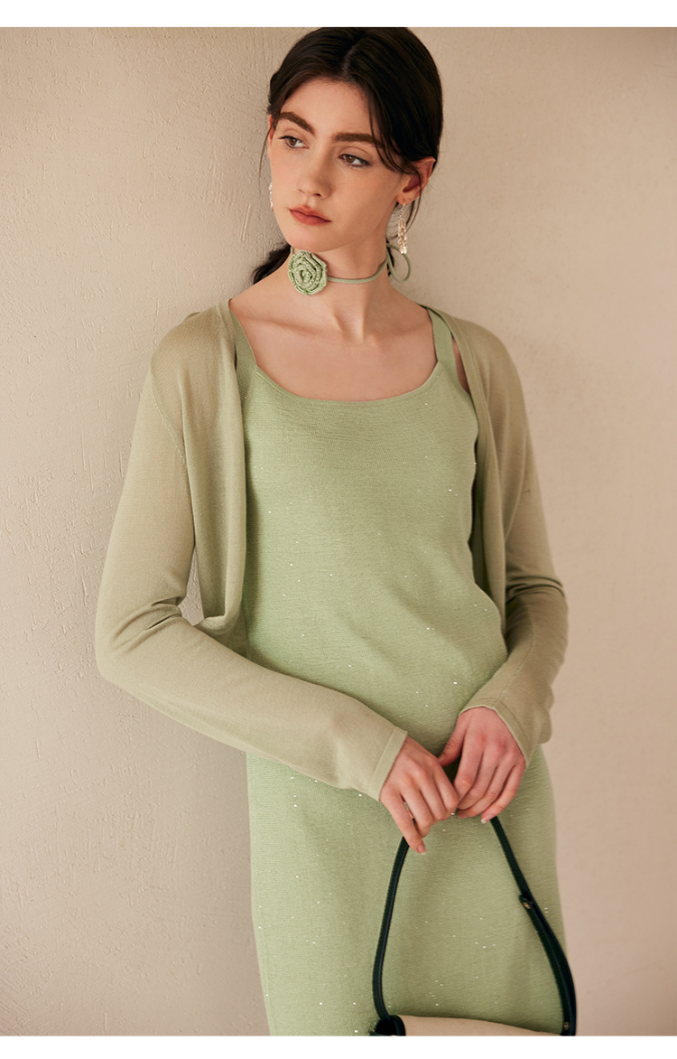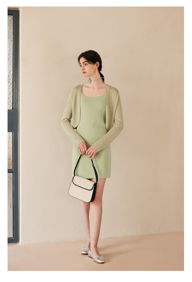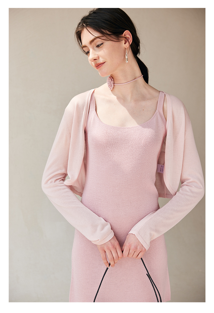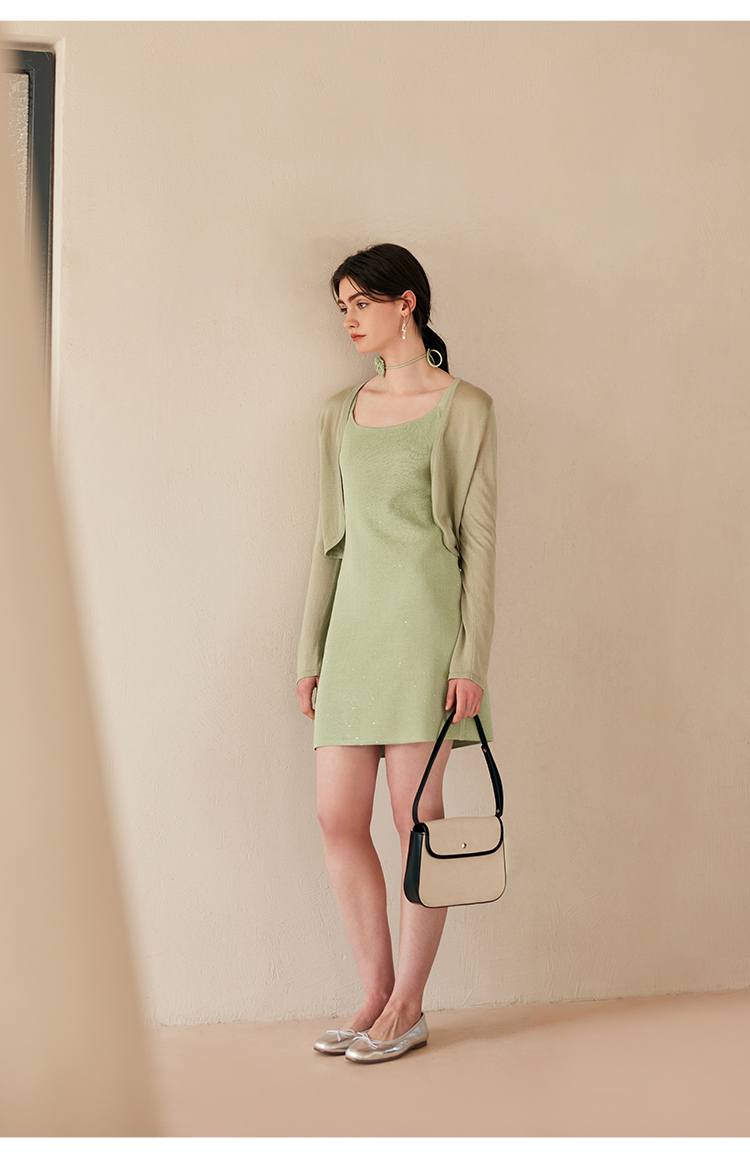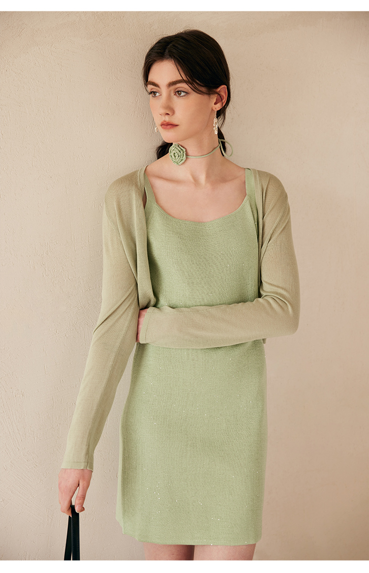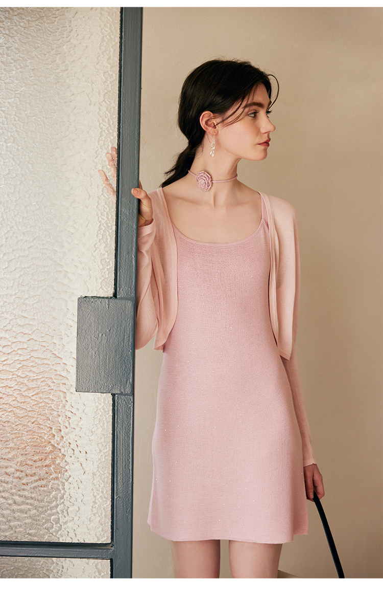 HeyDress细闪亮片针织吊带裙女夏季法式收腰花朵绑带浪漫连衣裙子