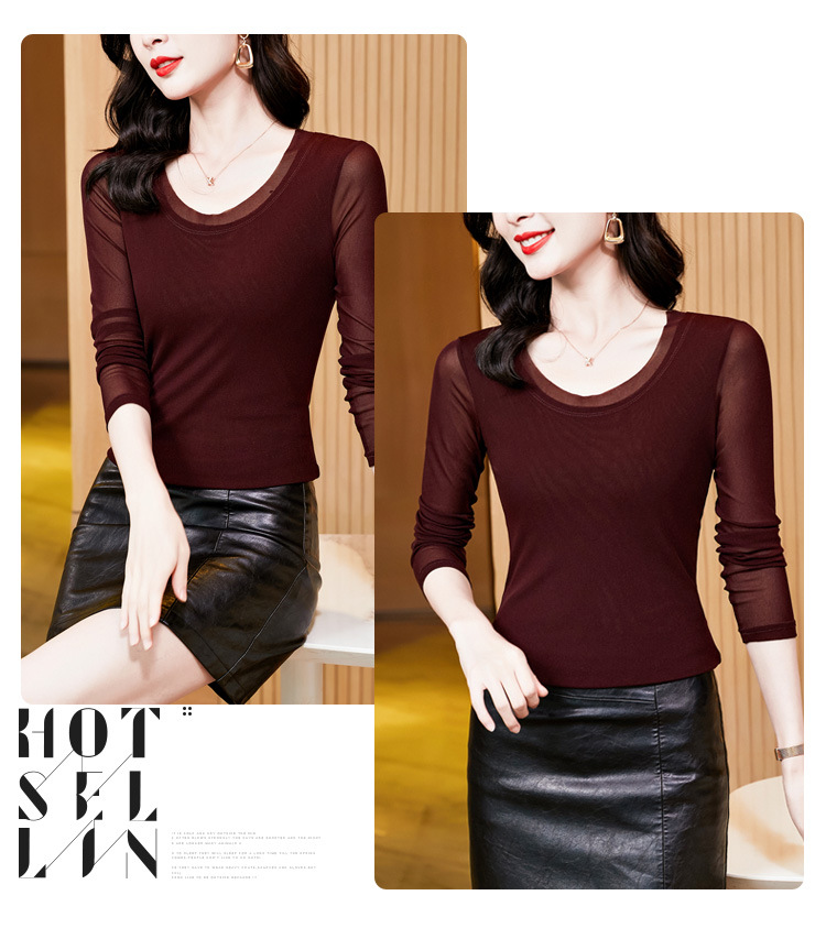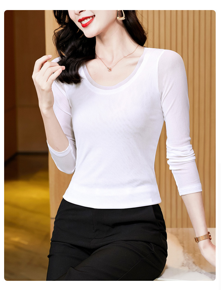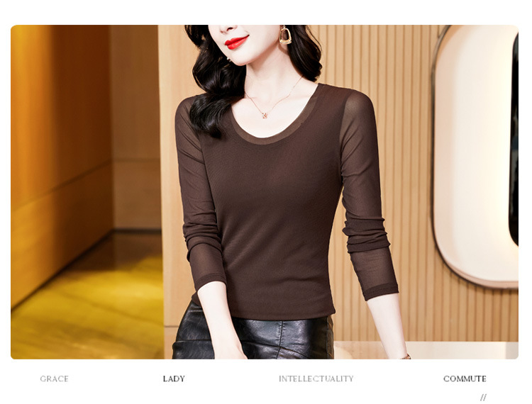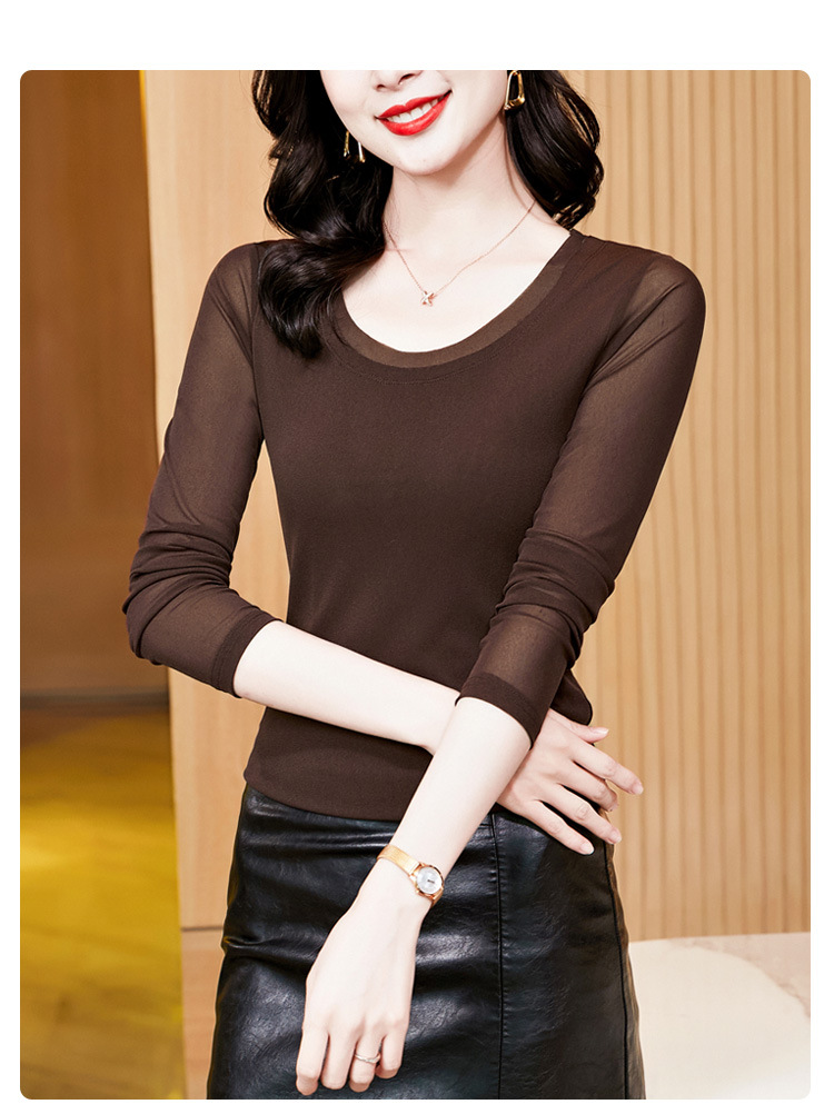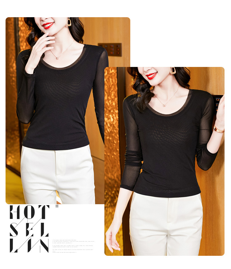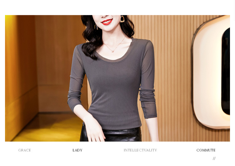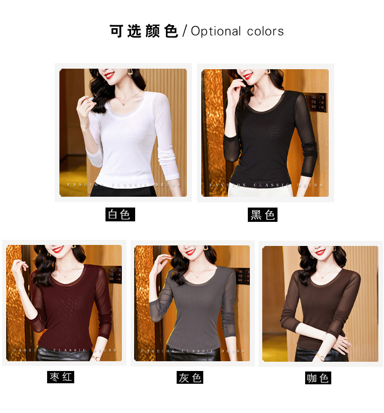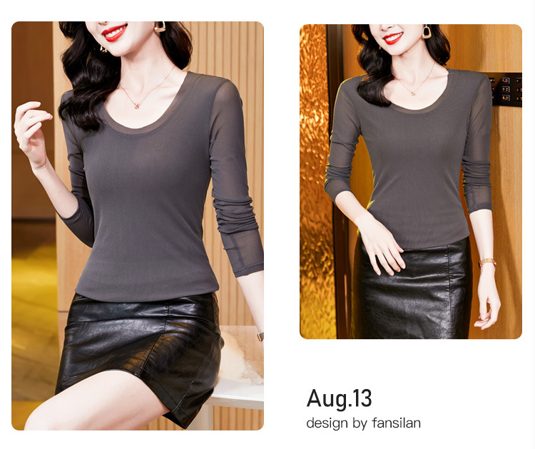 KQL E37M2927洋气圆领纯色修身显瘦网纱打底t恤