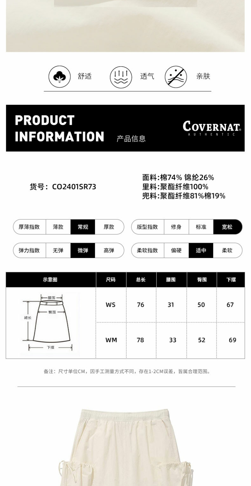 covernat2024年春夏新款女中长款工装风口袋减龄半身裙CO2401SR73