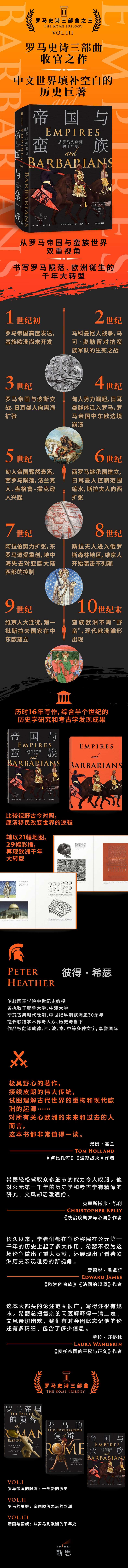 ★野心很大的著作,接续皮朗的伟大传统,试图理解古代世界的重构和现代欧洲的起源……希瑟非常擅长写作,总是能吸引读者的注意力……对所有关心欧洲的未来和过去的人而言,这本书都非常值得一读。