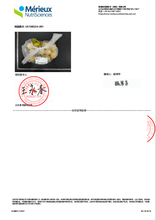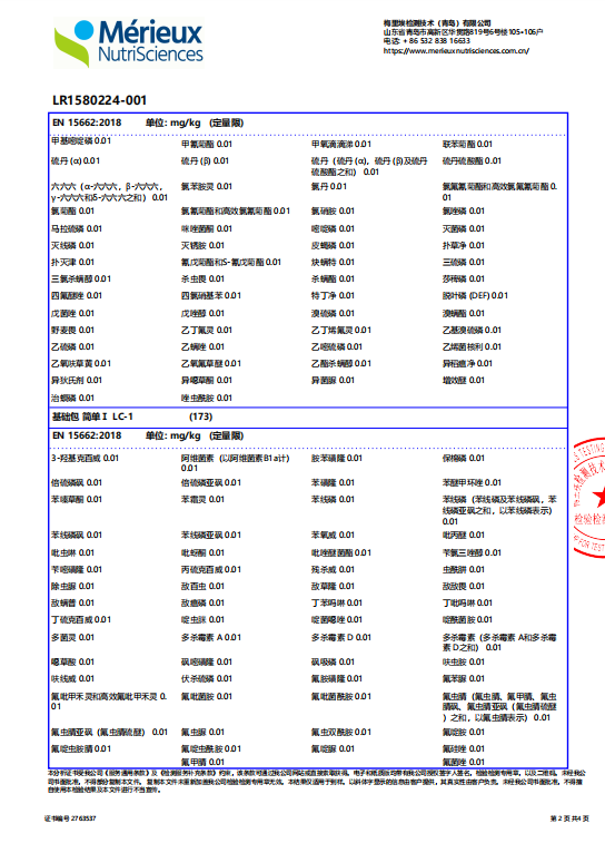 25年检测报告,农残未检出: