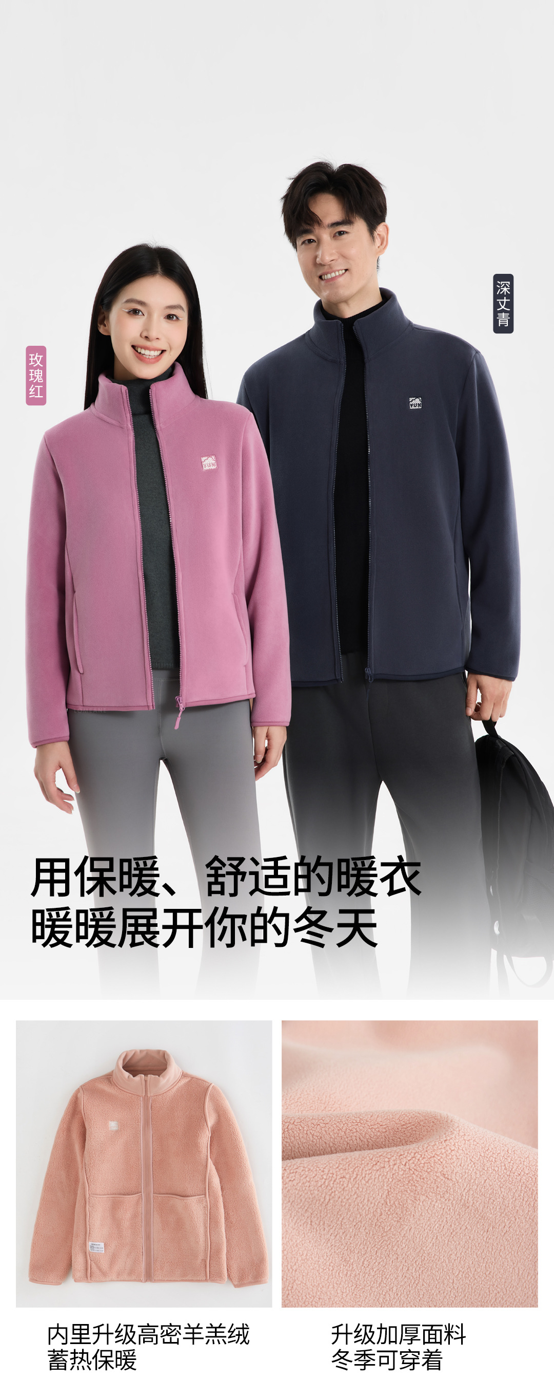 【老顾客福利款-升级版‼️云感奥利绒外套】男女同款7A抗菌 加绒加厚保暖立领拉链开衫奥利绒休闲外套 特别添加山茶花润肤精油 70706(下单7天左右发货)