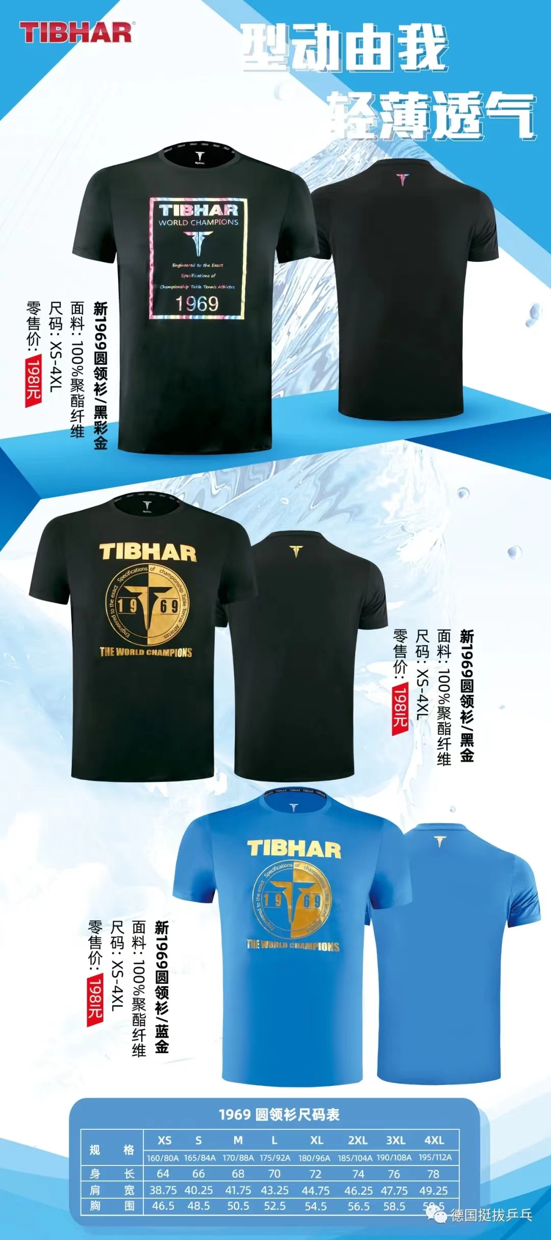 挺拔TIBHAR新1969圆领衫男女款运动比赛服乒乓球短袖