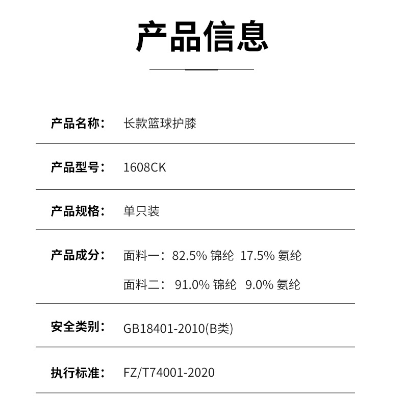LP1608CK护膝男女薄款亲肤运动透气专业篮球跑步专用保暖护腿套