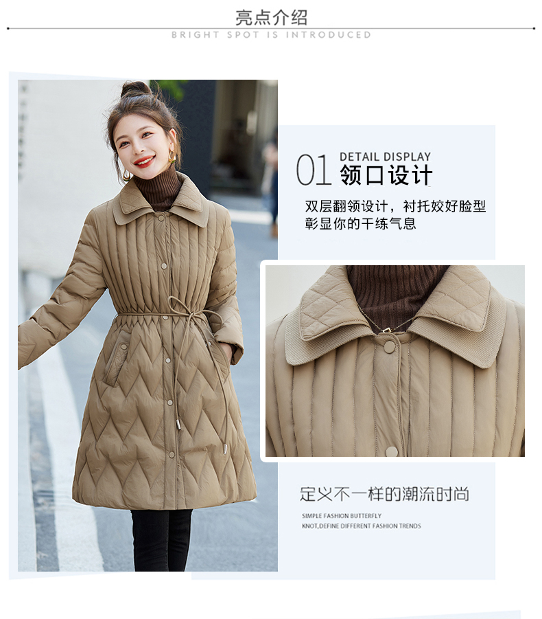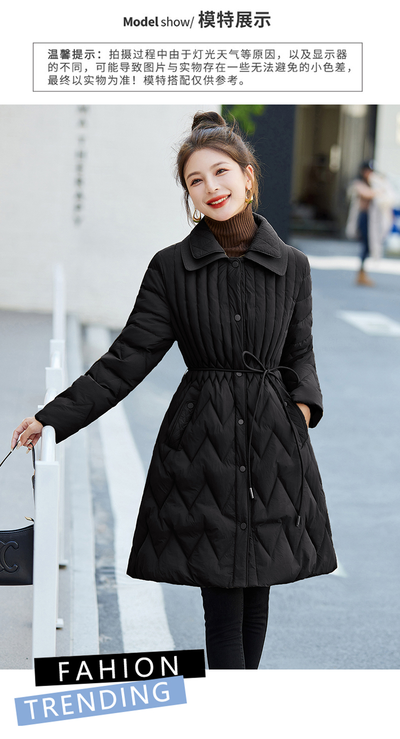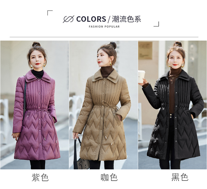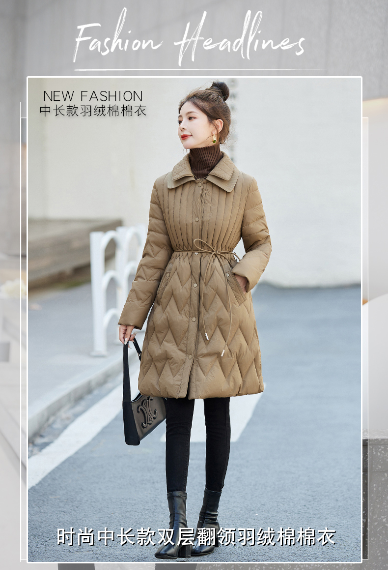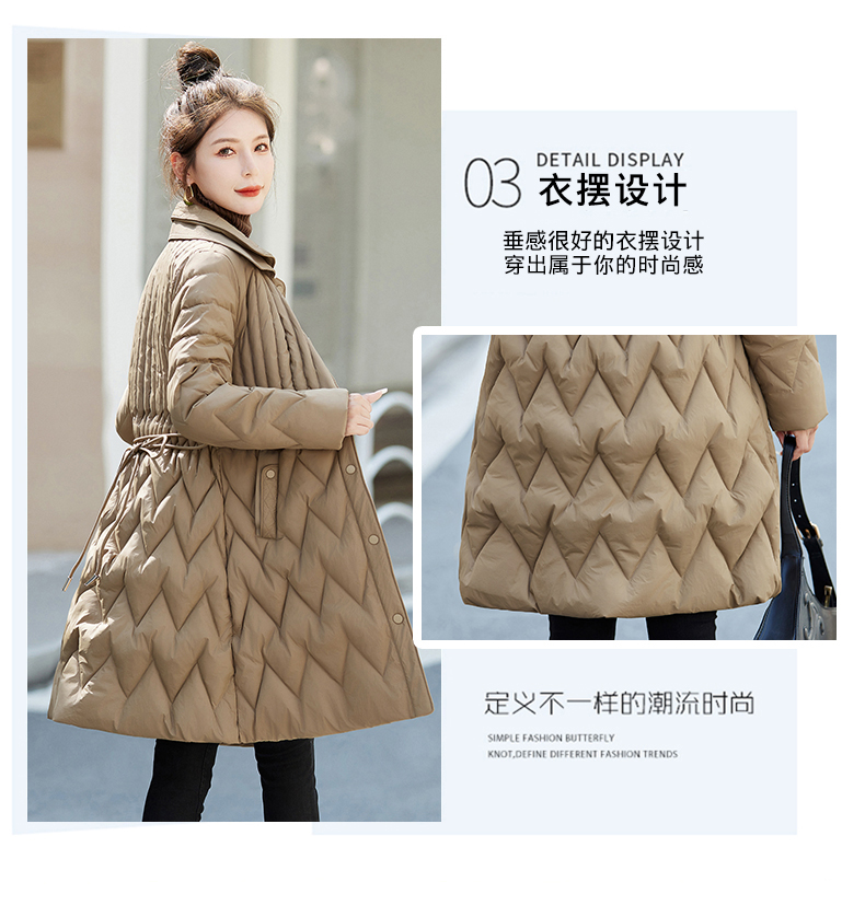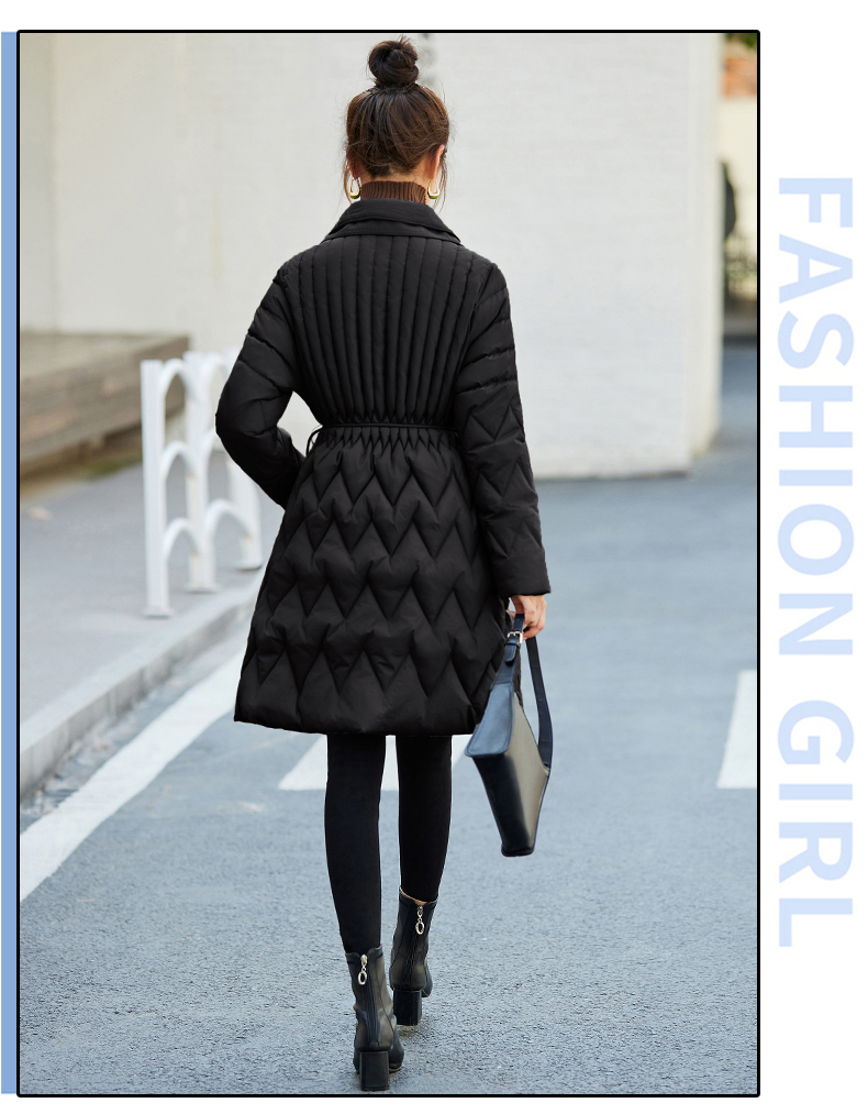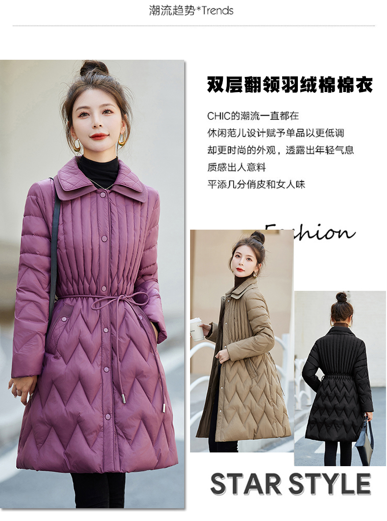 冬季新款,小香风波纹羽绒棉女温柔减龄收腰显瘦中长款棉衣外套(配腰带)HR-YM23860
