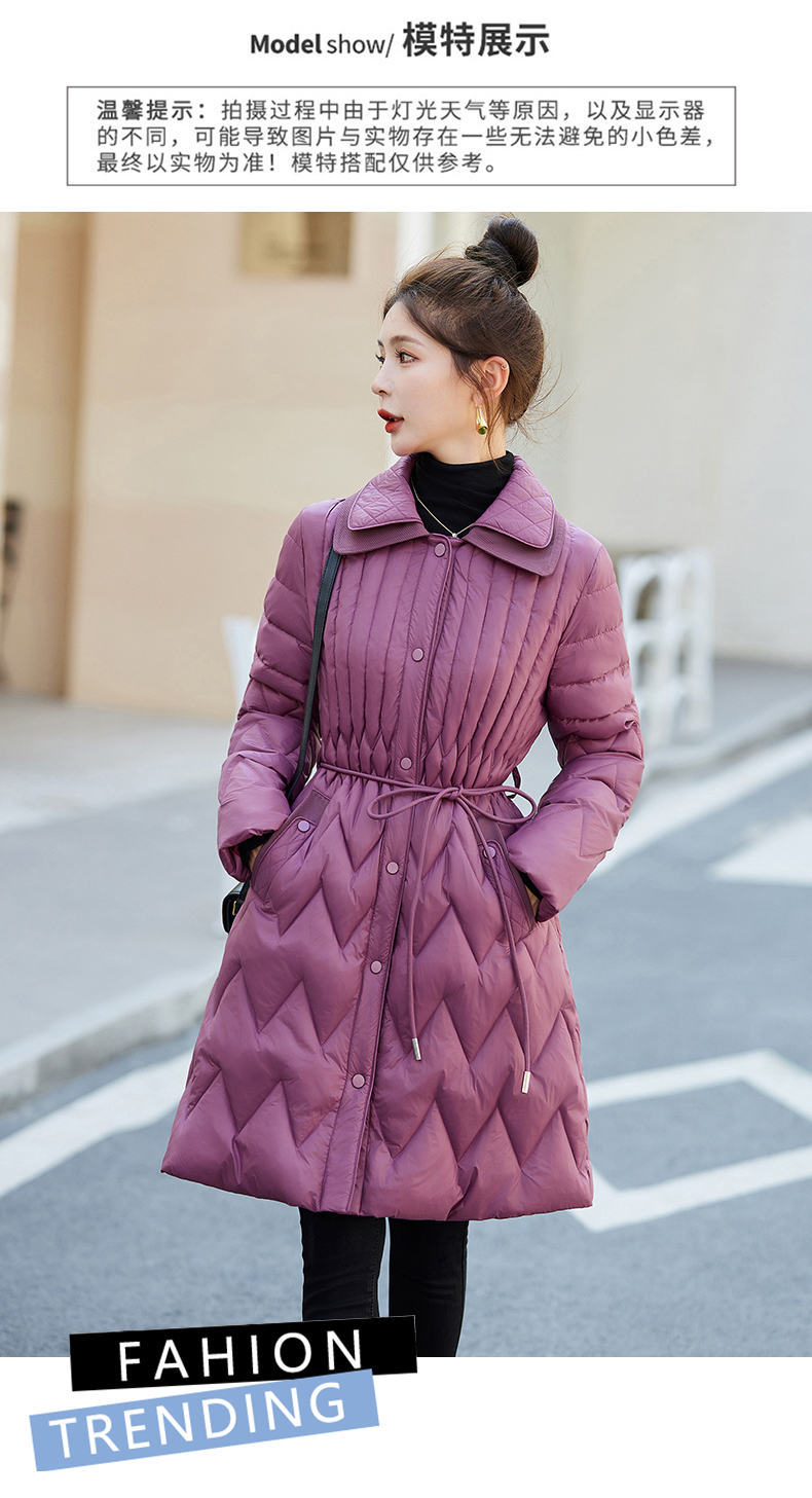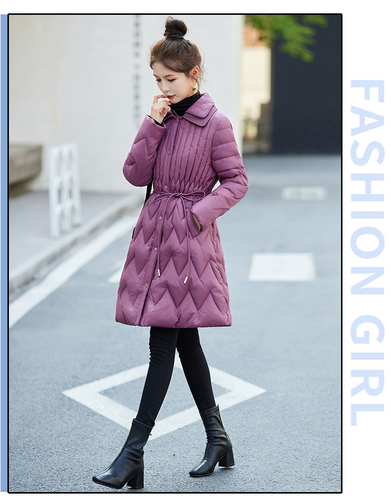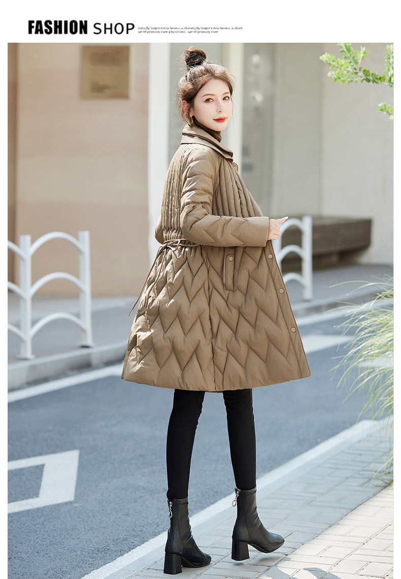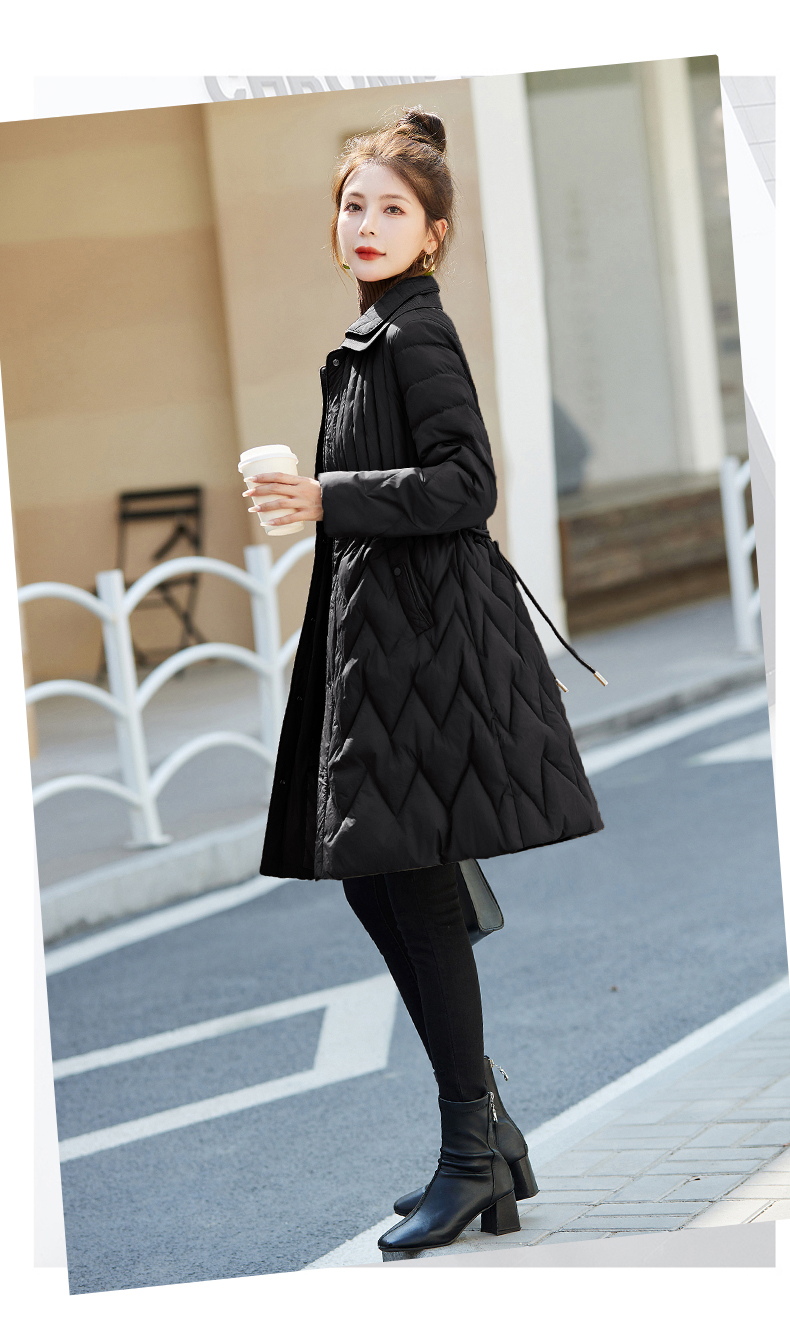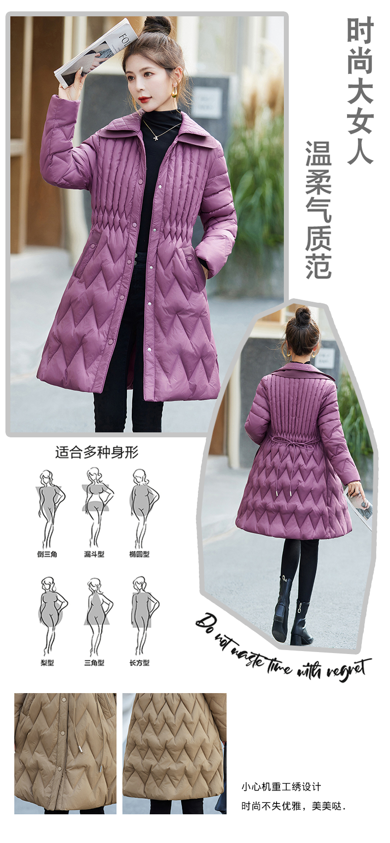 冬季新款,小香风波纹羽绒棉女温柔减龄收腰显瘦中长款棉衣外套(配腰带)HR-YM23860