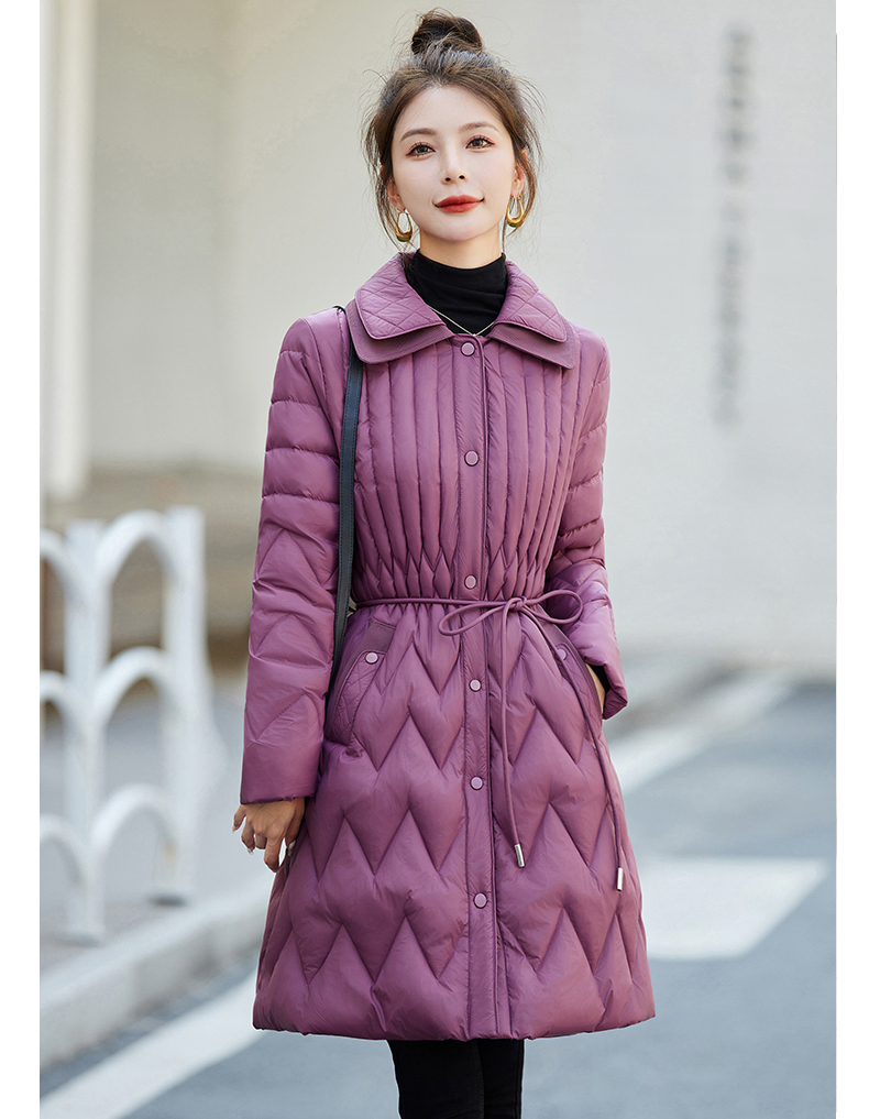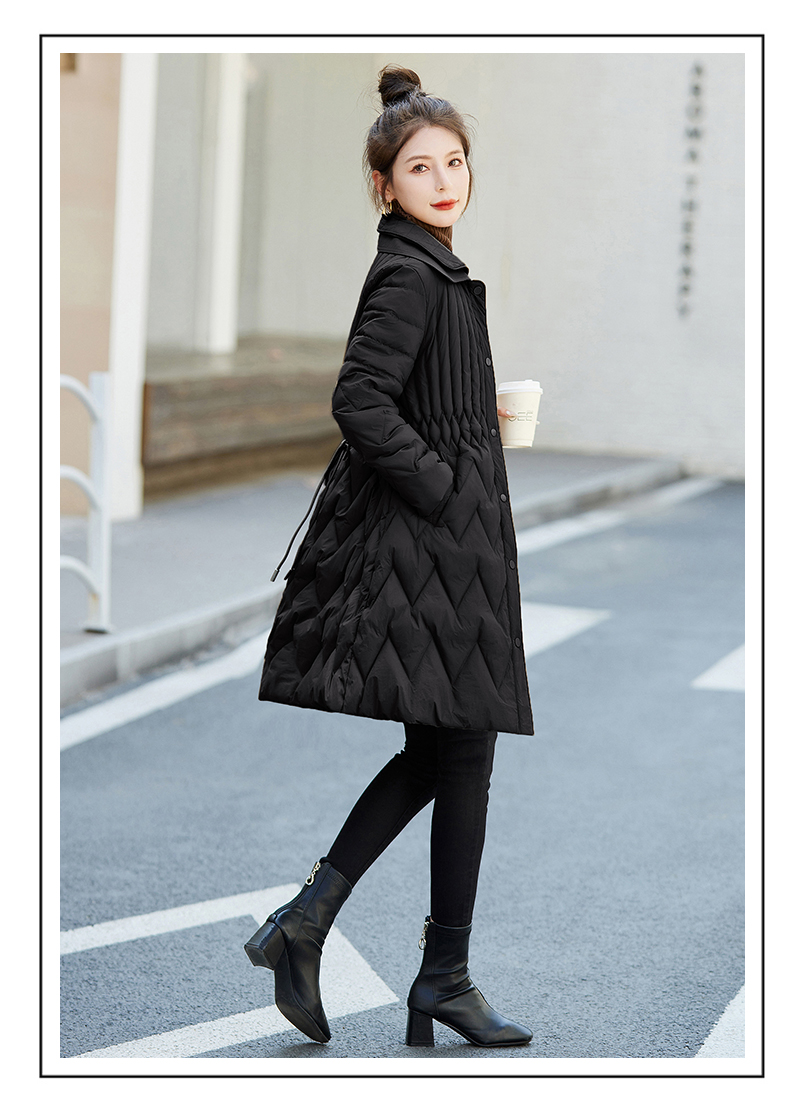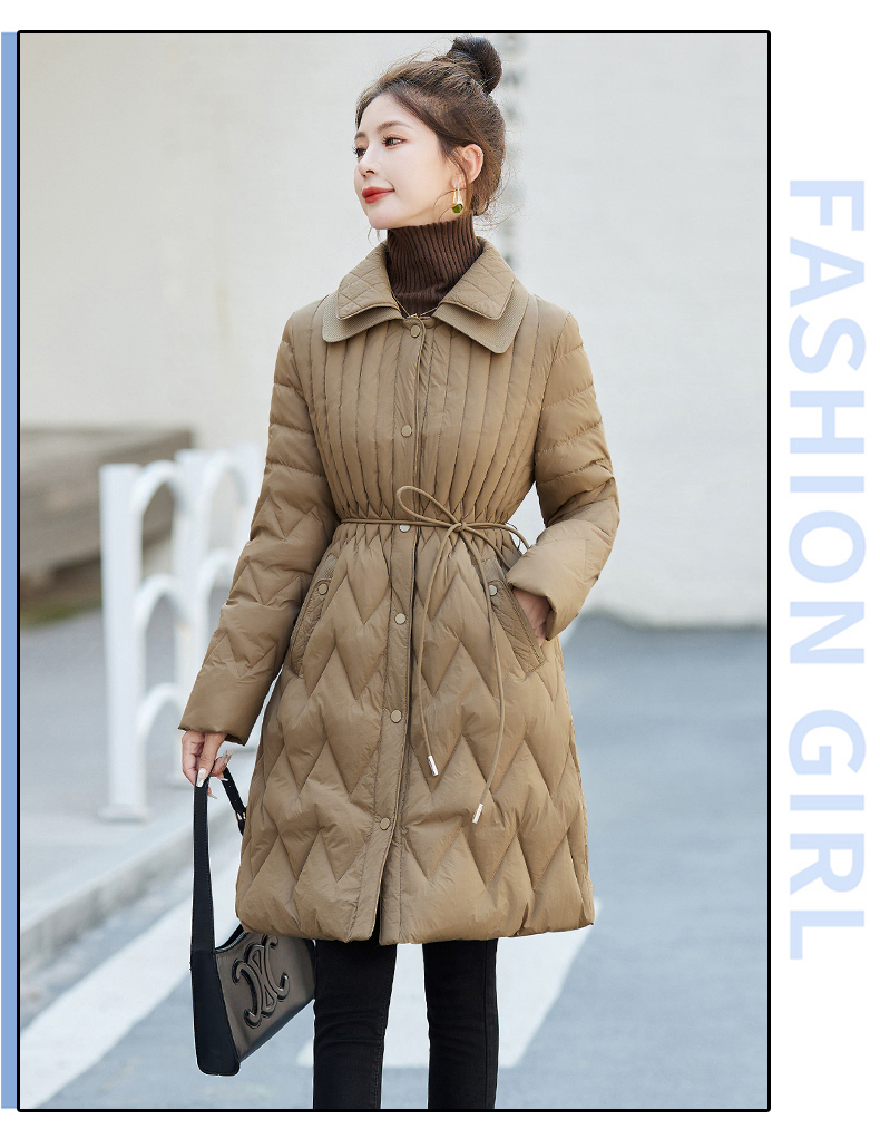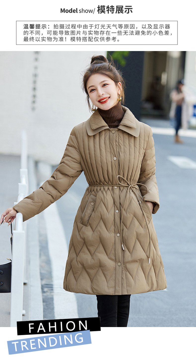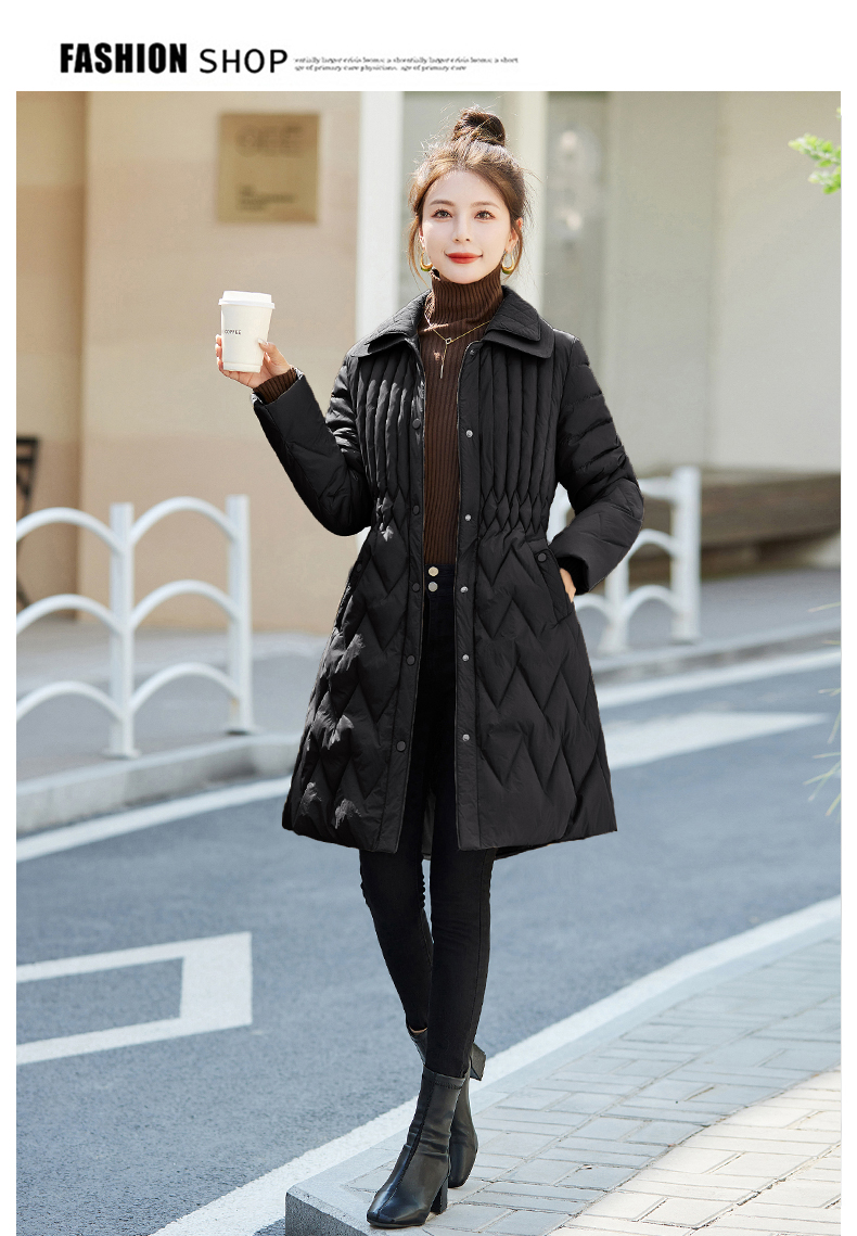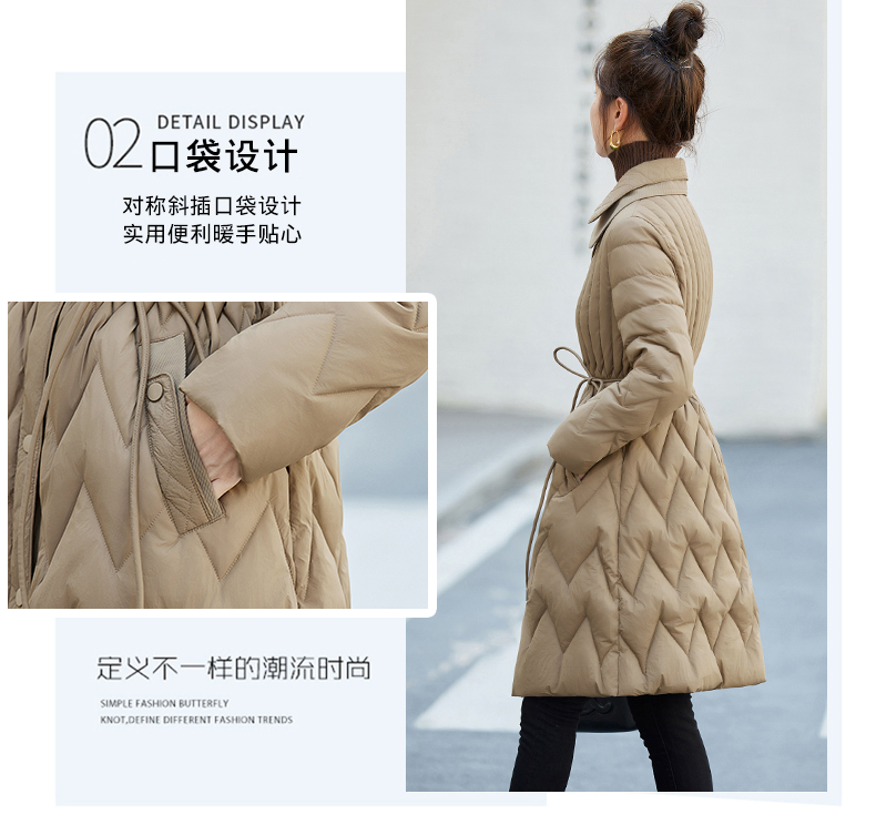 冬季新款,小香风波纹羽绒棉女温柔减龄收腰显瘦中长款棉衣外套(配腰带)HR-YM23860