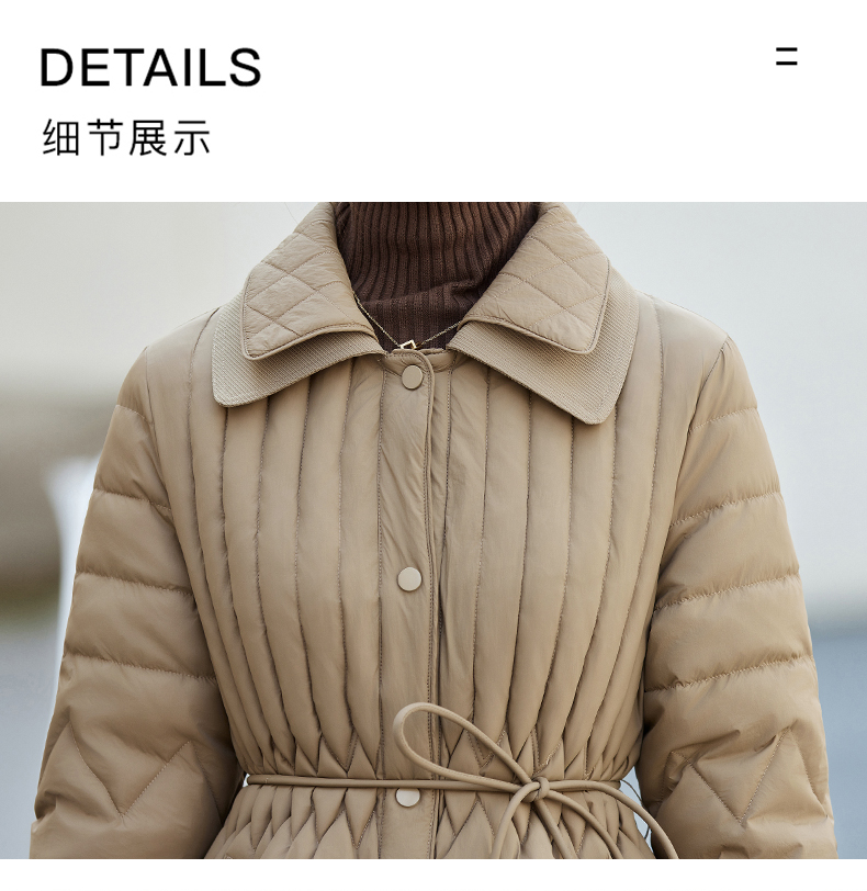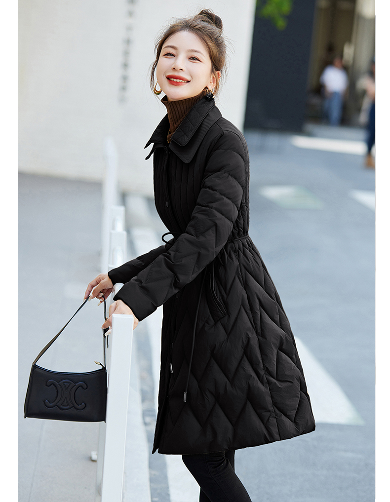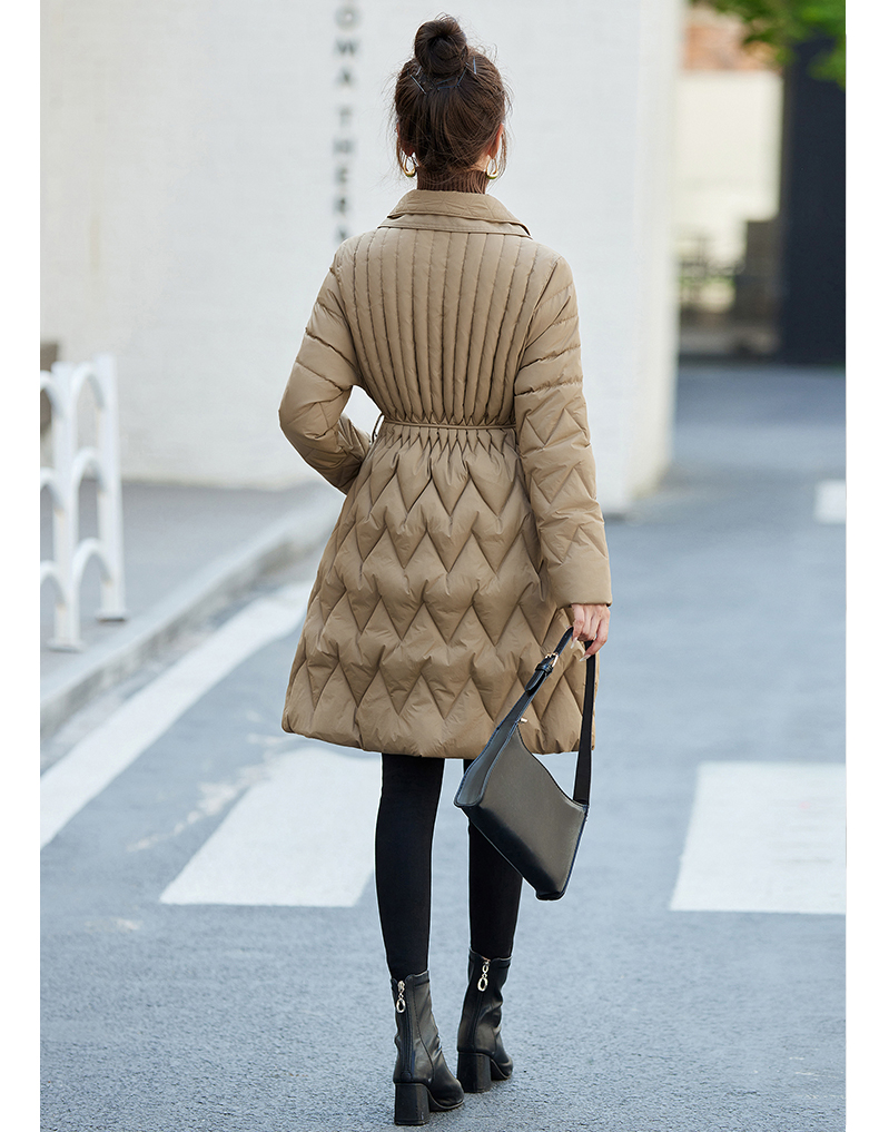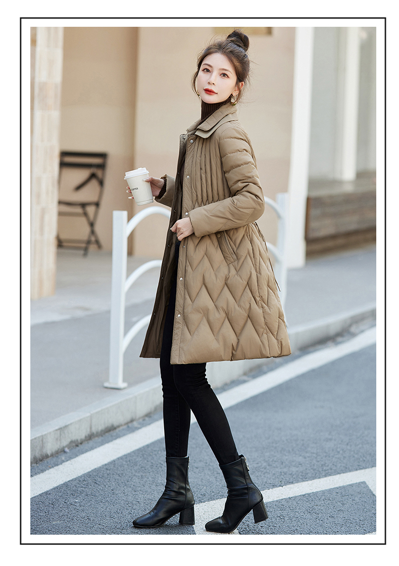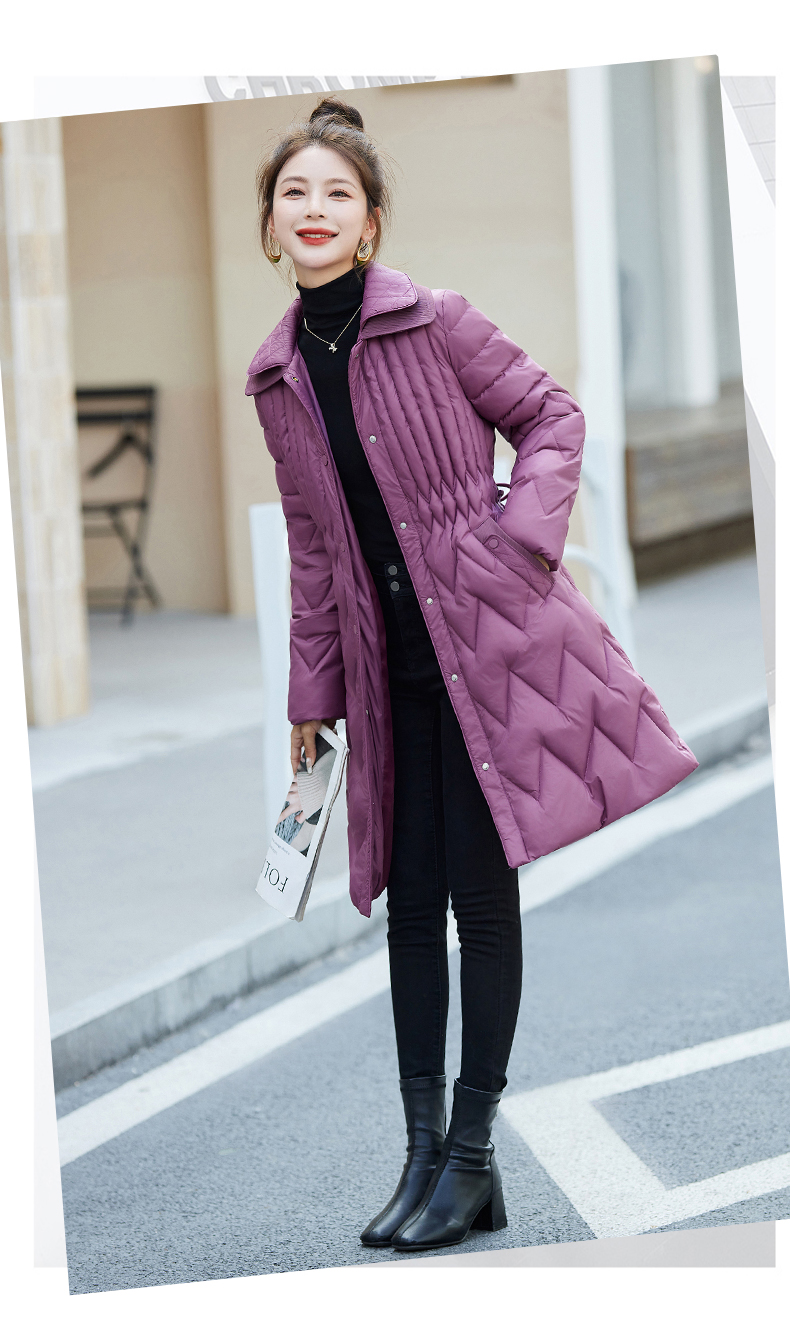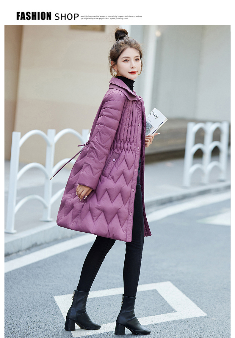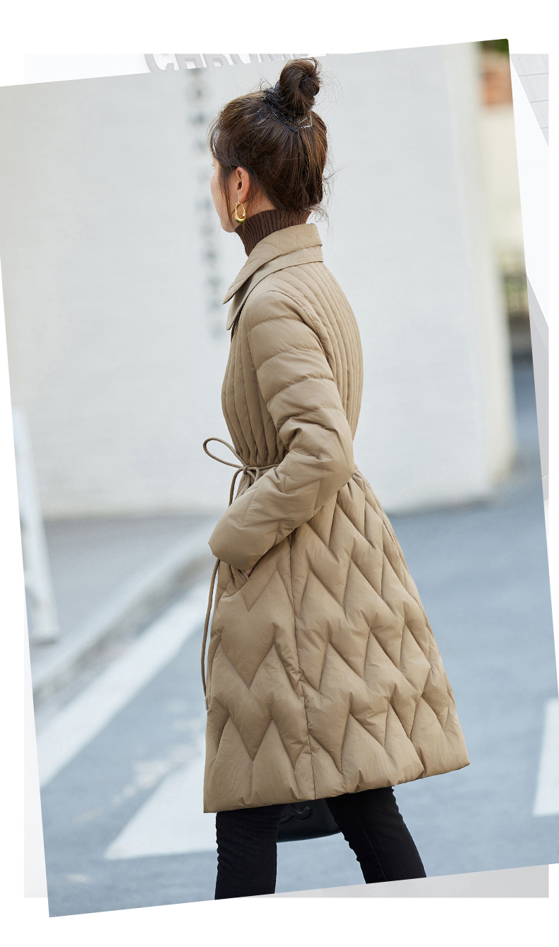 冬季新款,小香风波纹羽绒棉女温柔减龄收腰显瘦中长款棉衣外套(配腰带)HR-YM23860