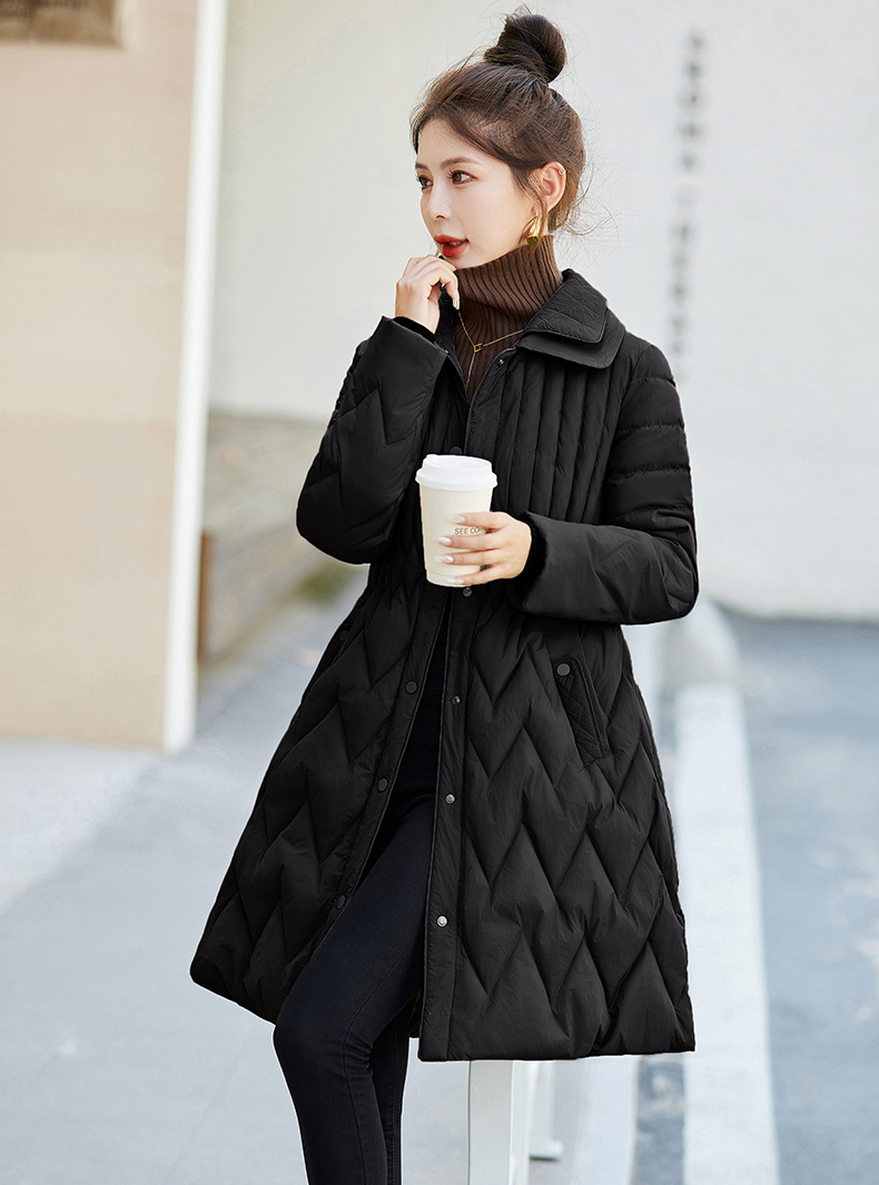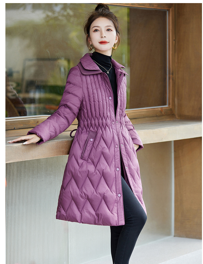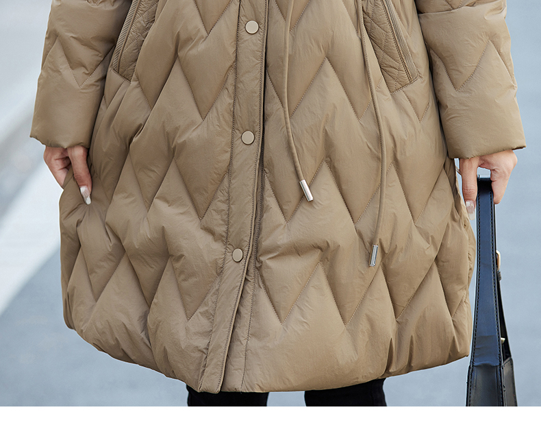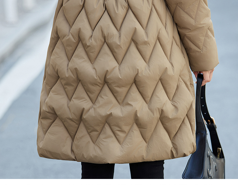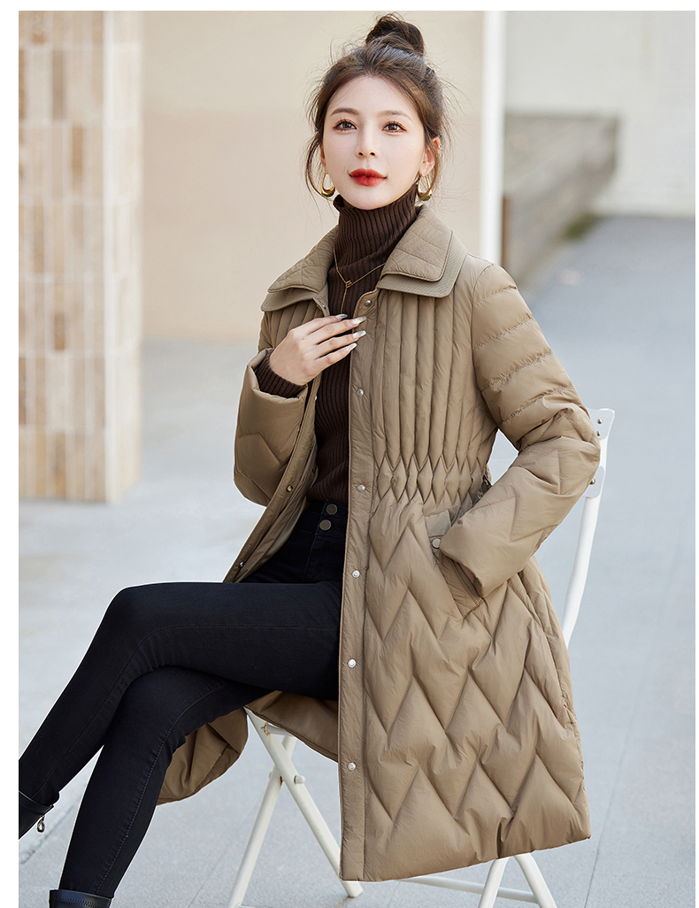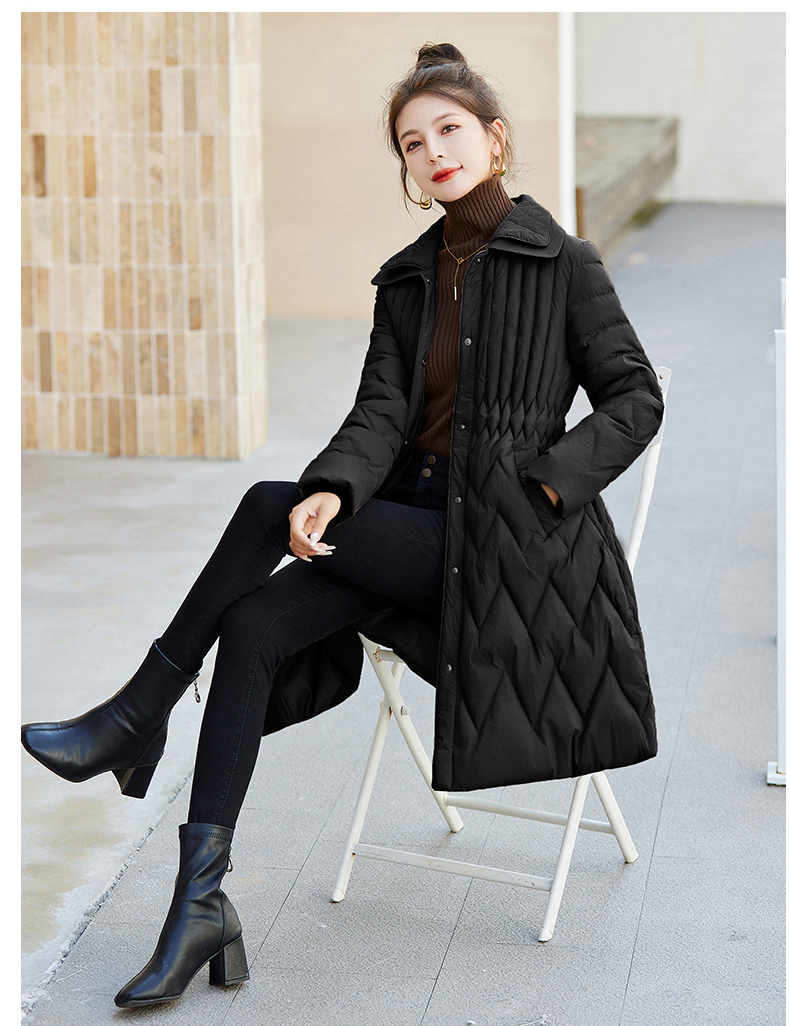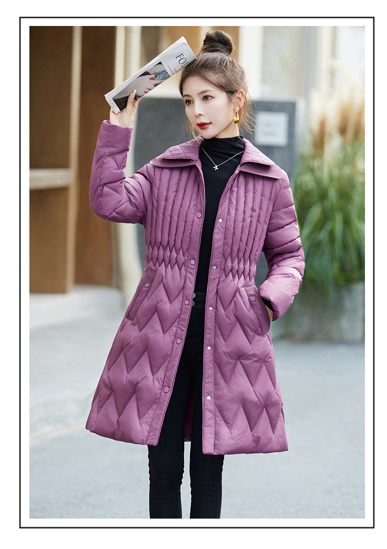 冬季新款,小香风波纹羽绒棉女温柔减龄收腰显瘦中长款棉衣外套(配腰带)HR-YM23860