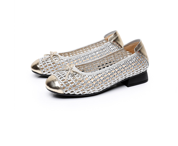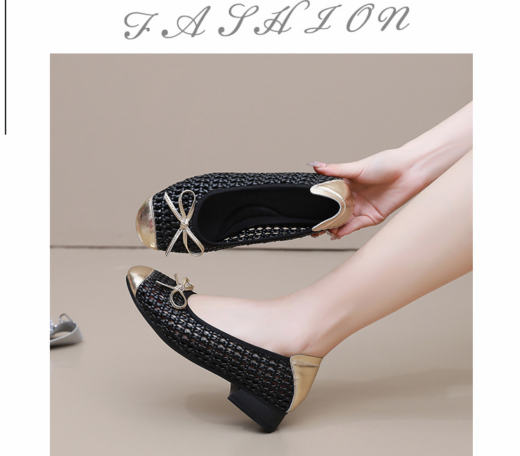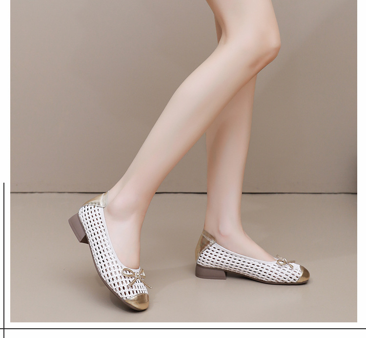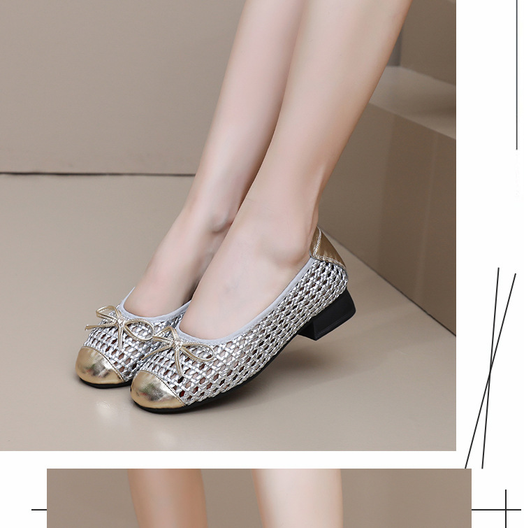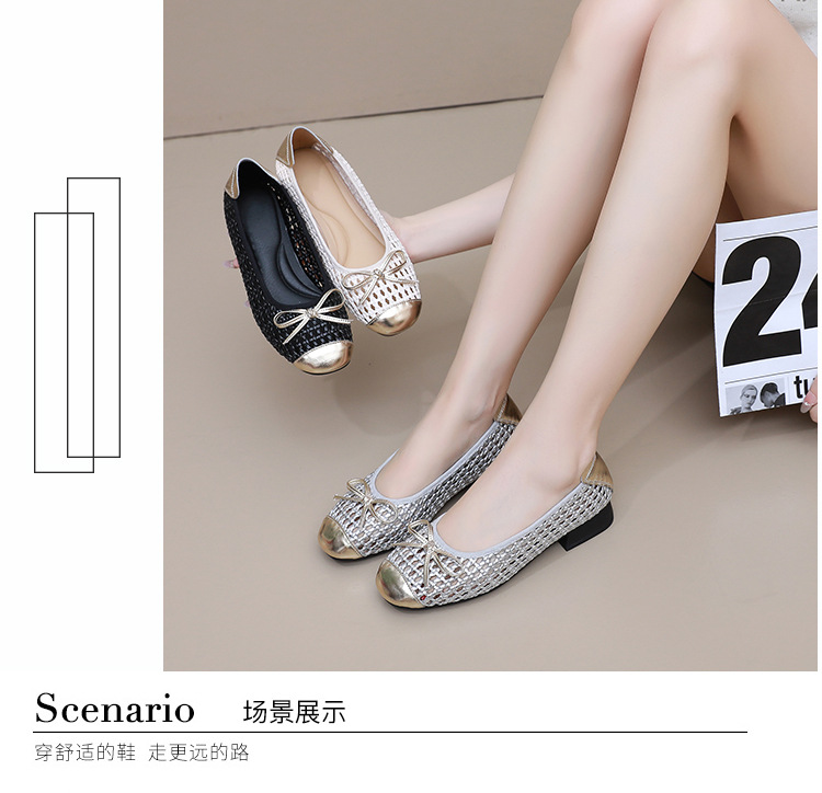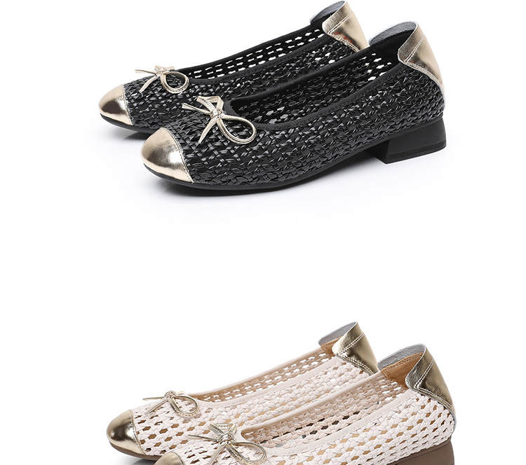 丁摩 夏韩版蝴蝶结镂空洞洞编织低跟女单鞋休闲软底复古透气凉鞋5ZF-5899