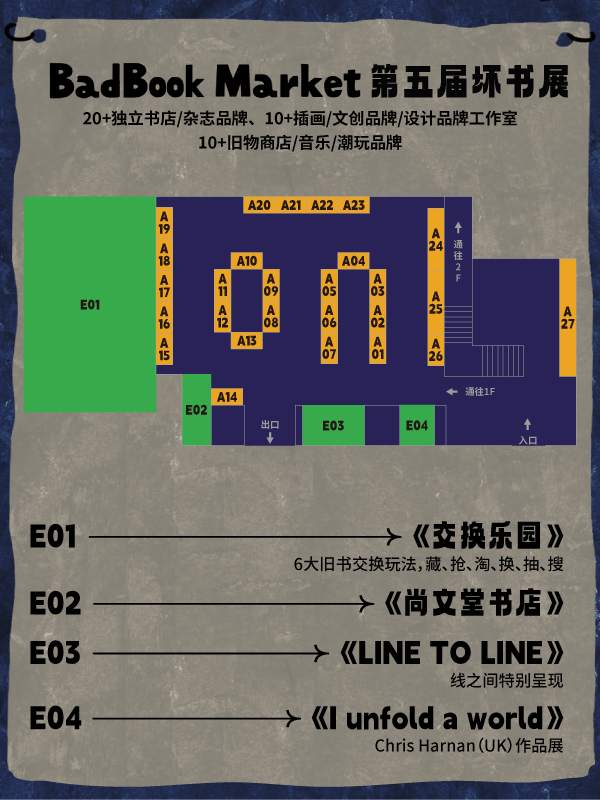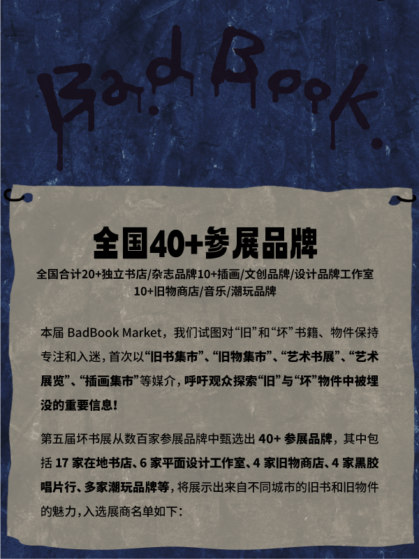 6.门票一经售出概不退换。如因主办方原因或不可抗力导致活动无法正常举办,我们将统一安排退票,届时请留意官方微信公众号、小红书平台:BadBook Market坏书展