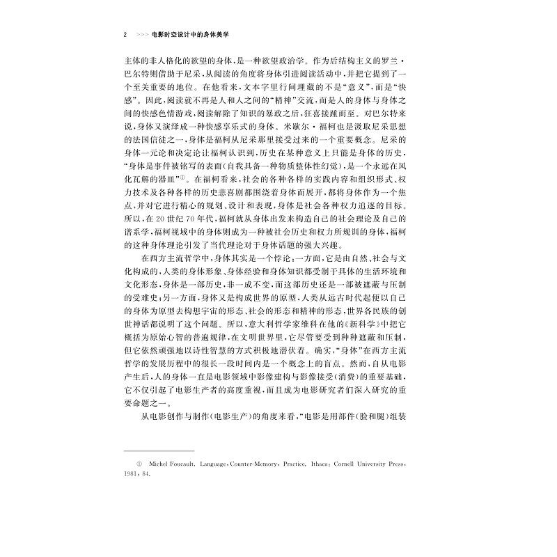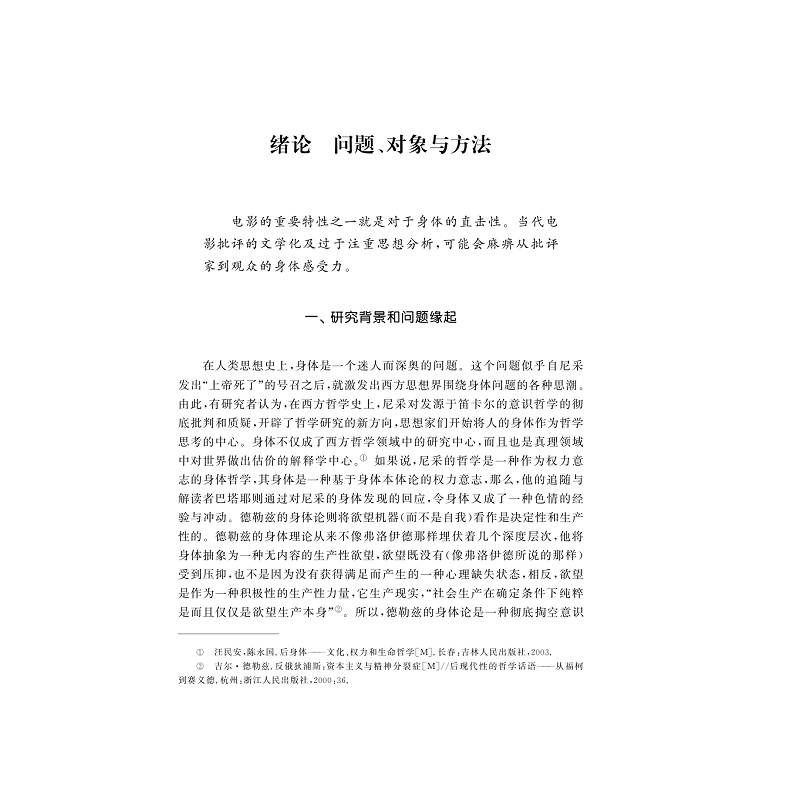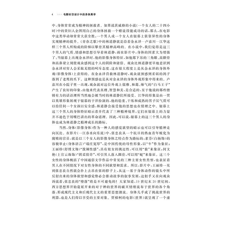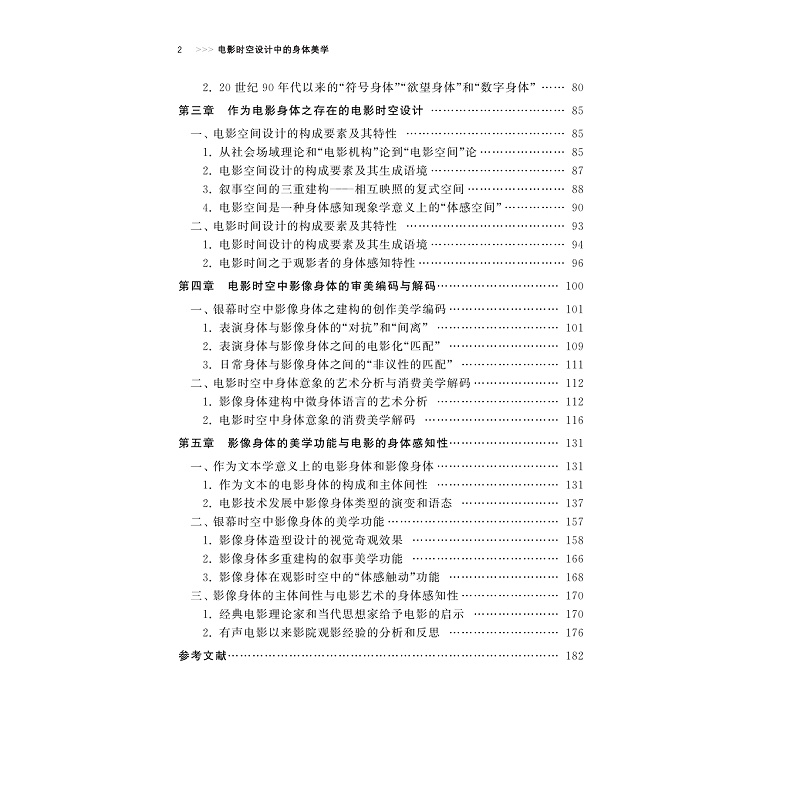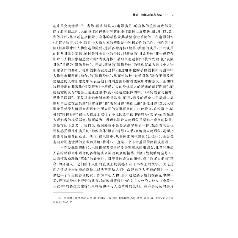 该著作是作者在博士论文“影像身体的美学建构及其意义生成”一文的基础上,经过修改补充而完成的。论著系统地梳理了从哲学语境到电影理论史上有关电影时空设计中的身体审美话语,把电影时空中各种身体现象纳入电影生产与文化消费的活动整体中,进行审美鉴赏角度的分析研究,从电影人物形象创作(身体形象符号编码)美学和文化消费(身体意象解码)美学,以及大众文化传播的跨学科角度,来系统研究电影时空设计中的身体意象的美学问题,并结合身体现象学的视野,来研究电影审美文化空间中“体感空间”的特性和这一空间中各种身体现象所构成的“身体间性”特点。