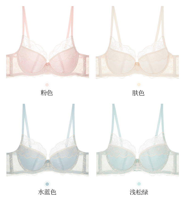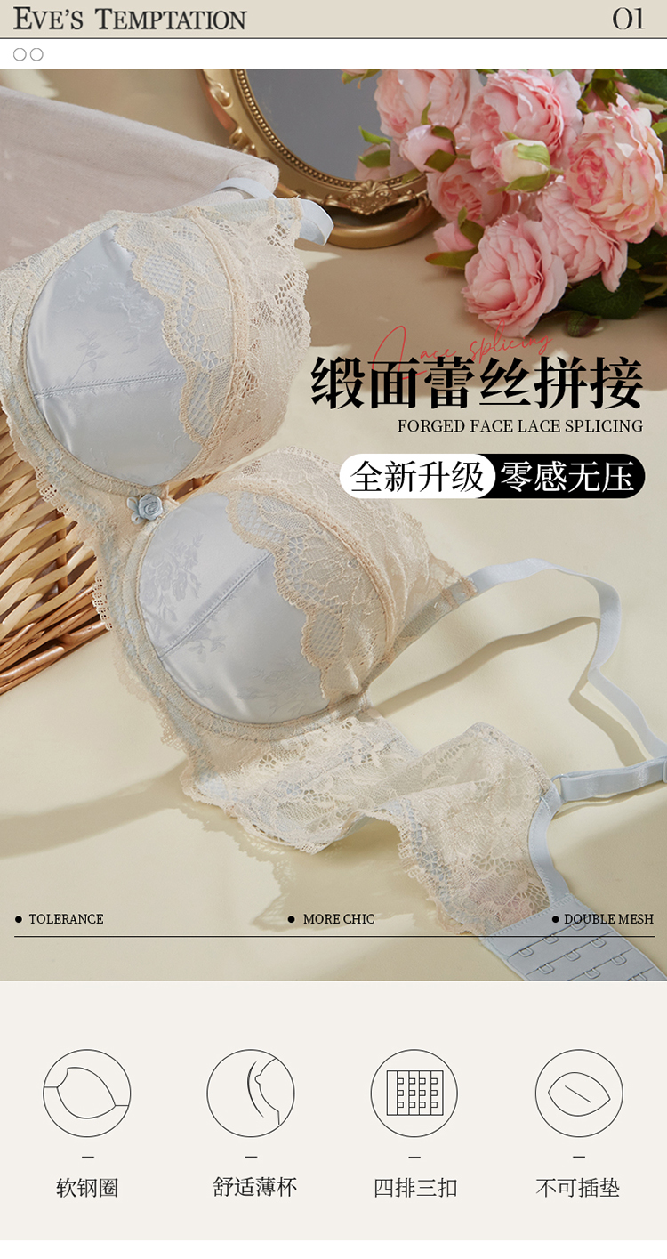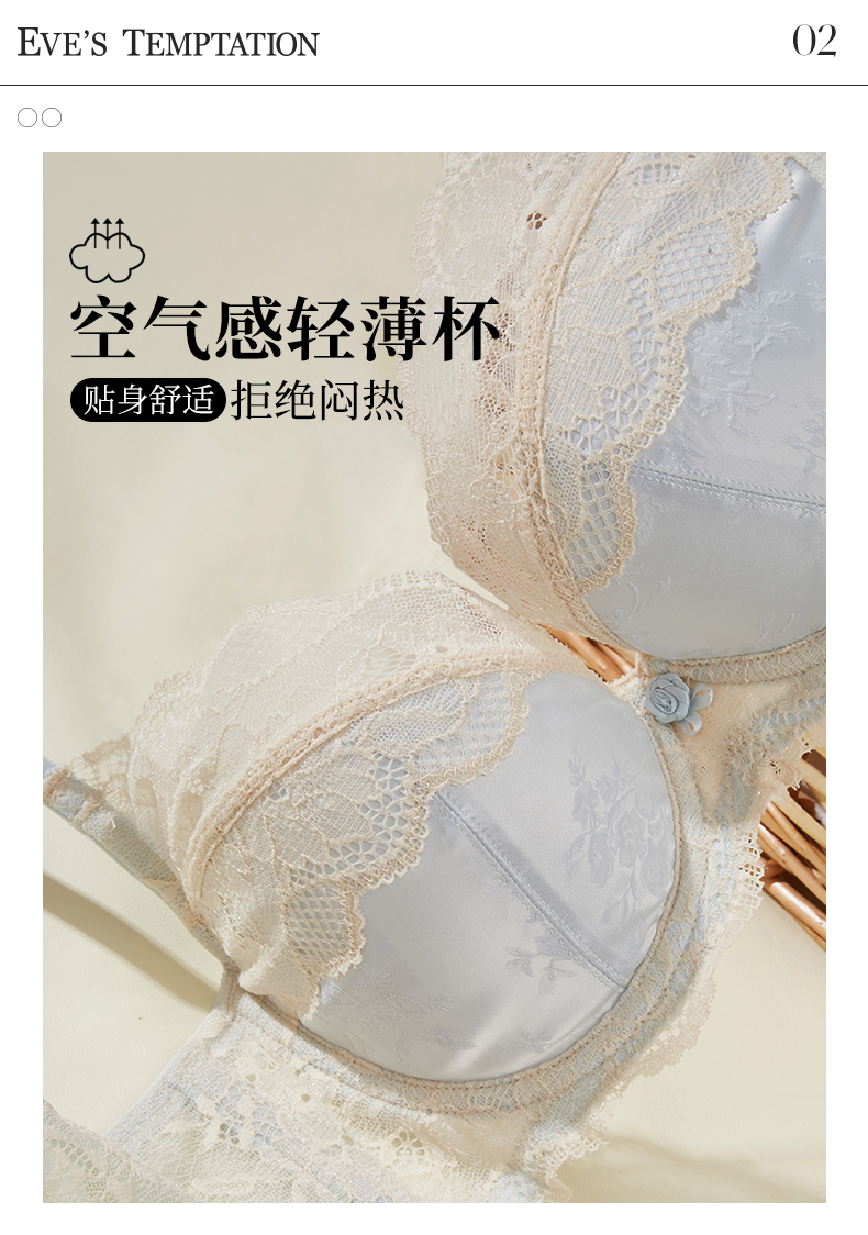 夏娃的诱惑浥轻尘组内衣女夏季薄款软钢圈大胸显小蕾丝性感文胸上托防下垂