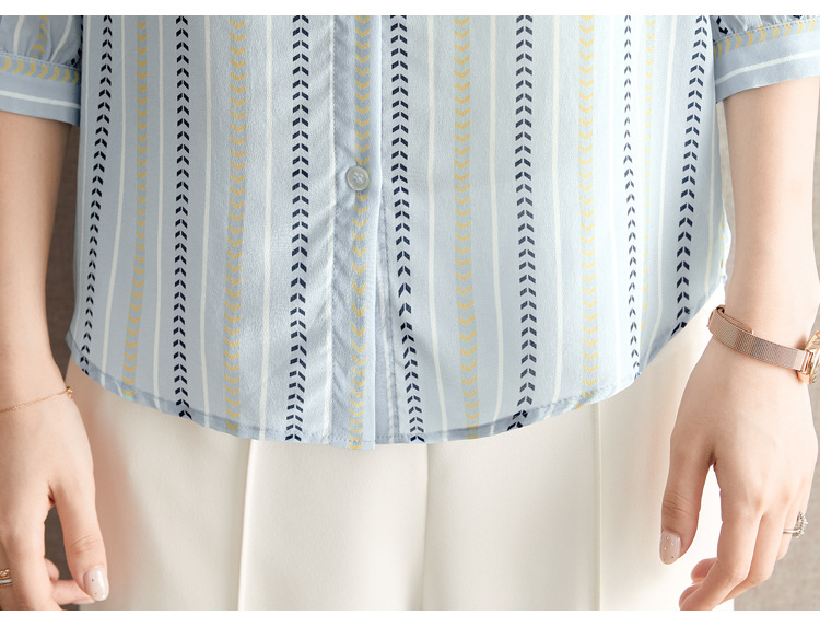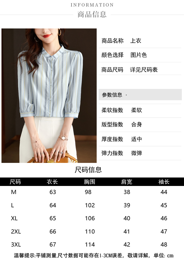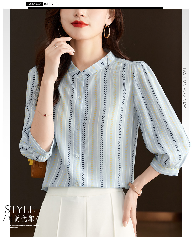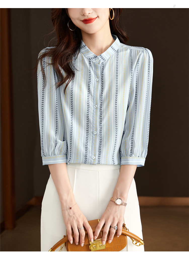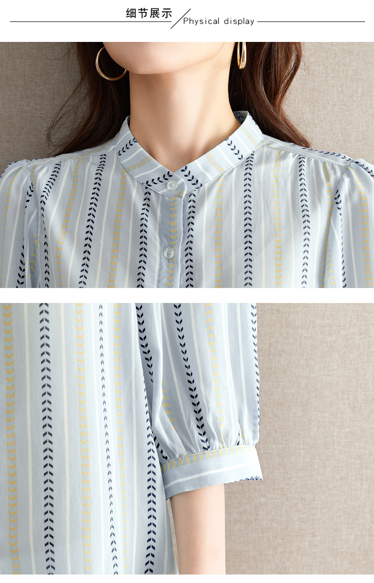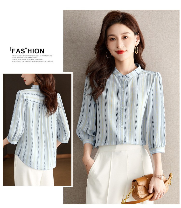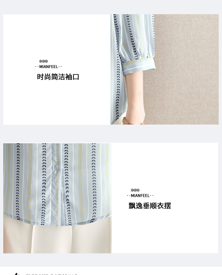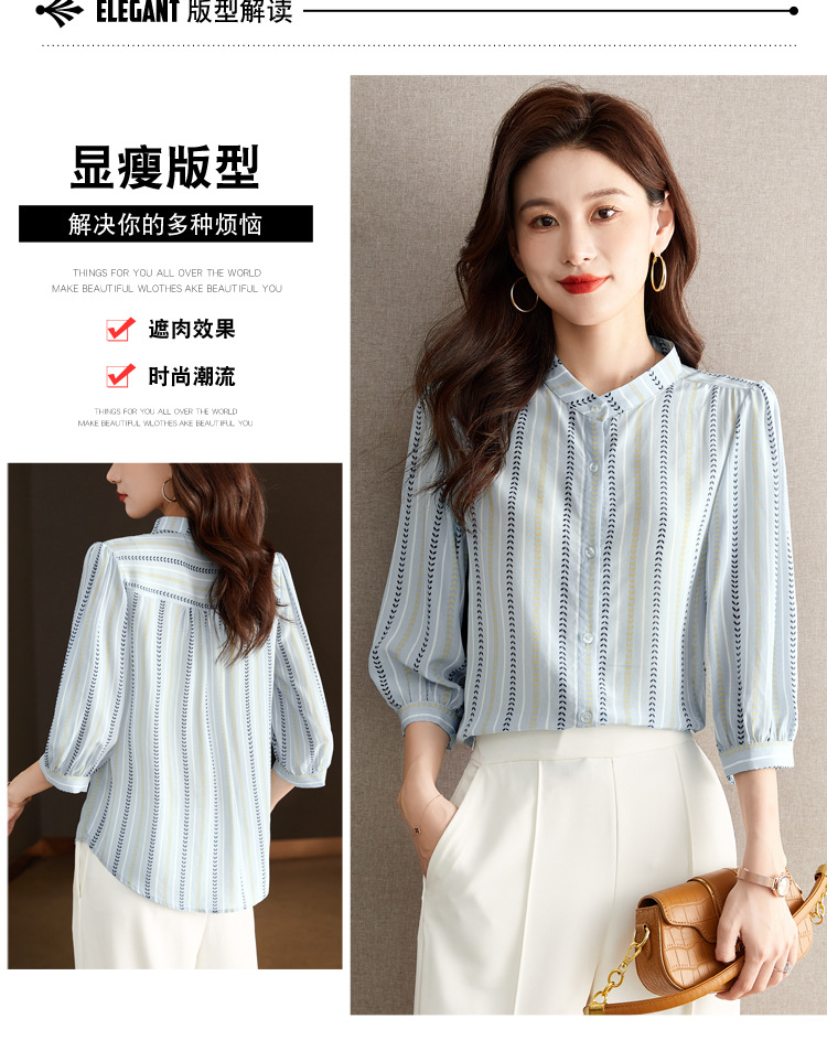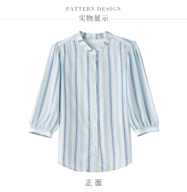 KQL 369H1721气质时尚休闲小衫宽松显瘦条纹中袖半高领衬衫