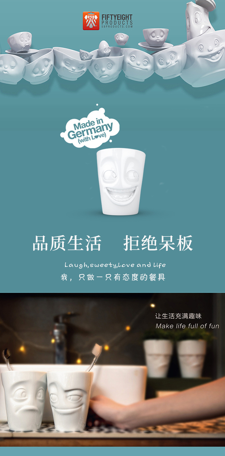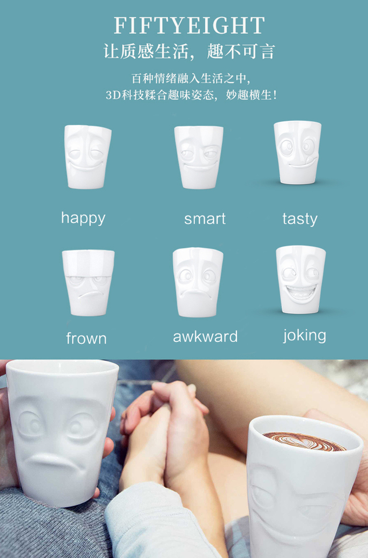 【Fiftyeight 】德国原产Fiftyeight 陶瓷卡通表情杯茶杯 玩笑
