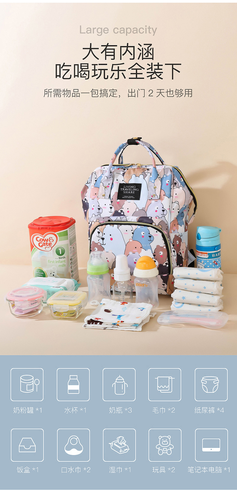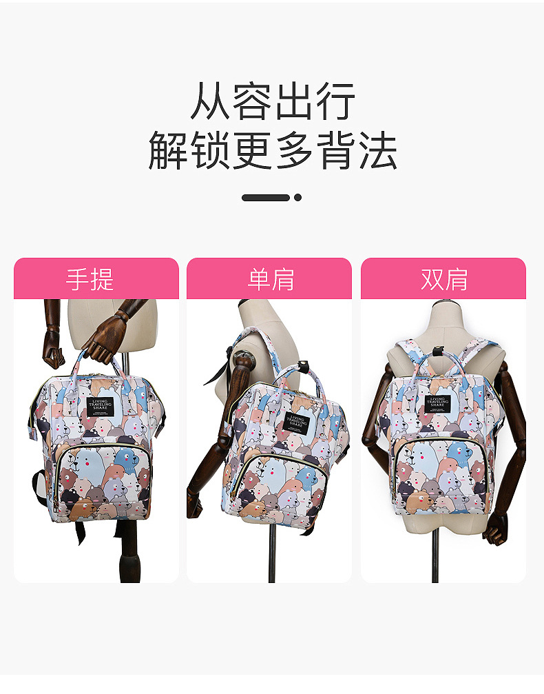 【出众的立体造型,360°无处不在的美】妈咪包新款多功能大容量 妈咪双肩包 时尚轻便尼龙包 母婴双肩包-QQ