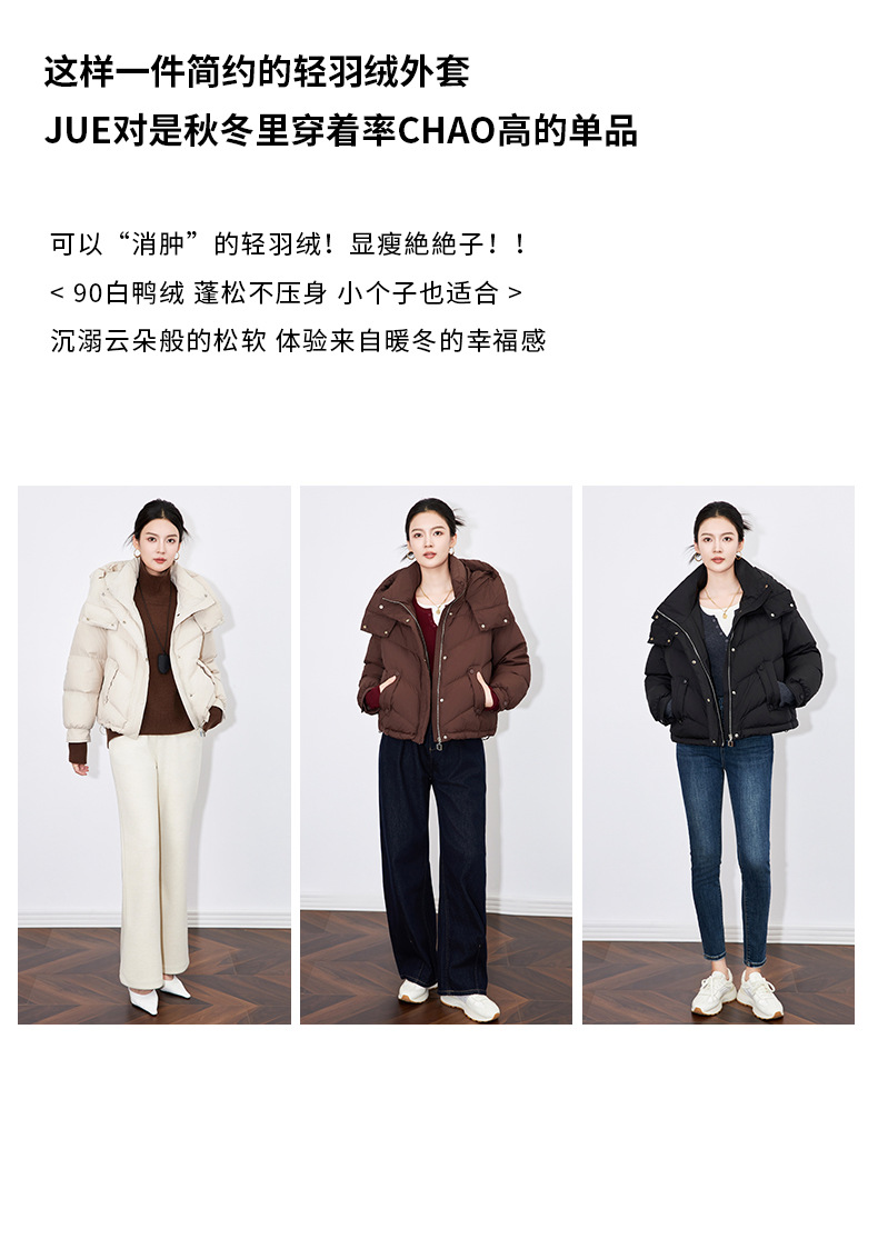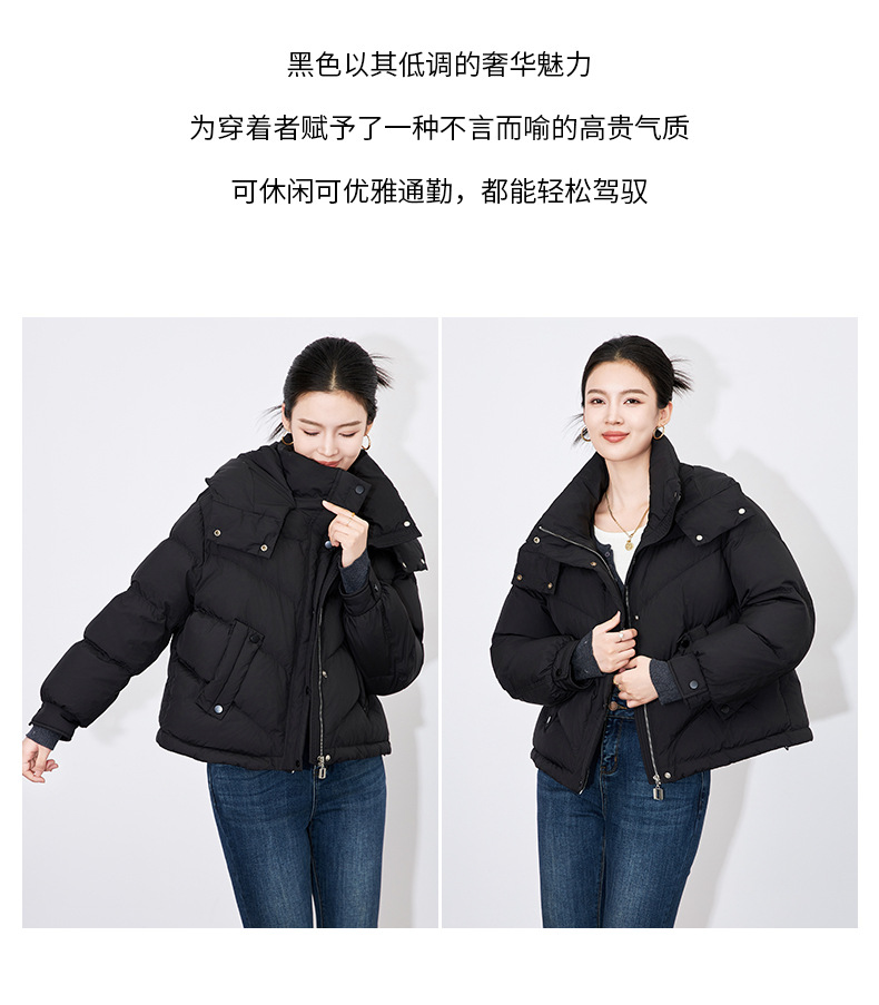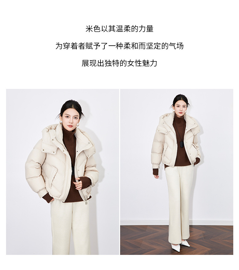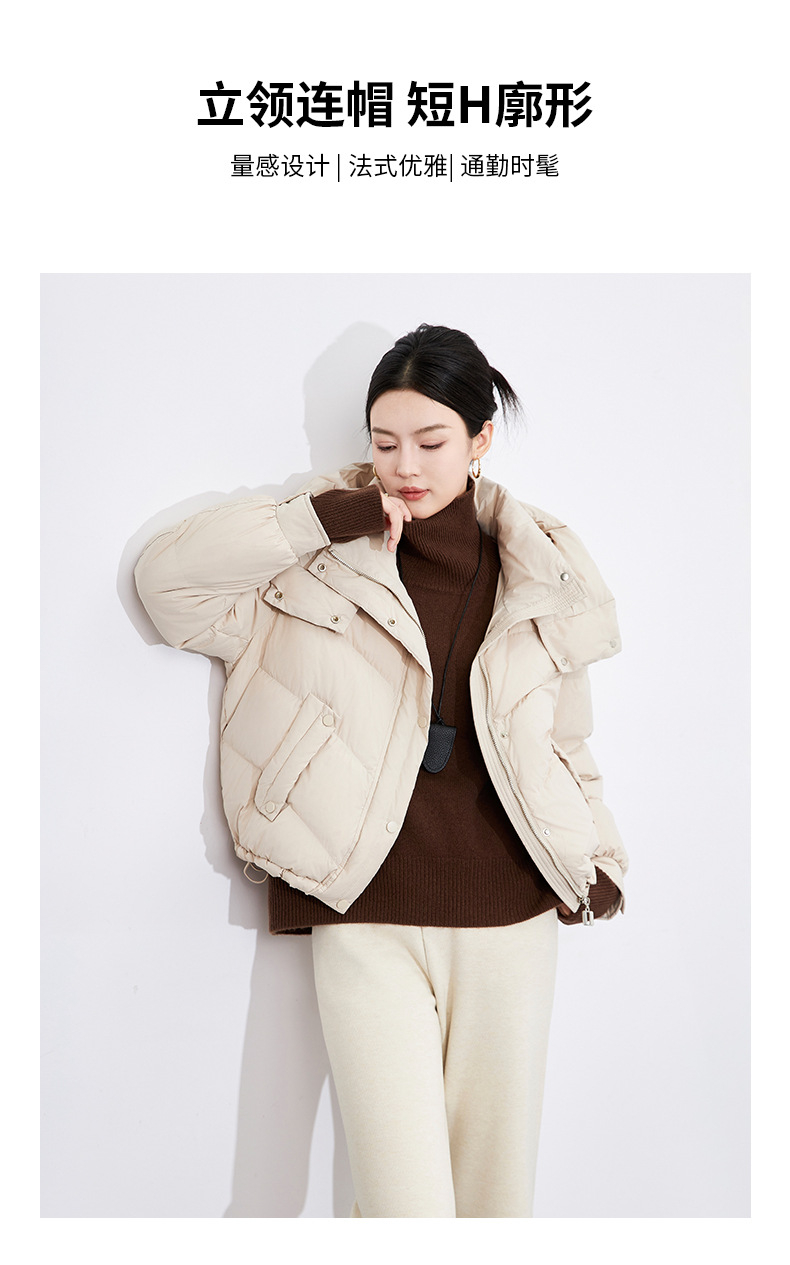 【高货wl】全新升级【铂金会员514/天猫699/差价185】(14548) 洛诗琳法式复古短款白鸭绒保暖羽绒服女冬连帽简约外套