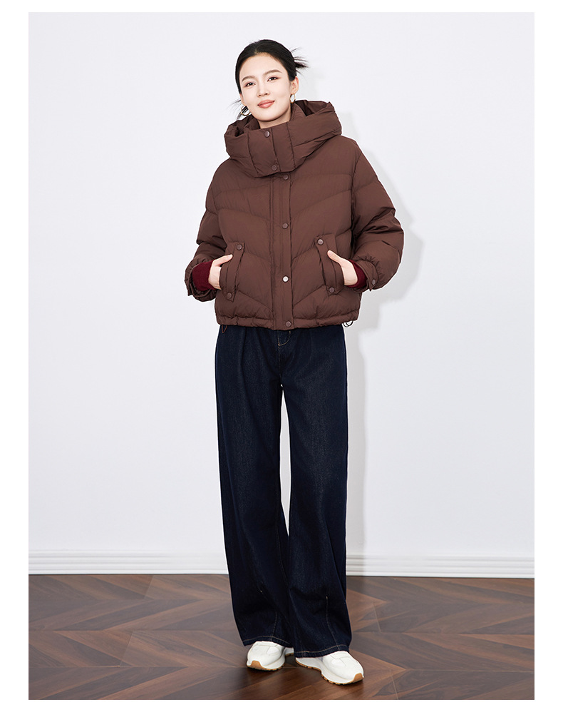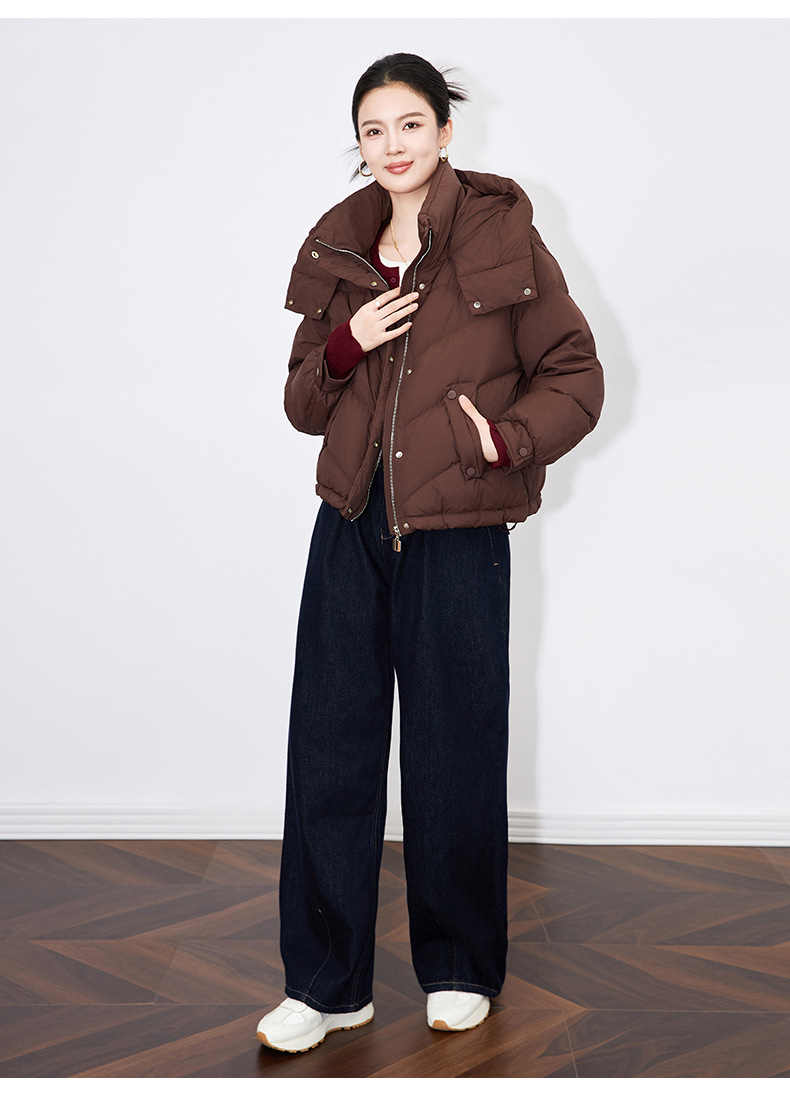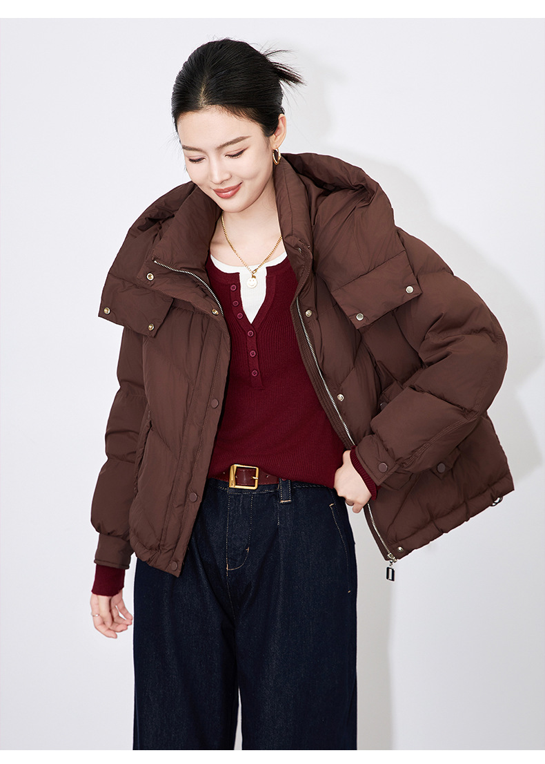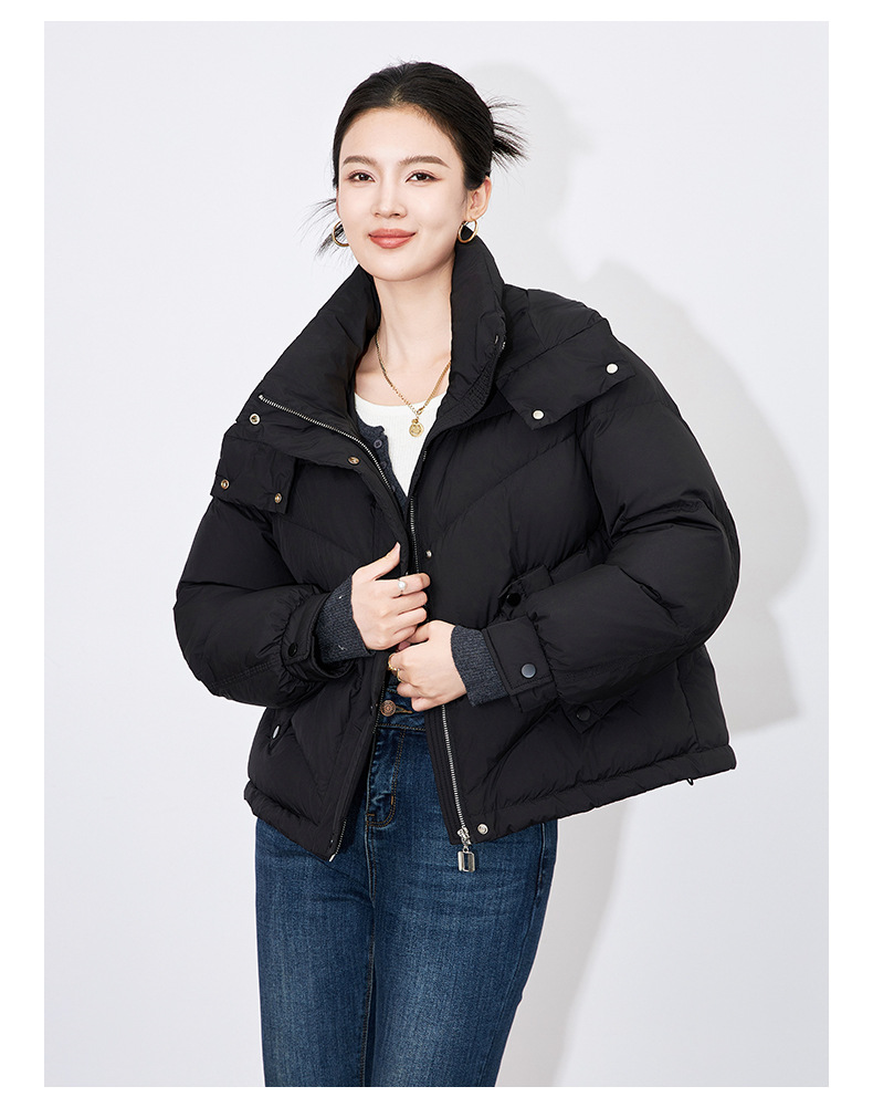 【高货wl】全新升级【铂金会员514/天猫699/差价185】(14548) 洛诗琳法式复古短款白鸭绒保暖羽绒服女冬连帽简约外套