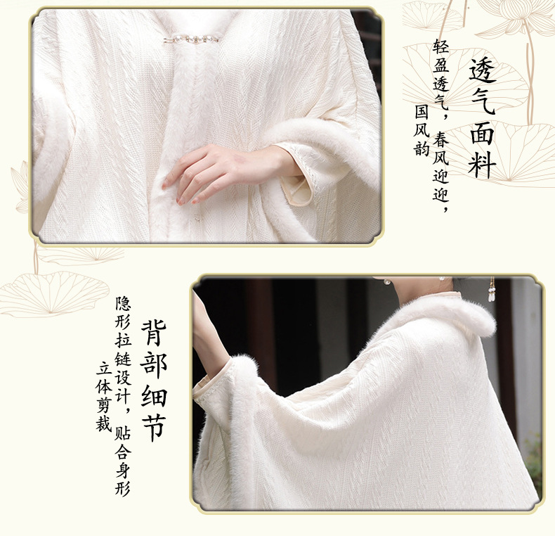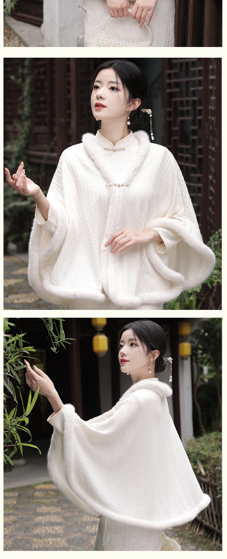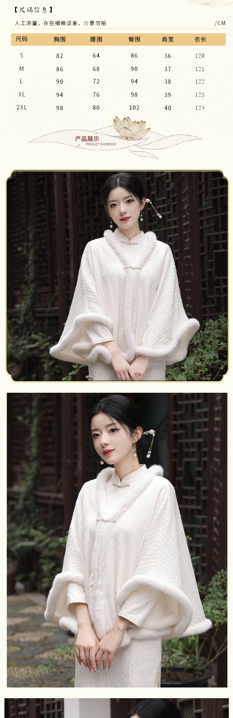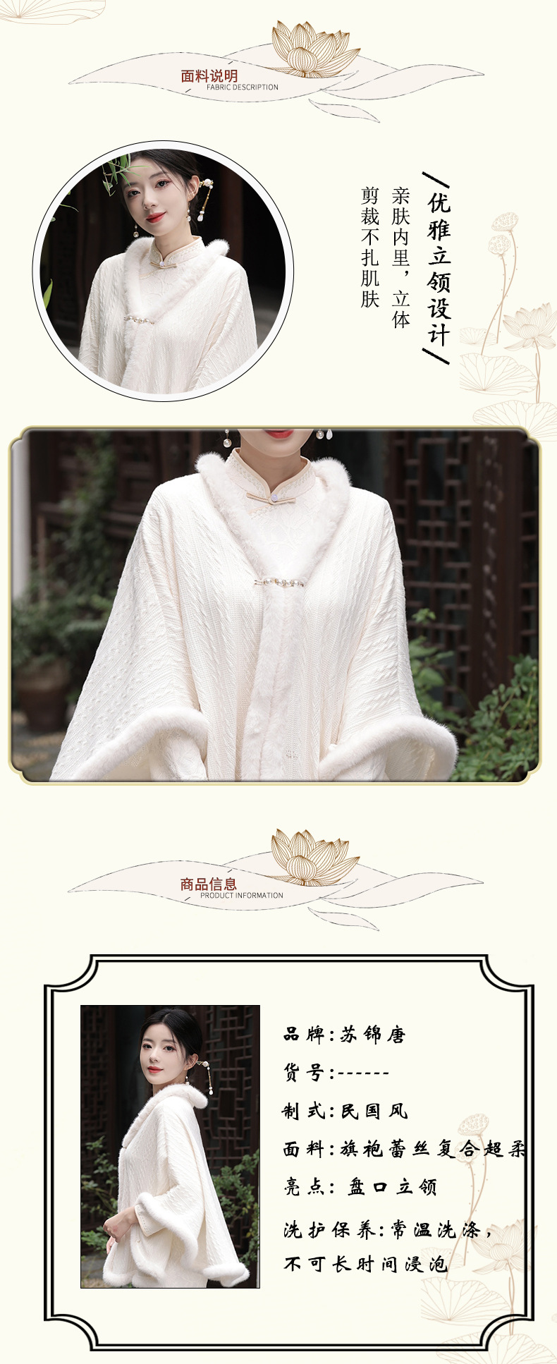 JN秋冬加毛披肩长款复合超柔蕾丝旗袍两件套立领斜襟气质女旗袍