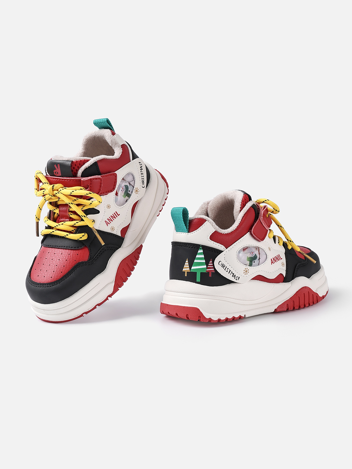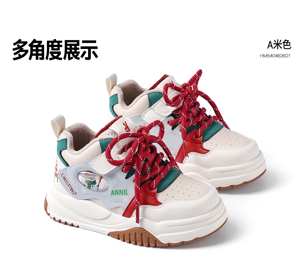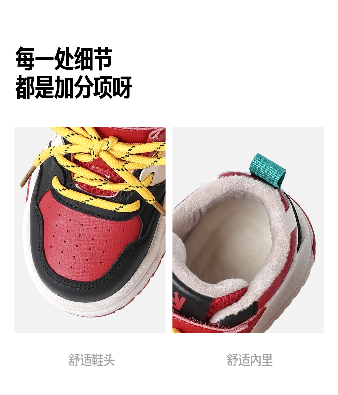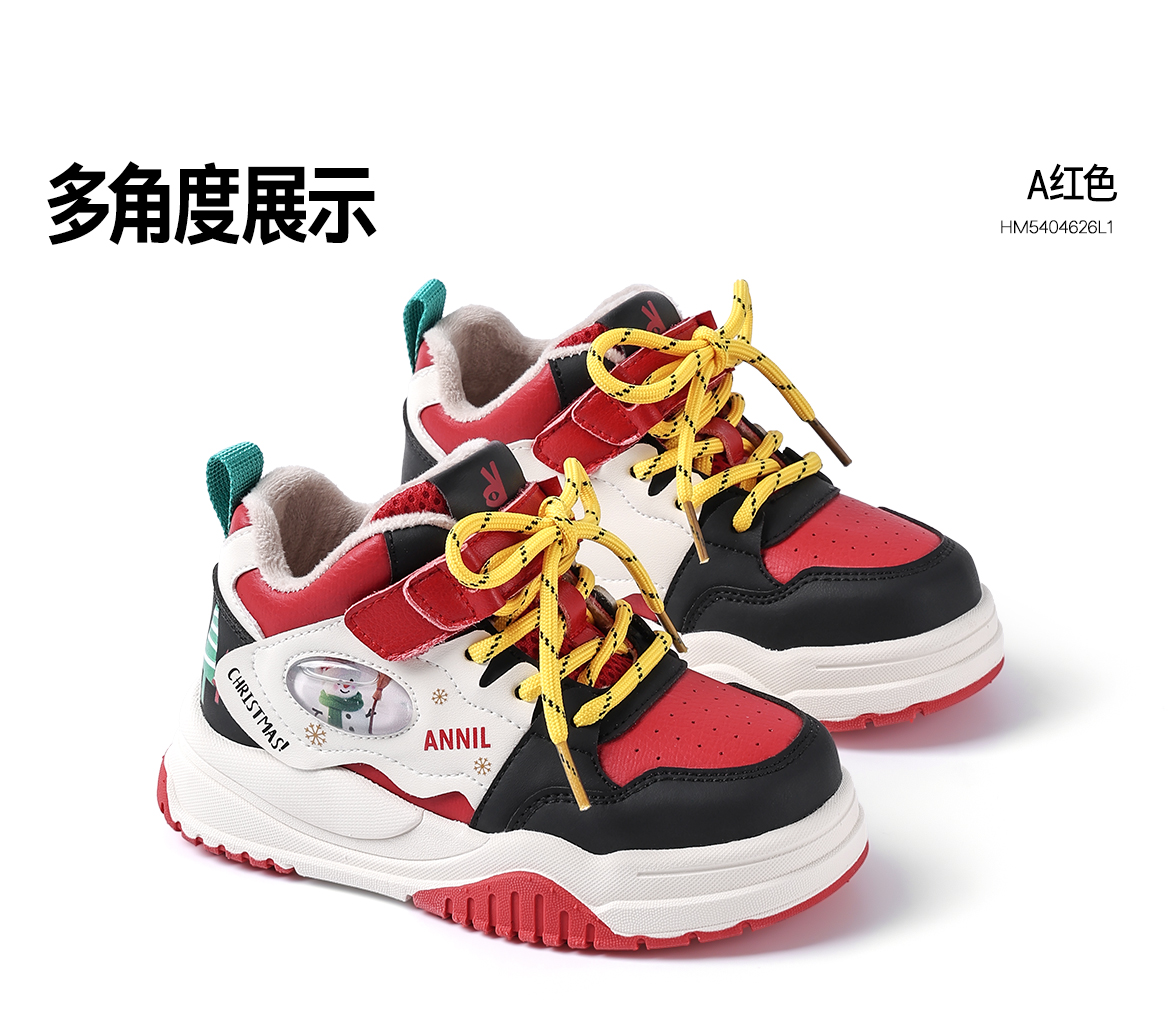 ANNIL/安奈儿童鞋男女童冬季加绒加厚休闲板鞋红黑配色中大童运动鞋软底童鞋HM5404626