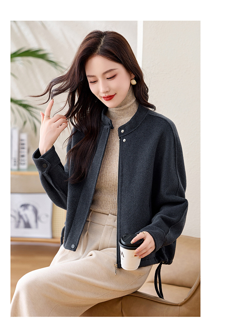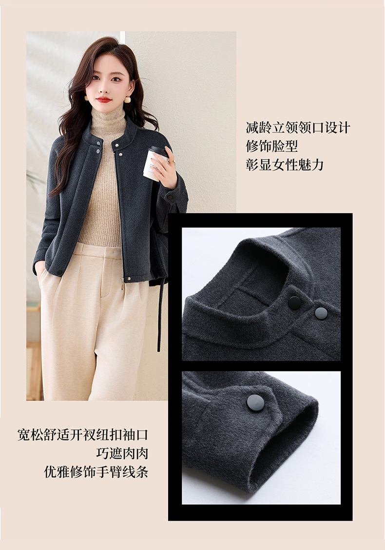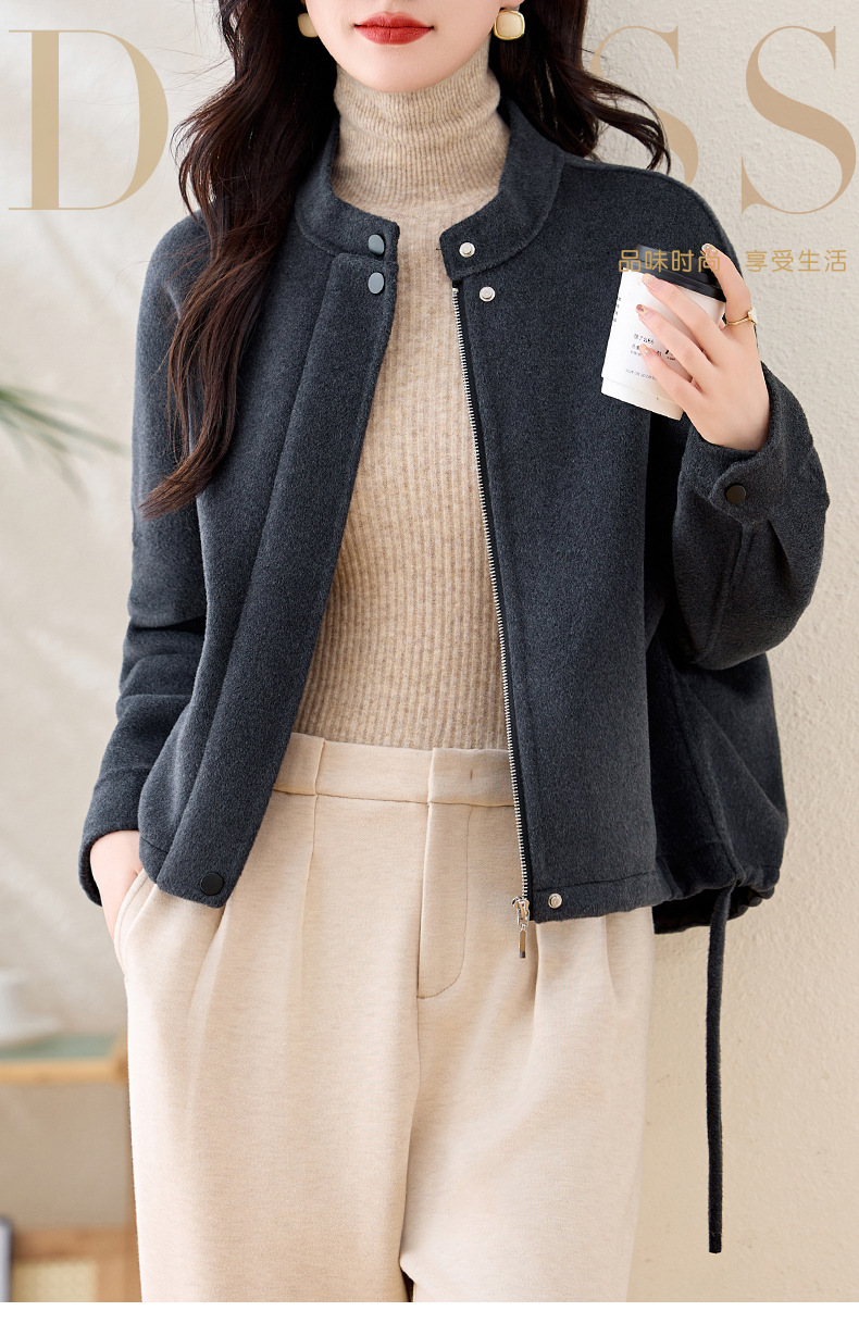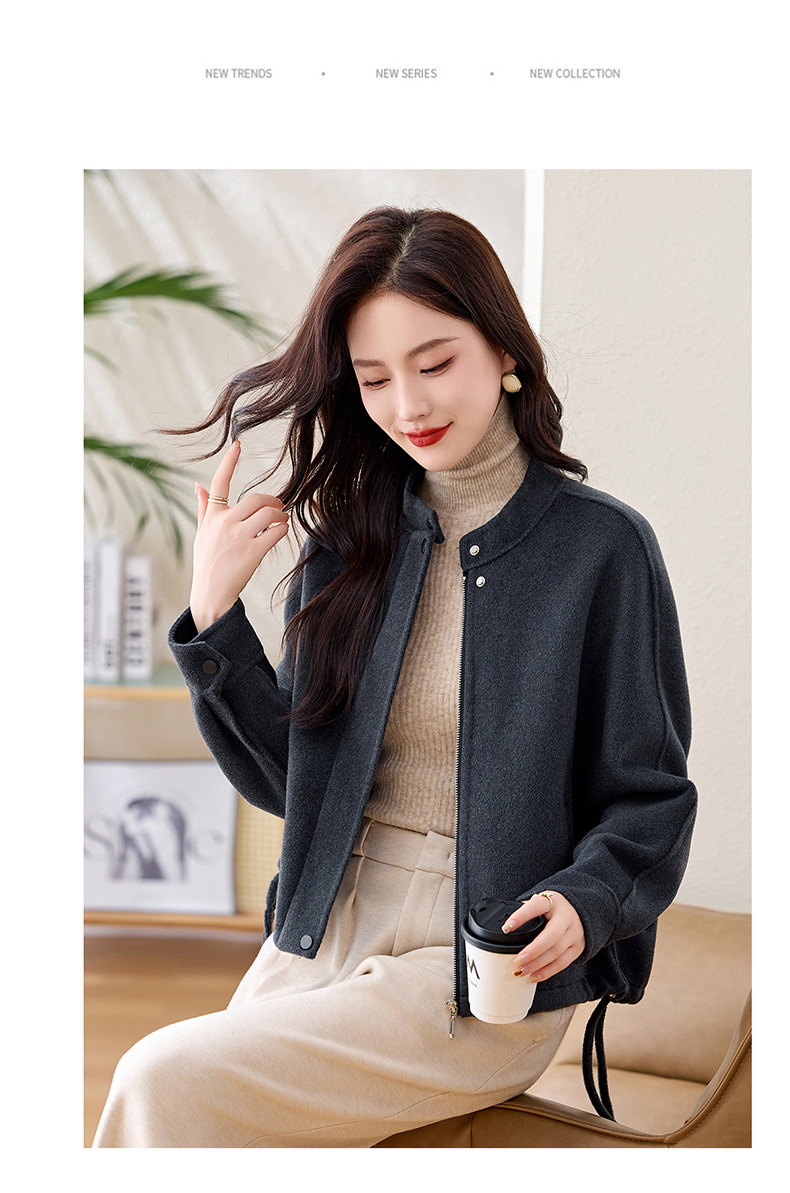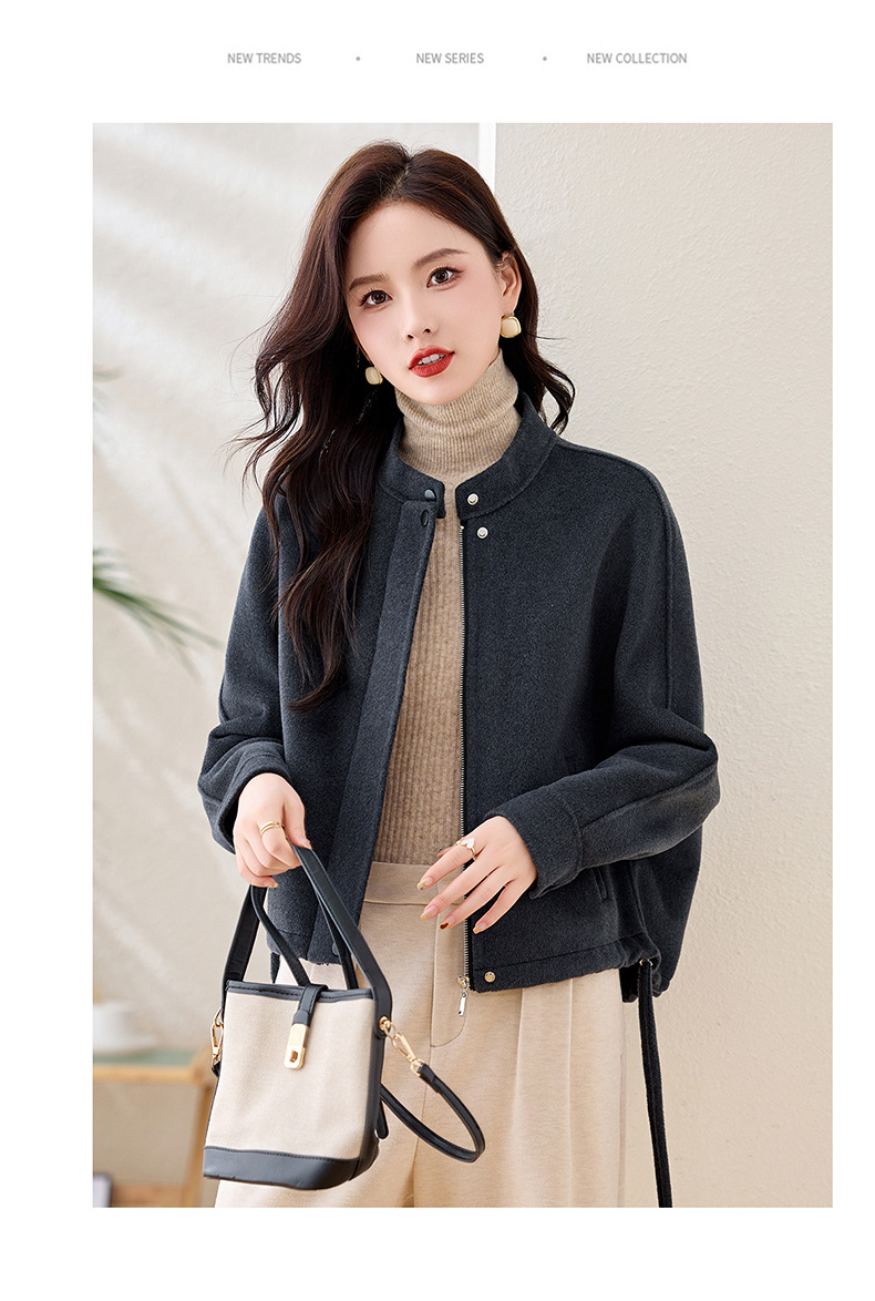 时尚短款毛呢外套,韩系气质羊毛双面呢大衣HR-88163