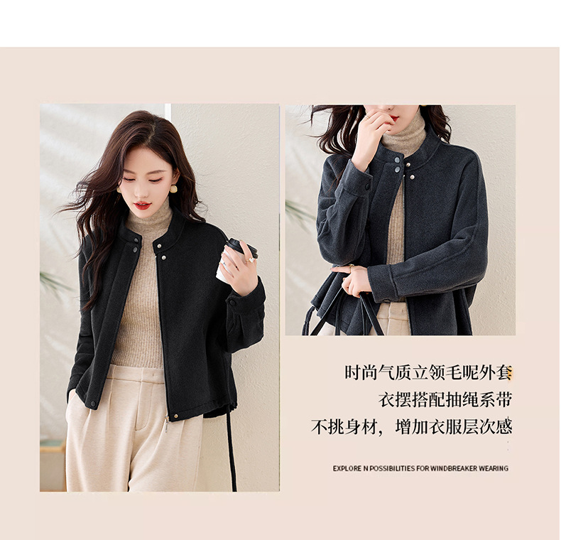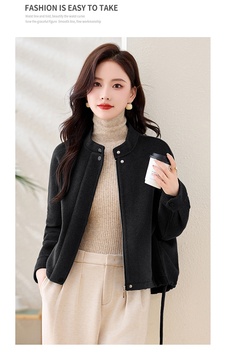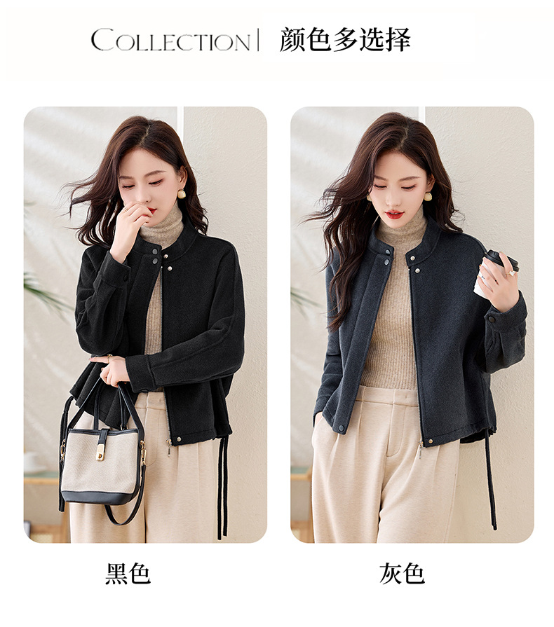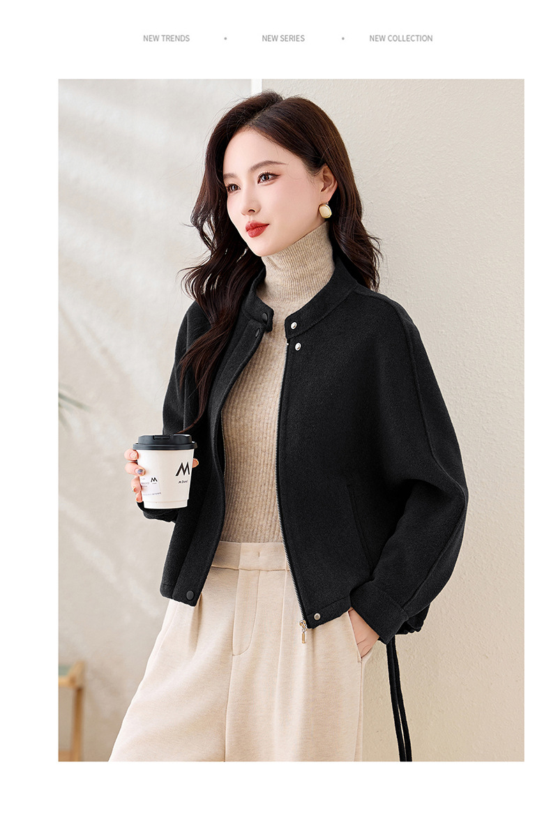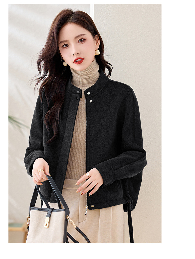 时尚短款毛呢外套,韩系气质羊毛双面呢大衣HR-88163