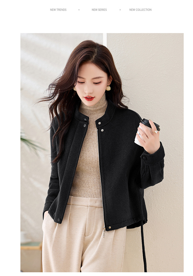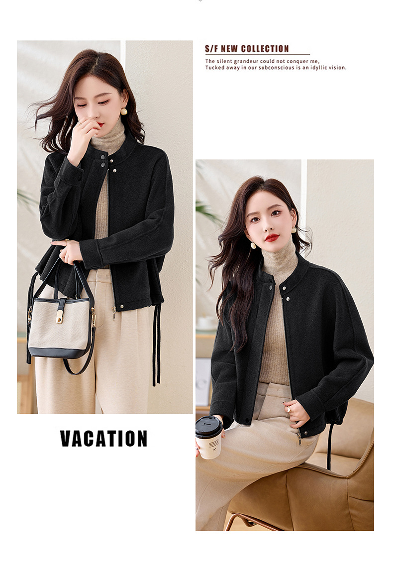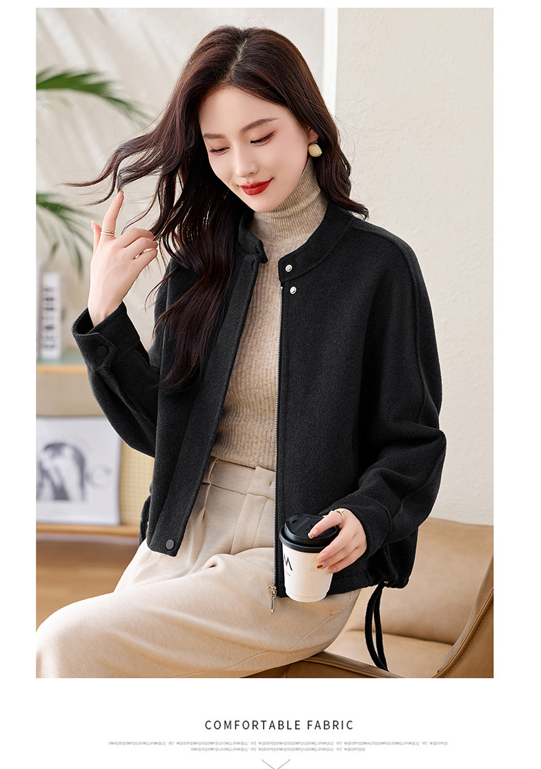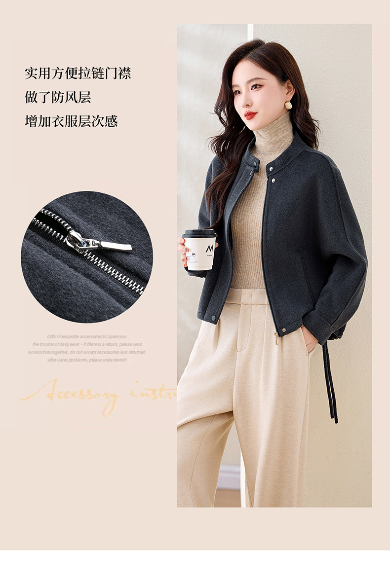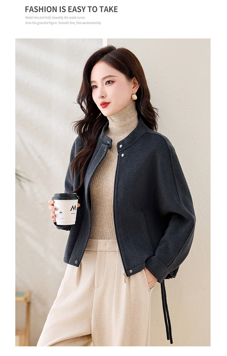 时尚短款毛呢外套,韩系气质羊毛双面呢大衣HR-88163