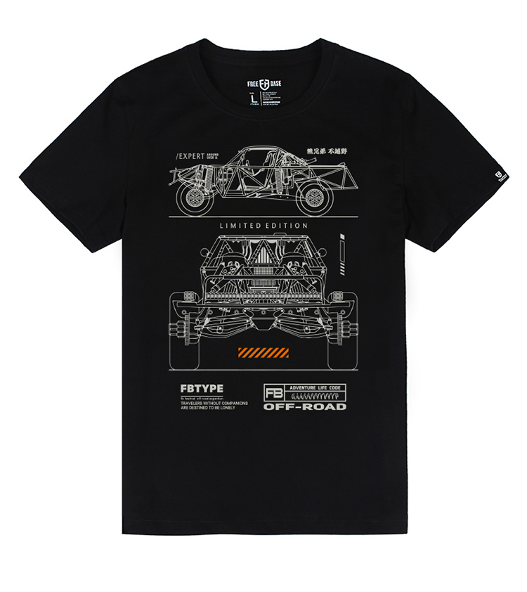 自由基地2023夏季新款男士拉力赛越野车结构图案设计印花短袖T恤 NMT-2011