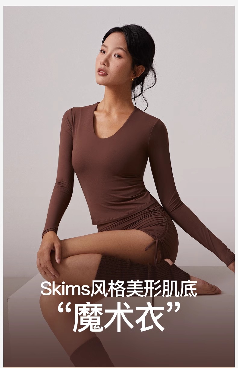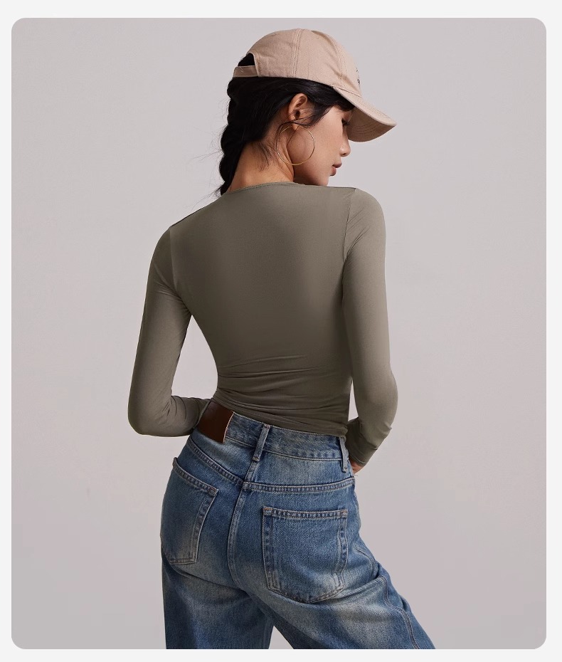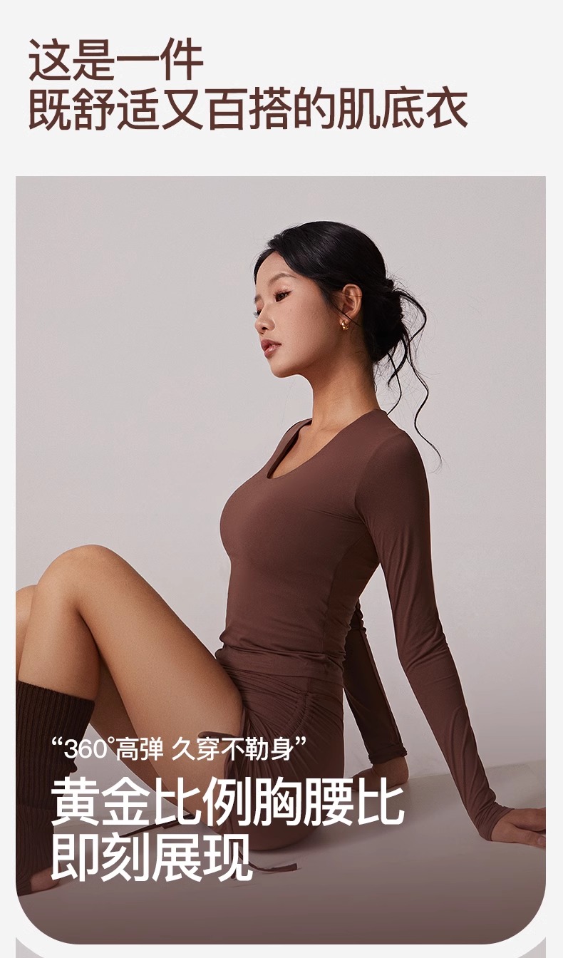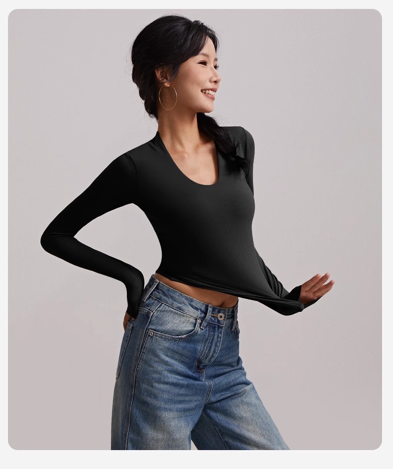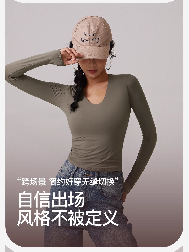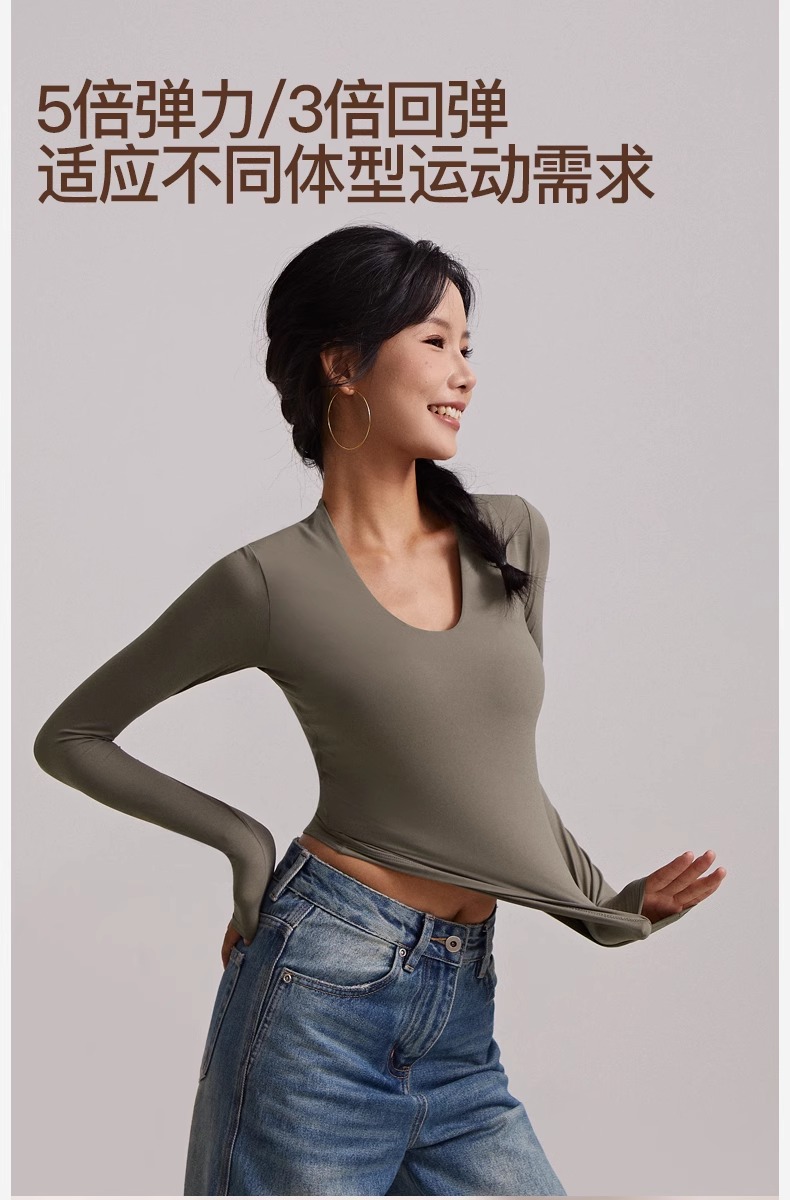 跃牌【周游世界系列】瑜伽服女汤勺领运动长袖 TP0784