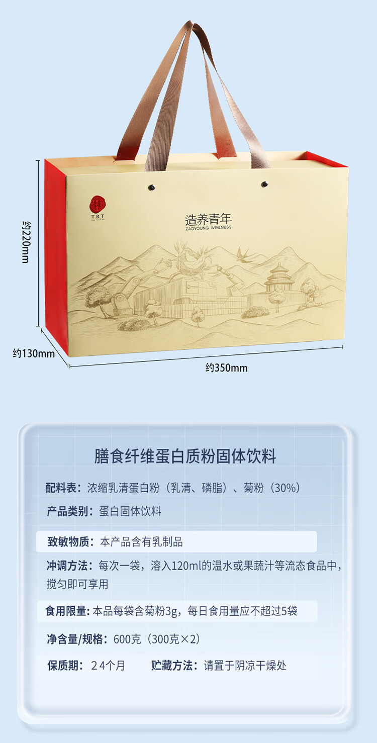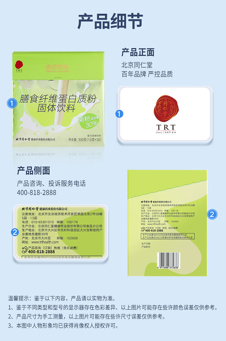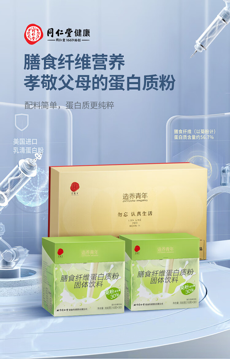 【正宗同仁堂品牌】北京同仁堂 膳食纤维蛋白质粉600g(10g/袋*60袋 )添加膳食纤维易吸收SY