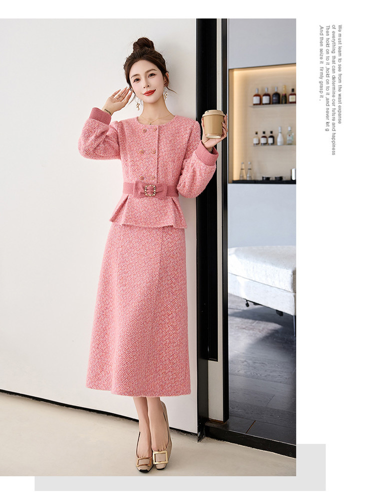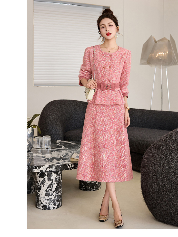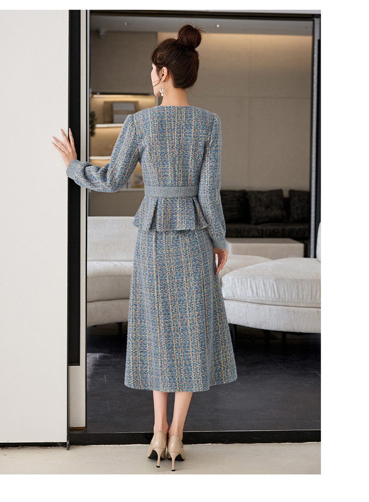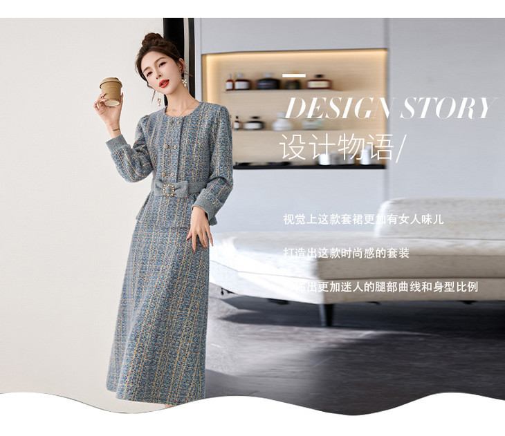 【预售7天】2026春季新款洋气时尚格纹蝴蝶结系带上衣外套半裙两件套裙LB2603