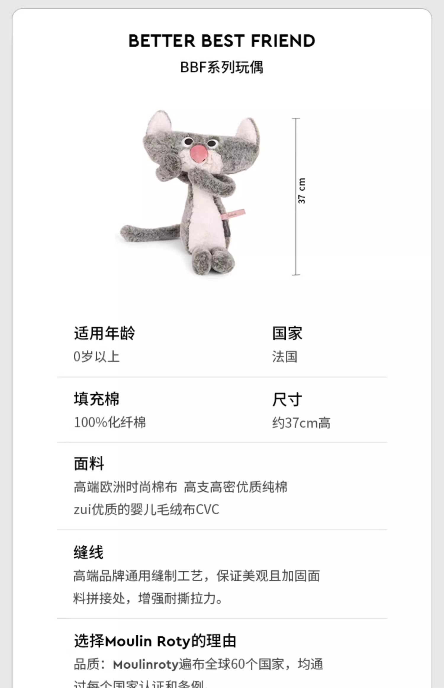 法国moulinroty法国儿童书籍玩偶系列-扁扁猫 高37厘米