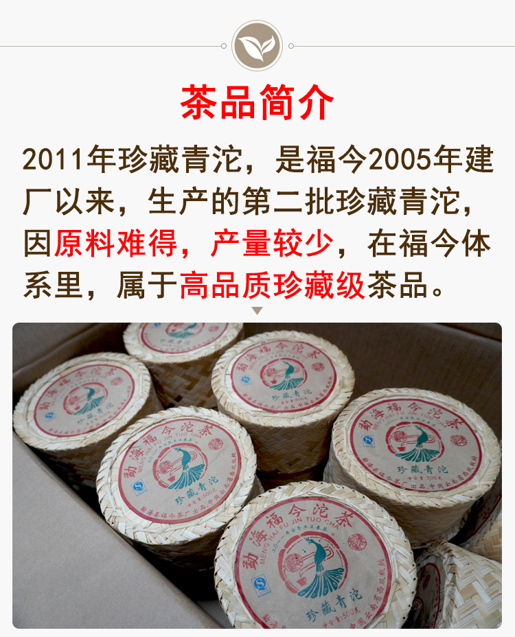 2011年福今珍藏沱500克一沱 经典珍藏老福今珍藏沱生茶
