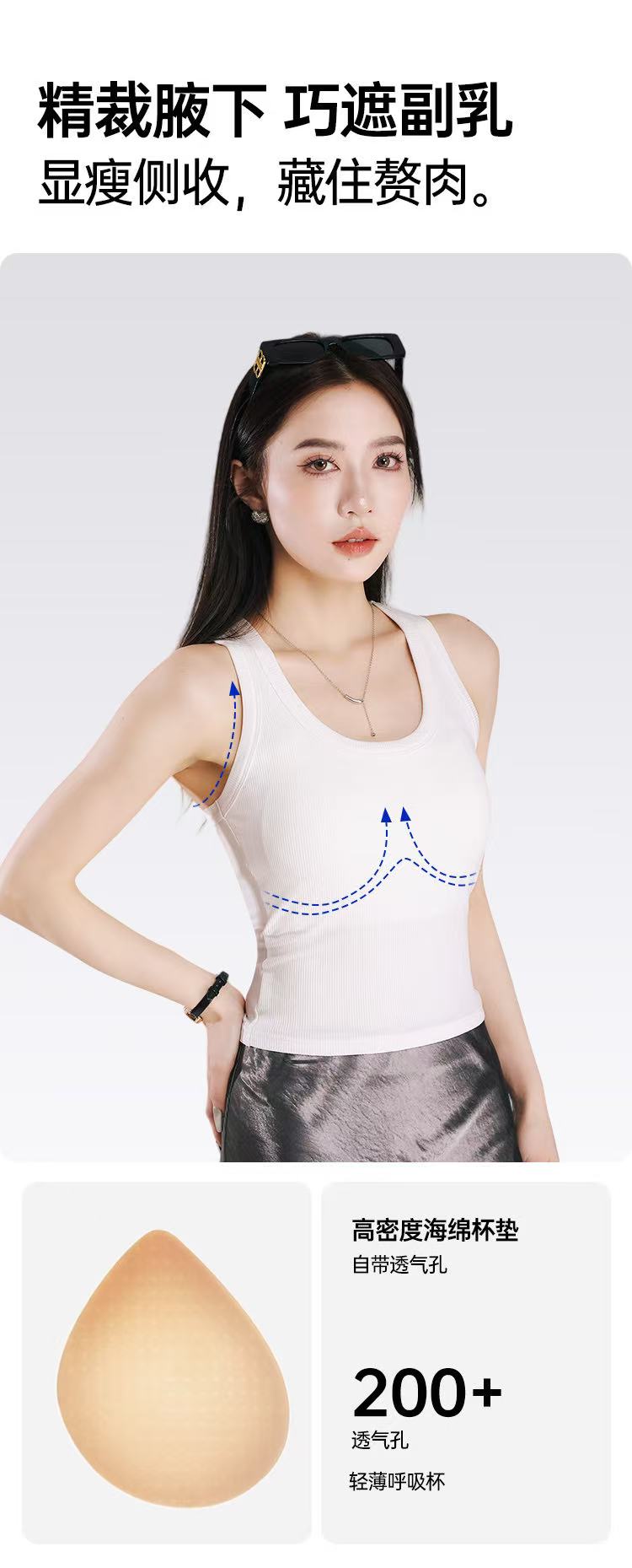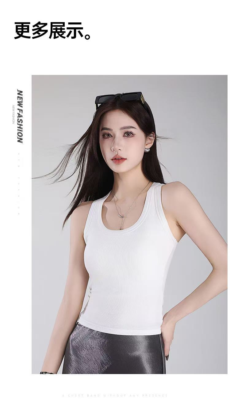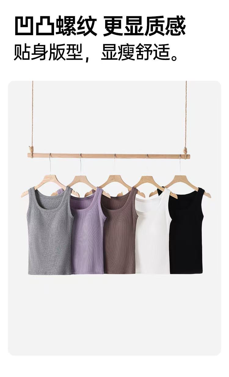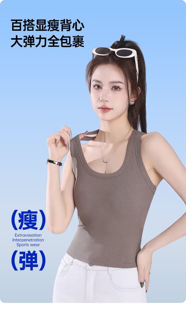 最后样衣清仓!五只白鹅—吊带背心女春夏带胸垫遮肉高弹修身螺纹百搭打底8001