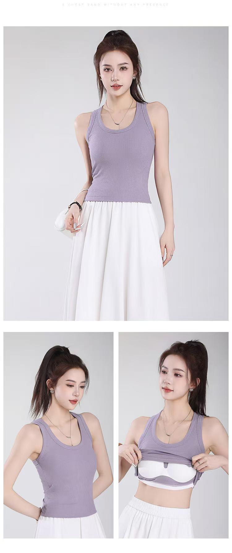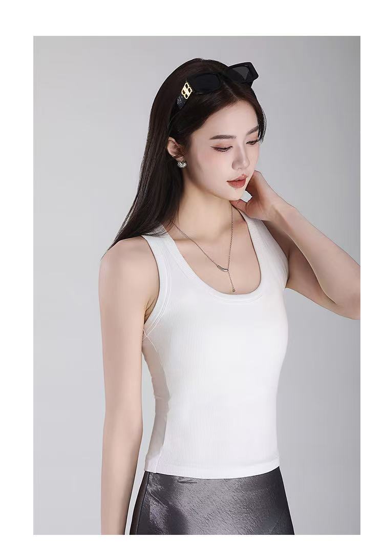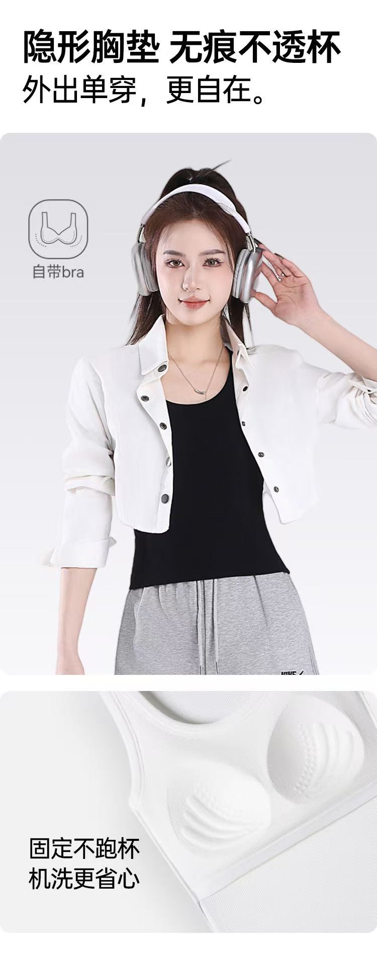 最后样衣清仓!五只白鹅—吊带背心女春夏带胸垫遮肉高弹修身螺纹百搭打底8001