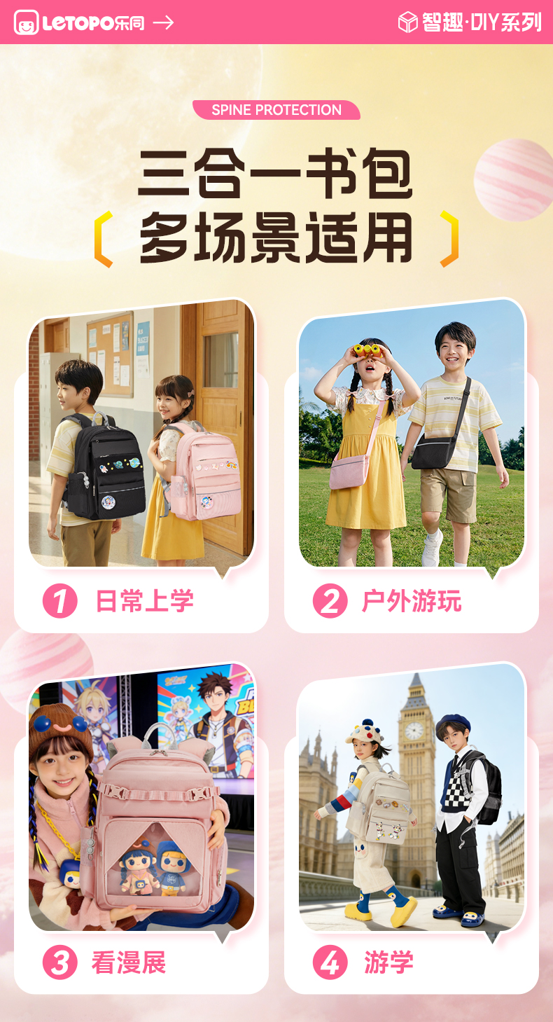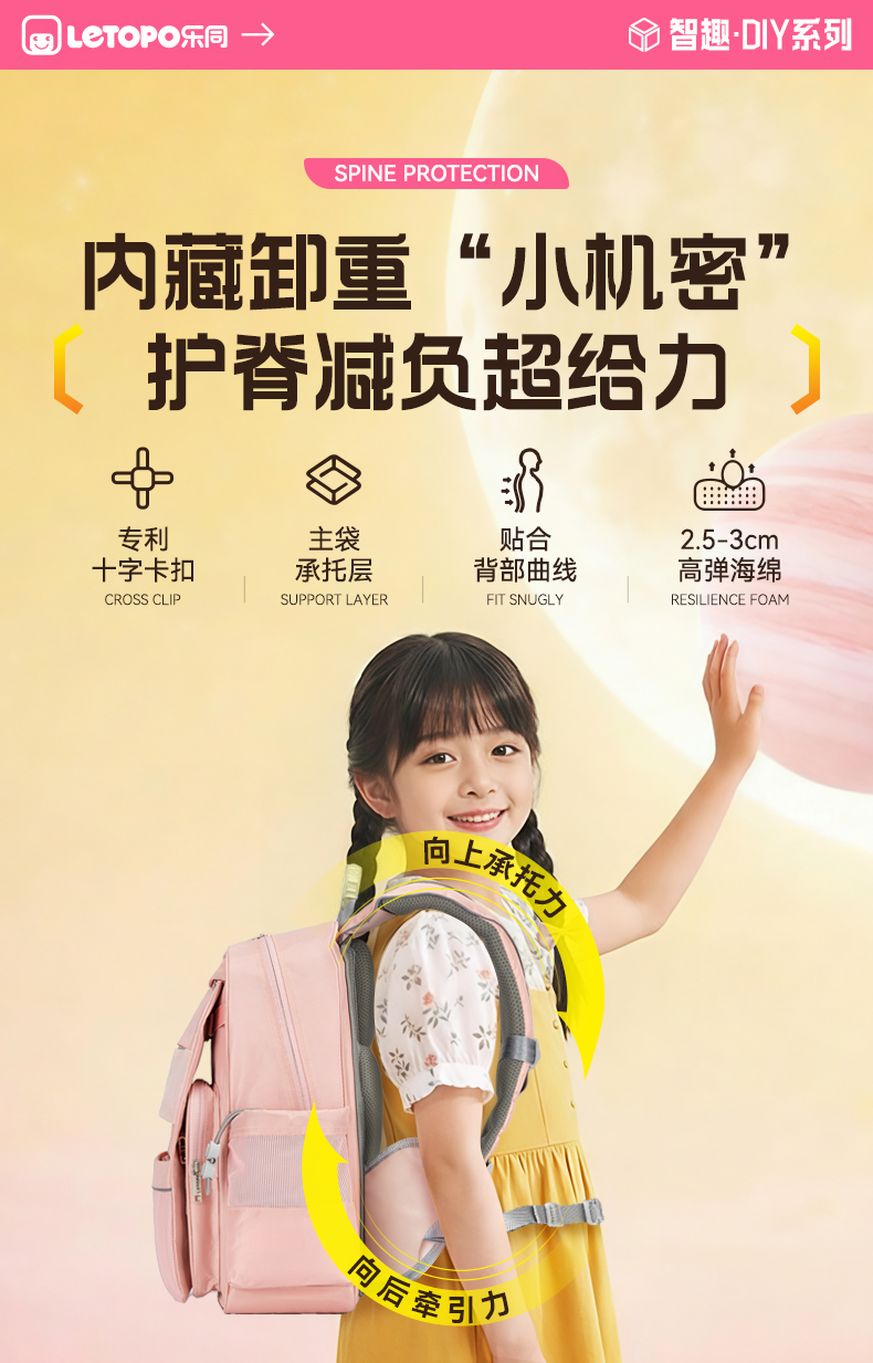 乐同·智趣DIY系列护脊减负书包可自由创意不同风格双肩背包