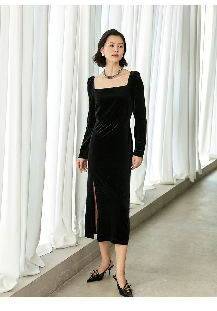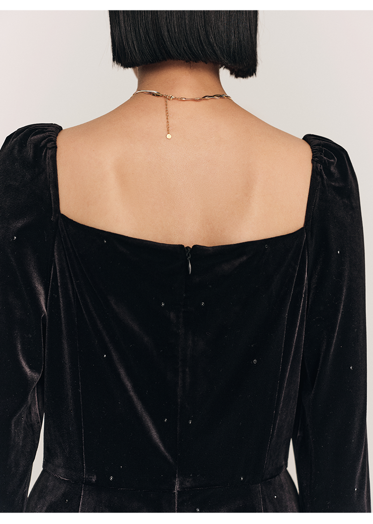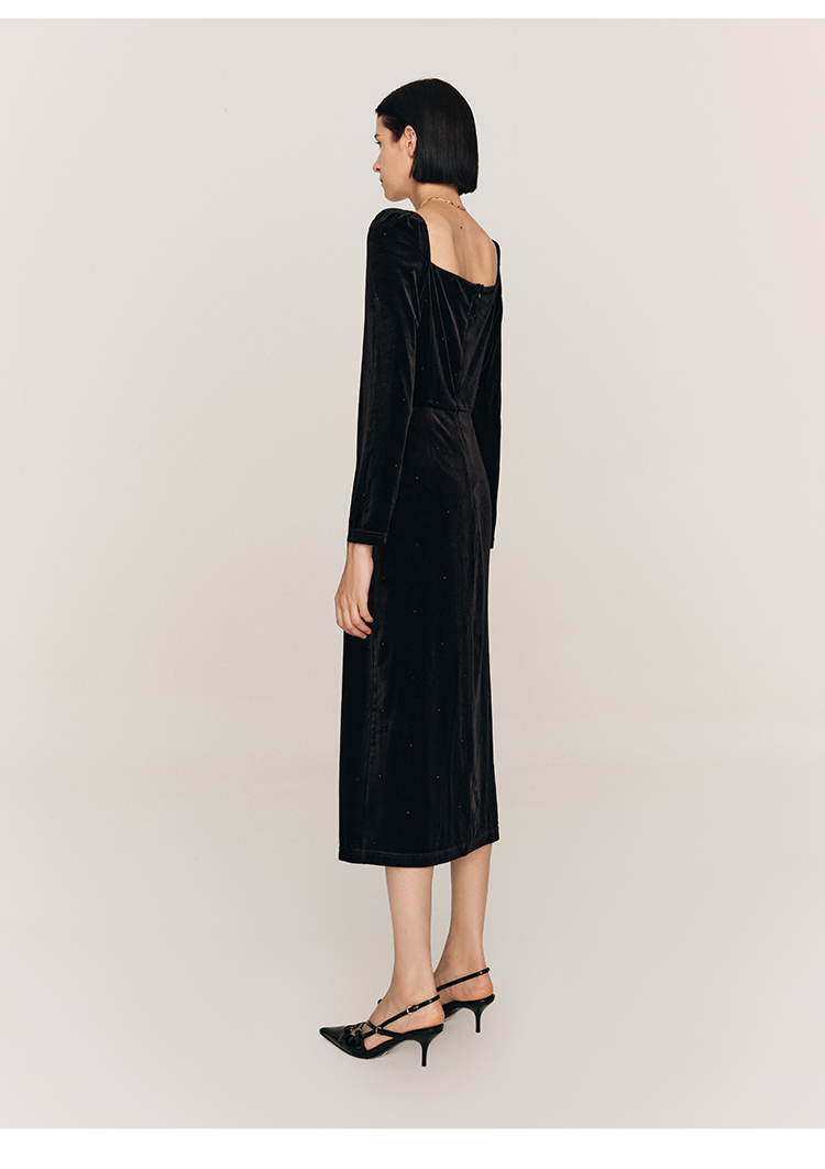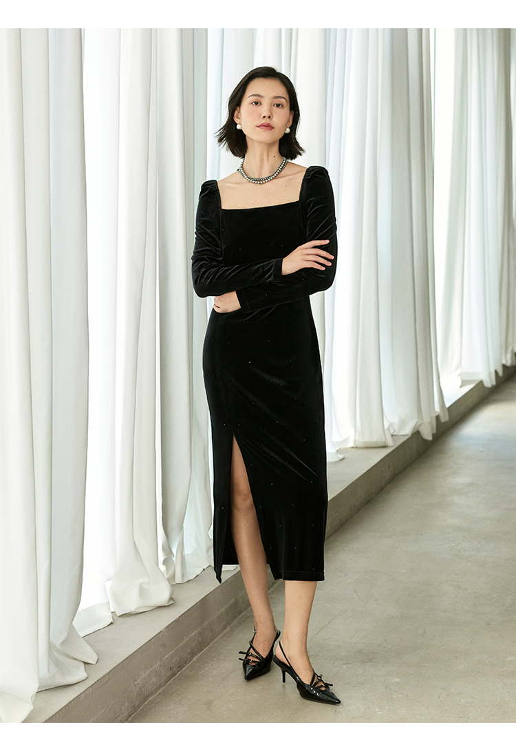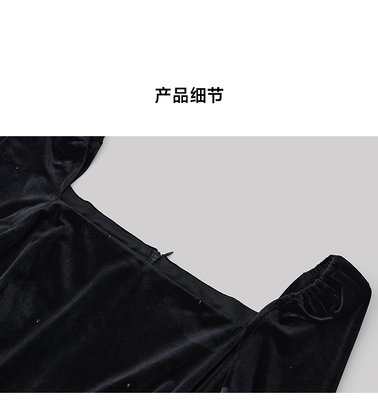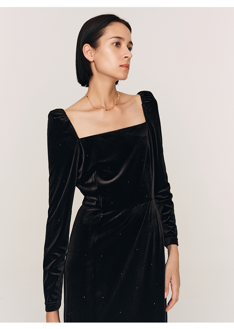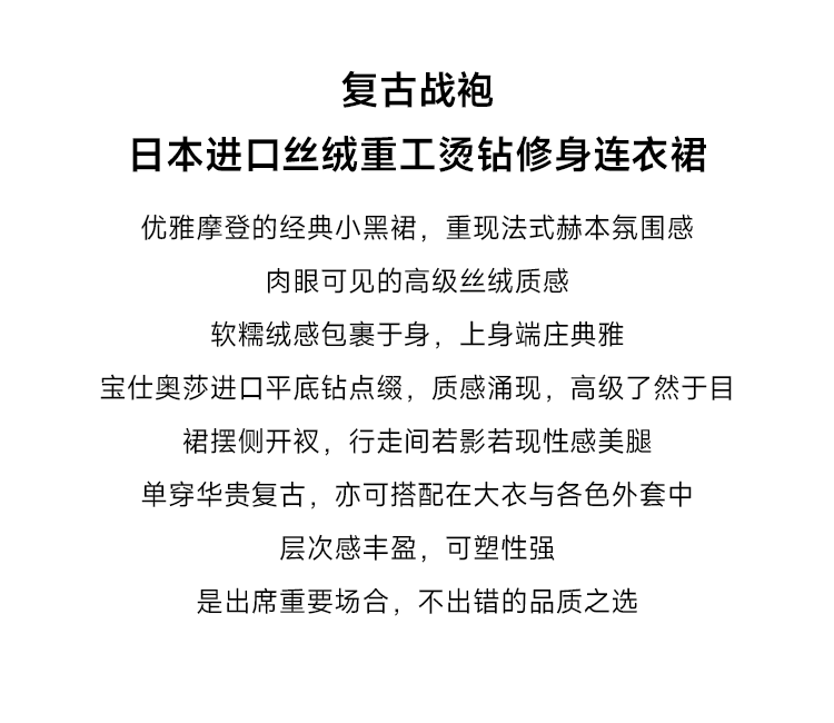 复古战袍 日本进口丝绒重工烫钻修身连衣裙FD474123O