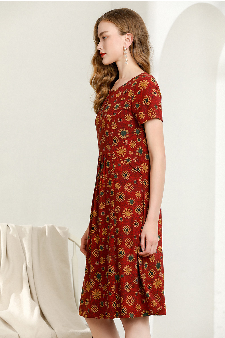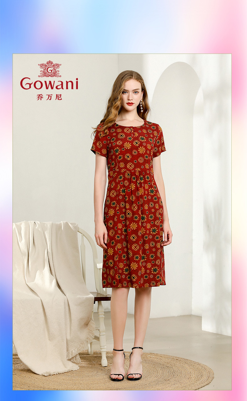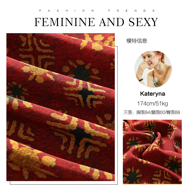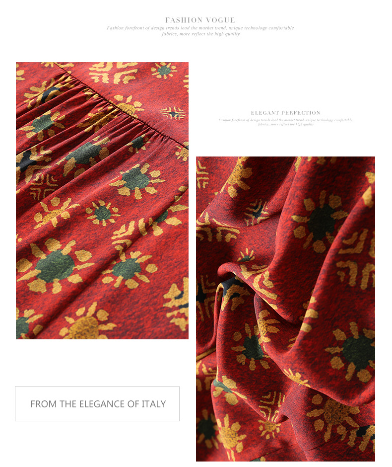 乔万尼夏洋气复古印花修身气质真丝桑蚕丝连衣裙女中长款EN2E609
